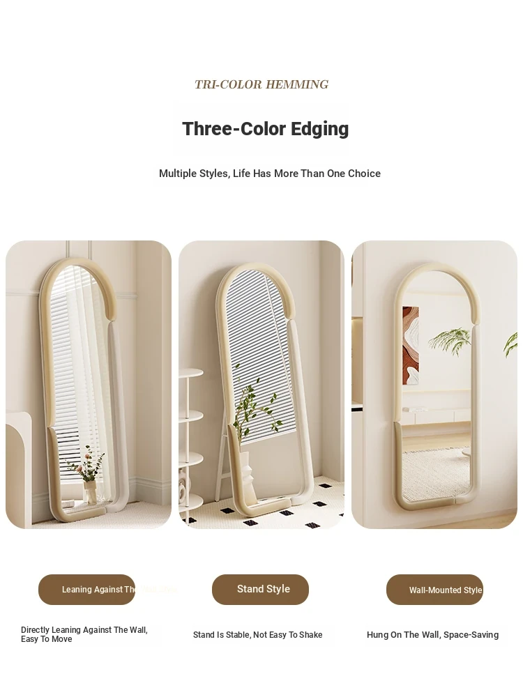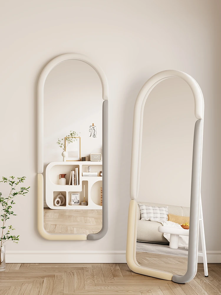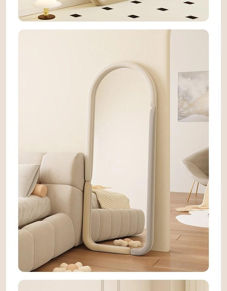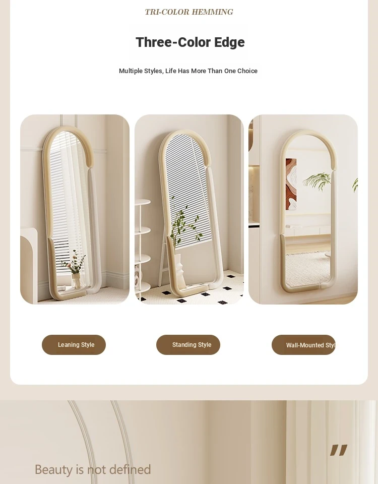 Elegant Full-Length Dressing Mirror - Creamy Luxury Style, Versatile Wall-Mounted or Freestanding Design for Home Bedroom, Trendy Outfit Reflection Mirror