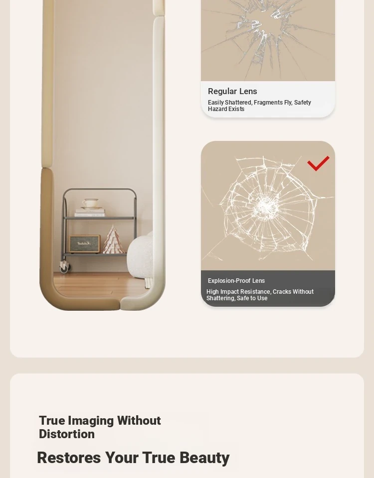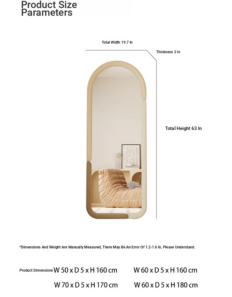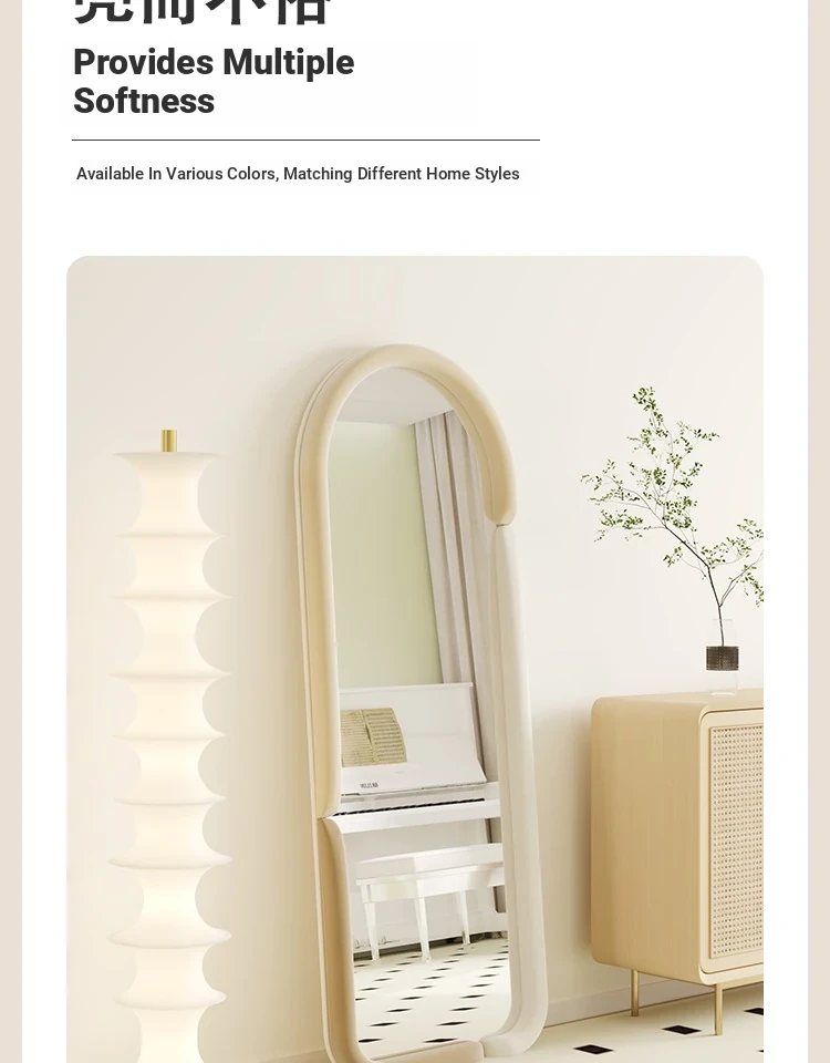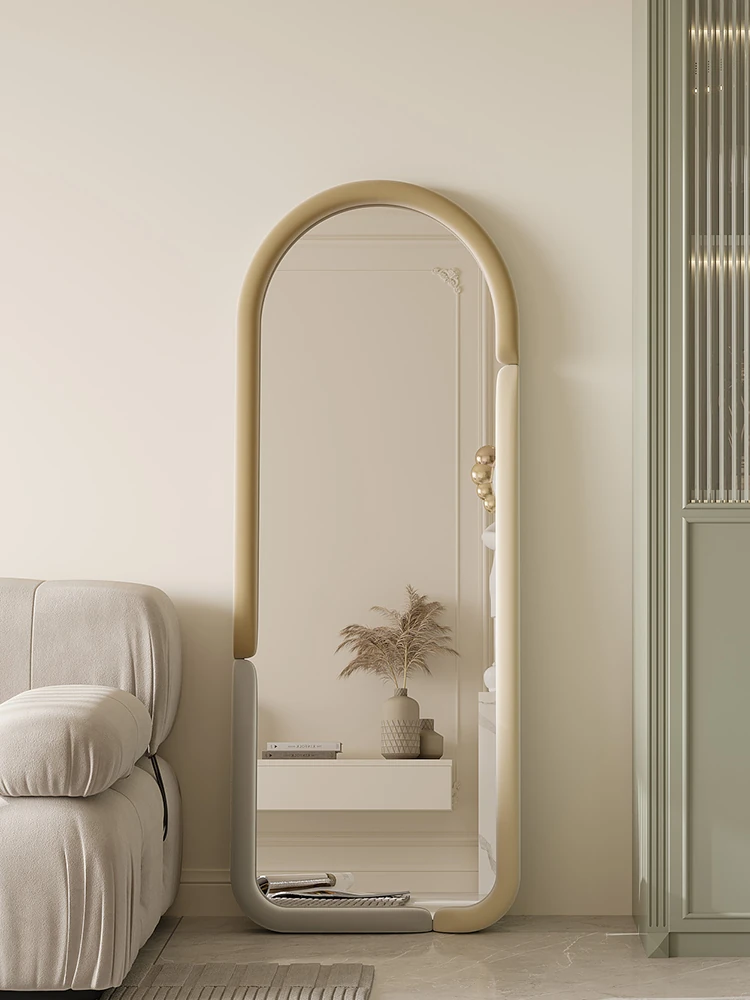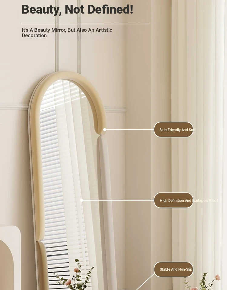 Elegant Full-Length Dressing Mirror - Creamy Luxury Style, Versatile Wall-Mounted or Freestanding Design for Home Bedroom, Trendy Outfit Reflection Mirror
