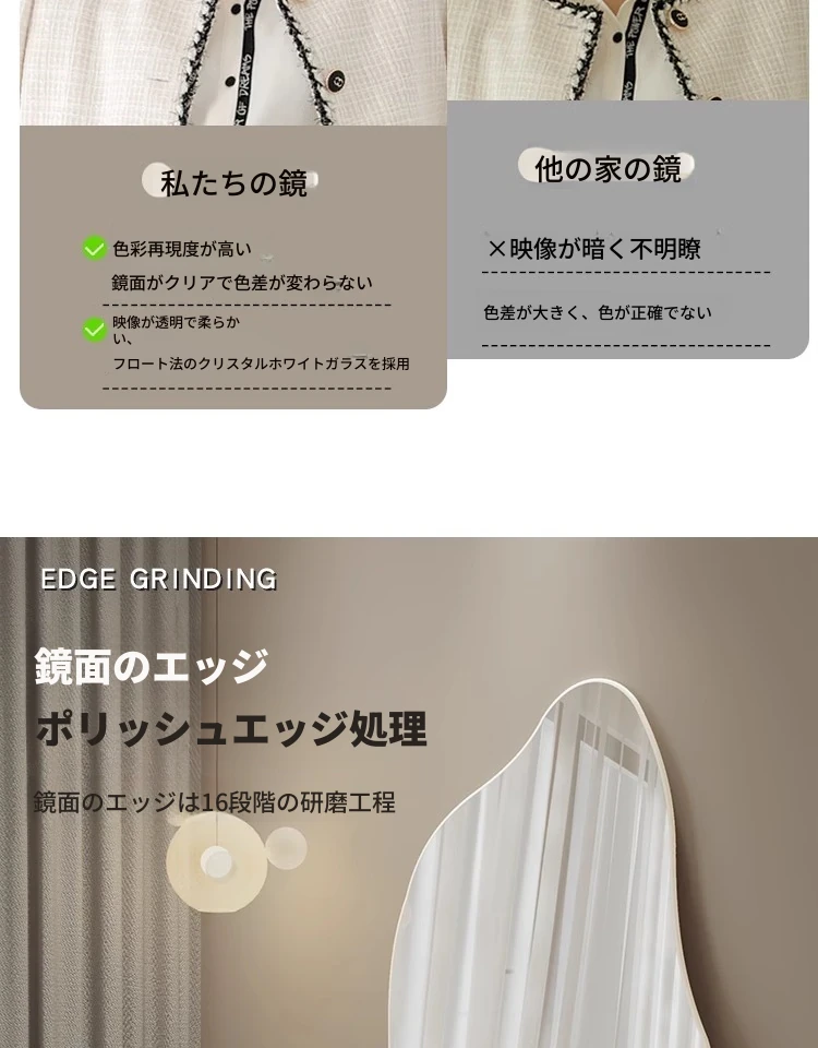 軽やかなおしゃれを演出する全身鏡!自宅や寝室にぴったりの壁掛け・貼り付けタイプ。服装店にも最適なユニークなデザインで、インスタ映え抜群のトレンドアイテム。あなたのスタイルを引き立てる異形の美しさをお楽しみください!