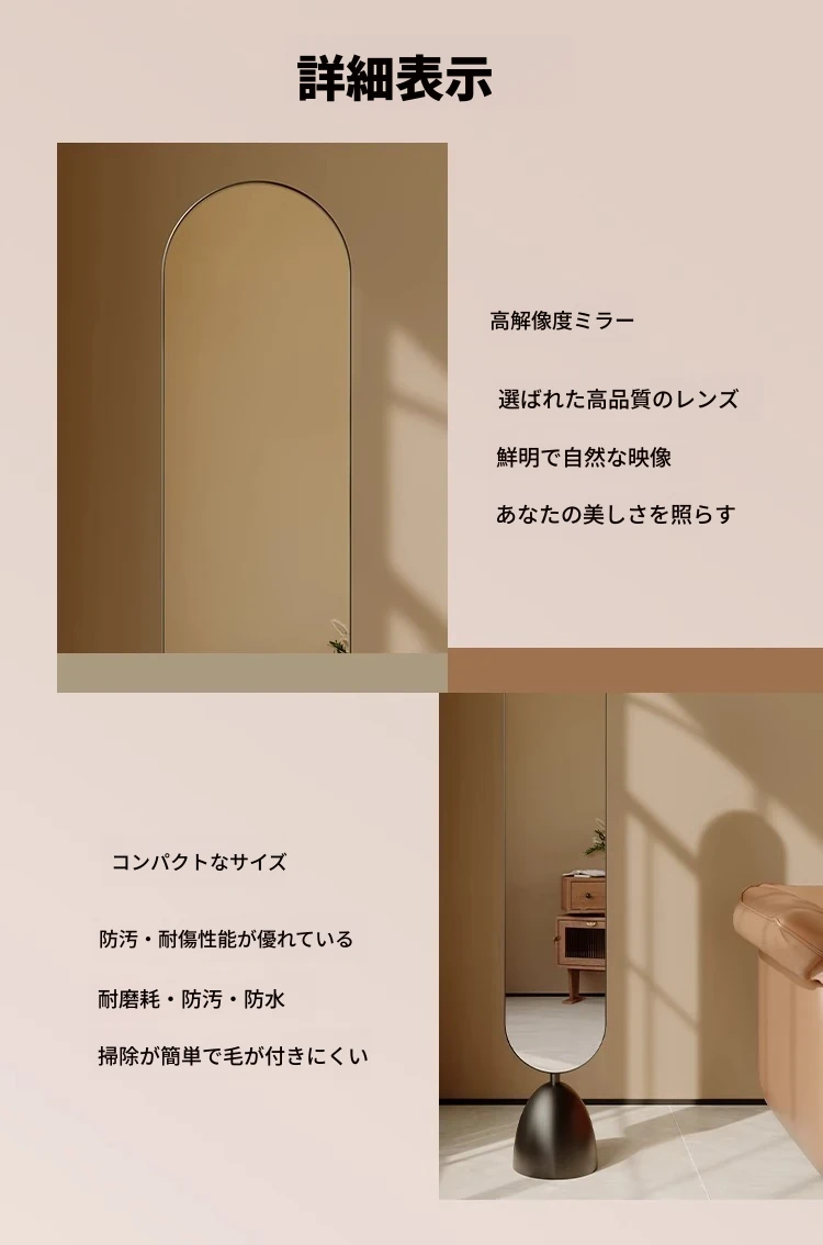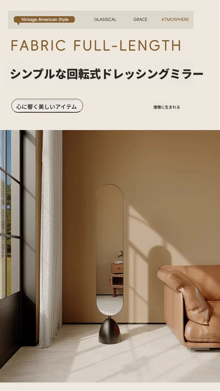 高級感溢れる全身鏡!おしゃれな立式デザインの落地鏡、回転可能で小型スペースにも最適。インテリアにぴったりなアイテムで、あなたのスタイルを引き立てます!