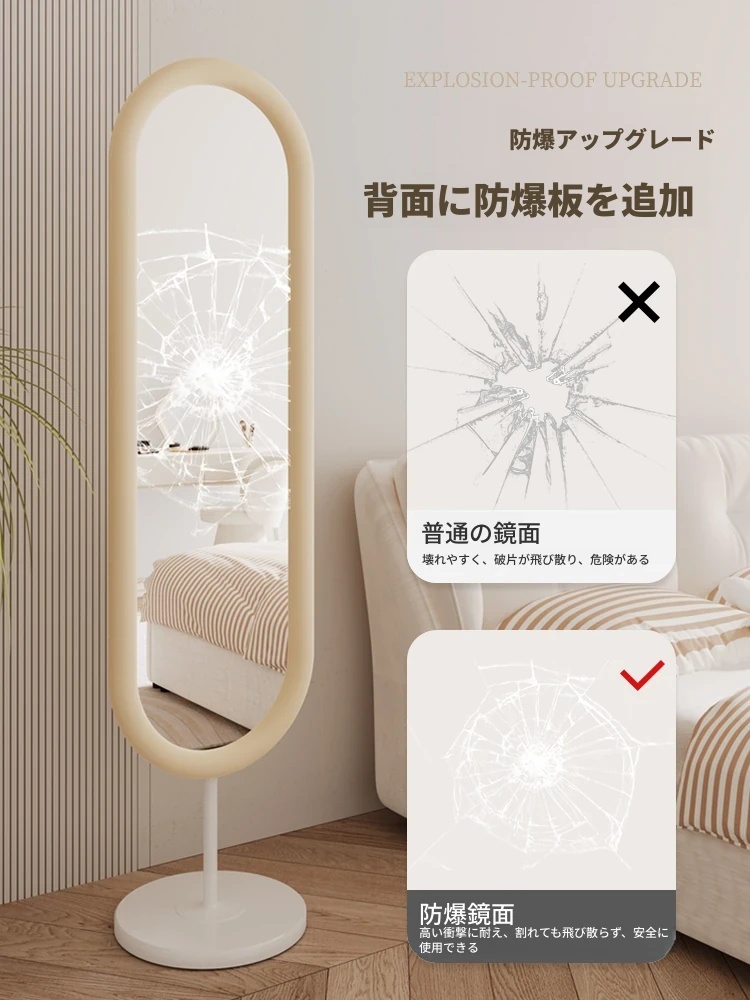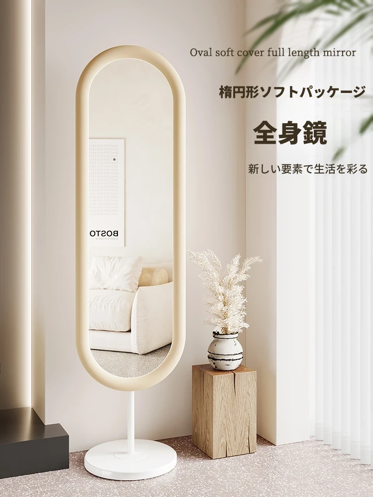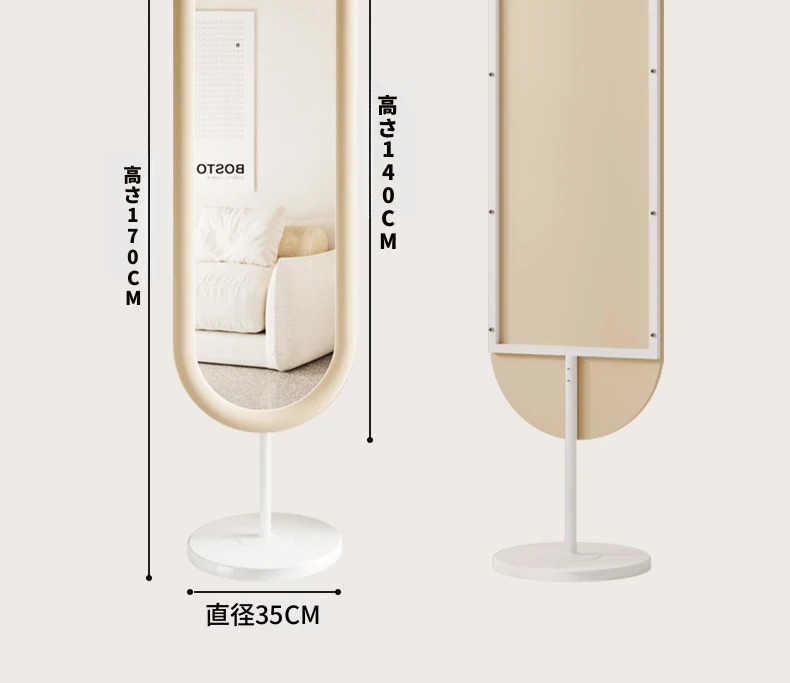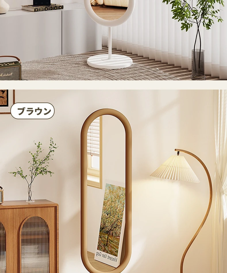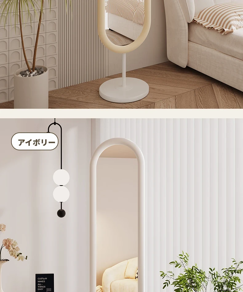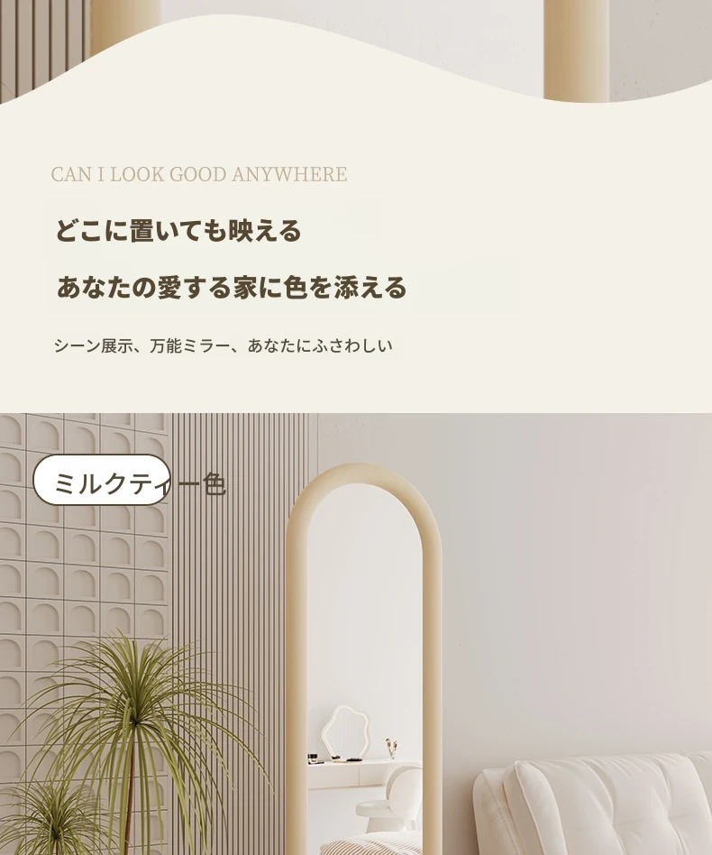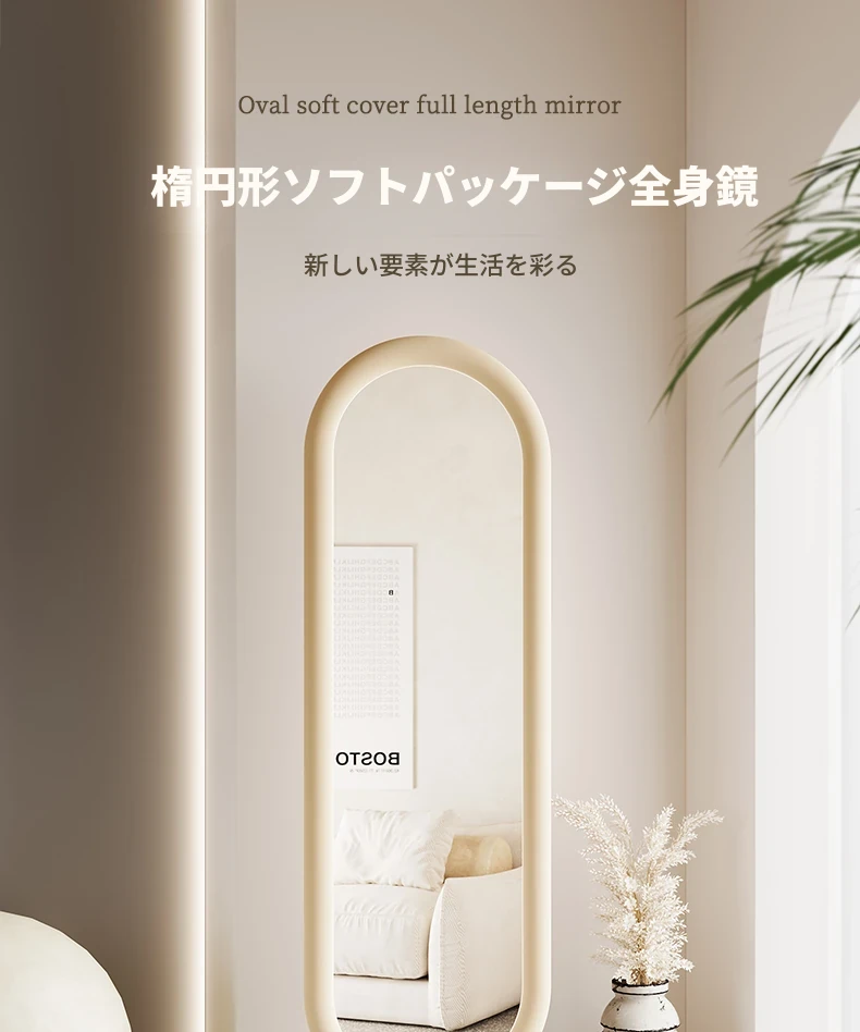 全身鏡 おしゃれな立て掛け式ミラー 自宅用 玄関にぴったり!高級感あふれる3D試着ミラー、インスタ映えするクリームカラーで、お部屋を華やかに演出!