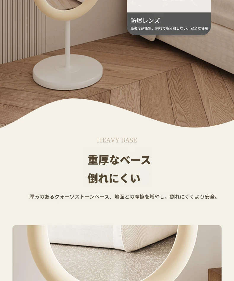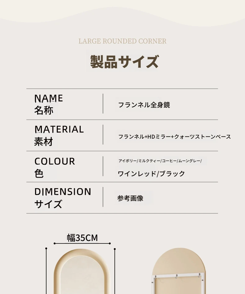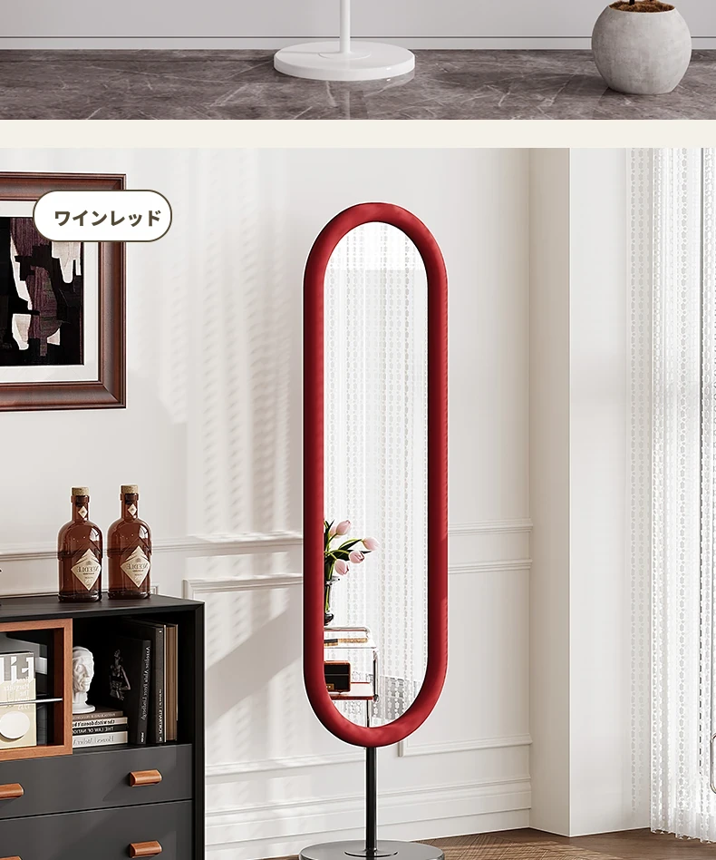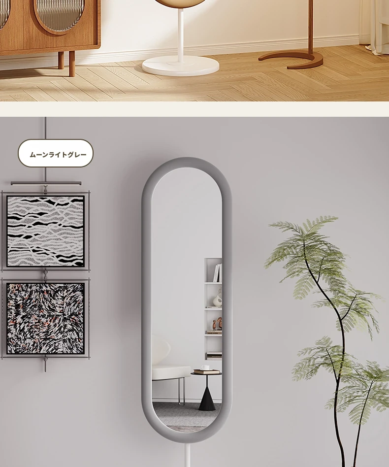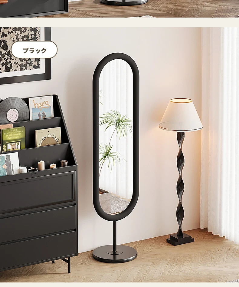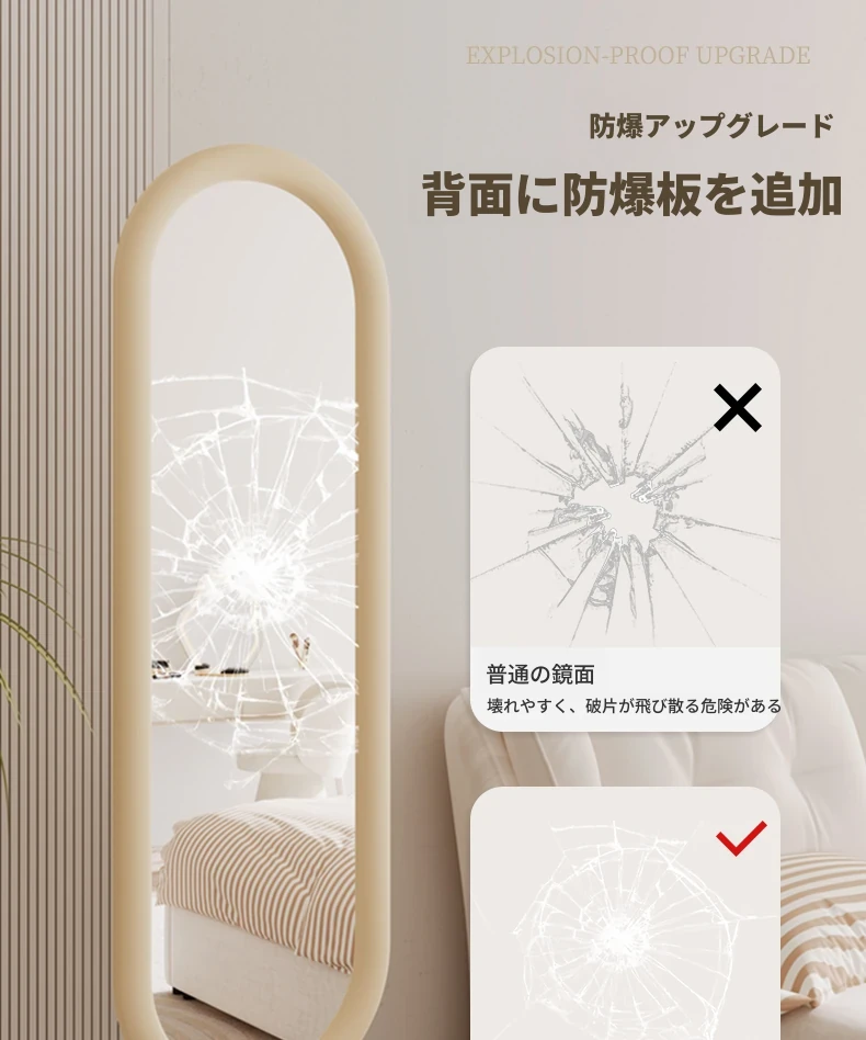 全身鏡 おしゃれな立て掛け式ミラー 自宅用 玄関にぴったり!高級感あふれる3D試着ミラー、インスタ映えするクリームカラーで、お部屋を華やかに演出!