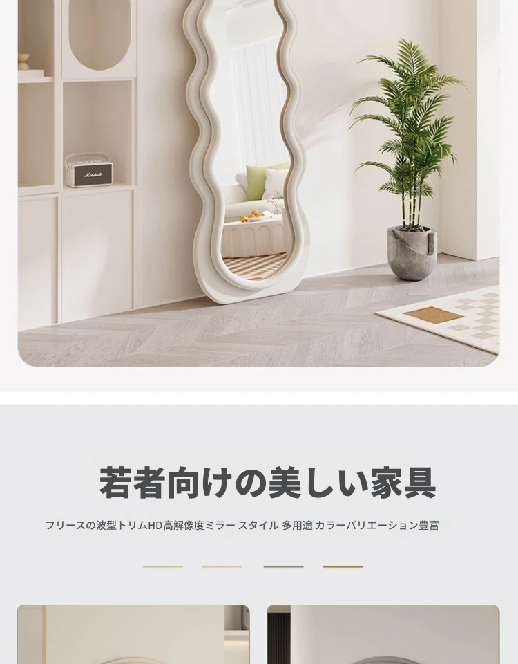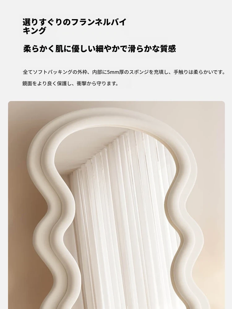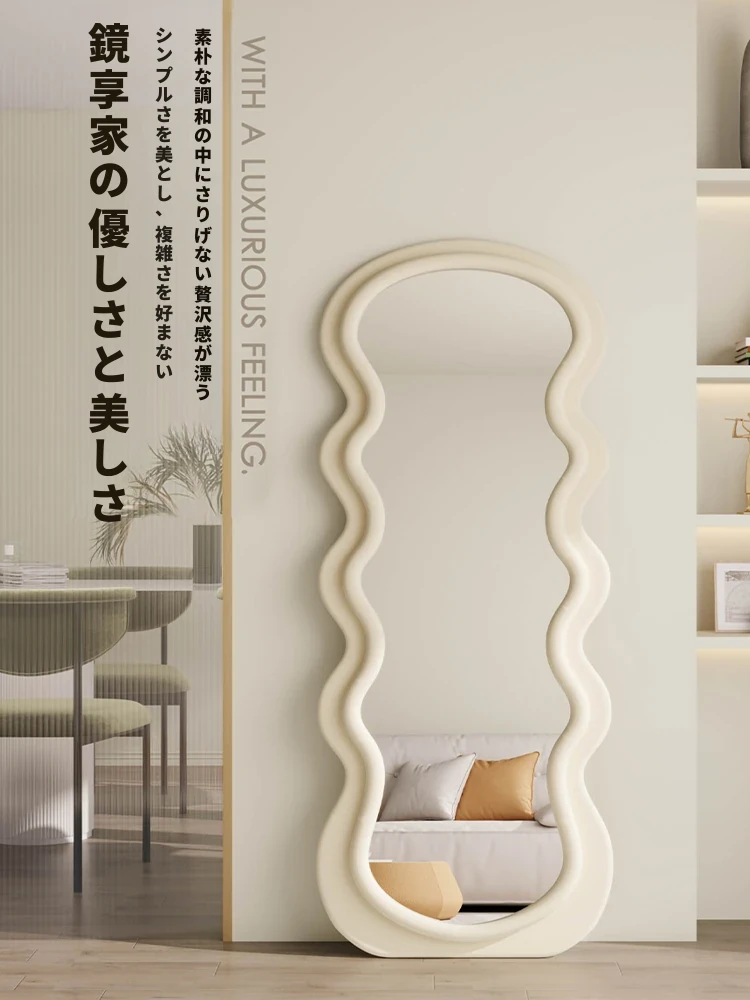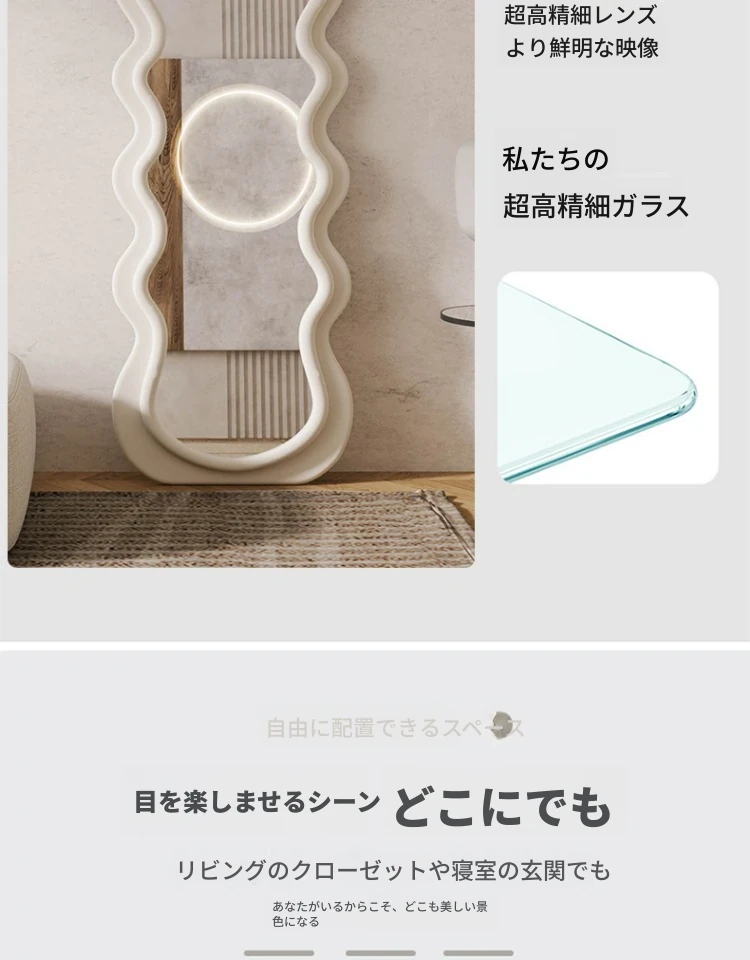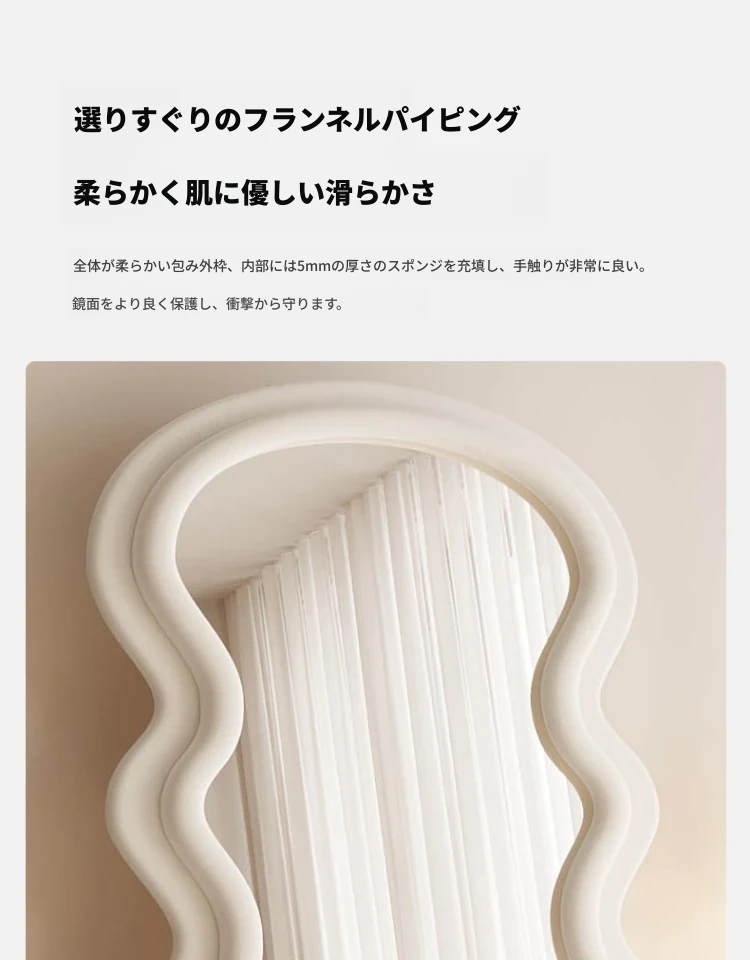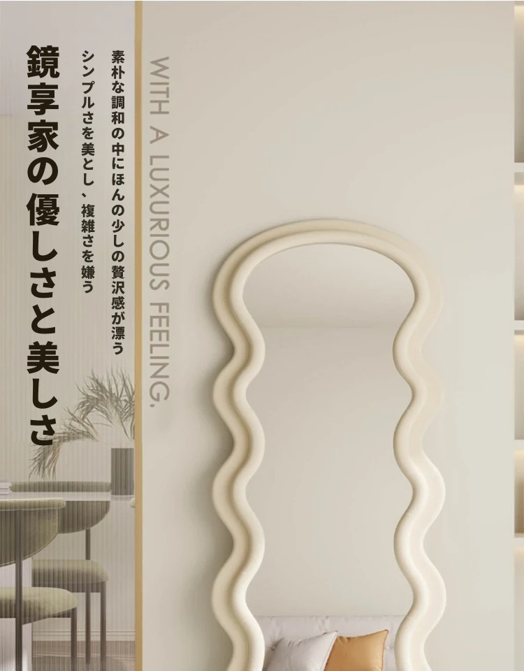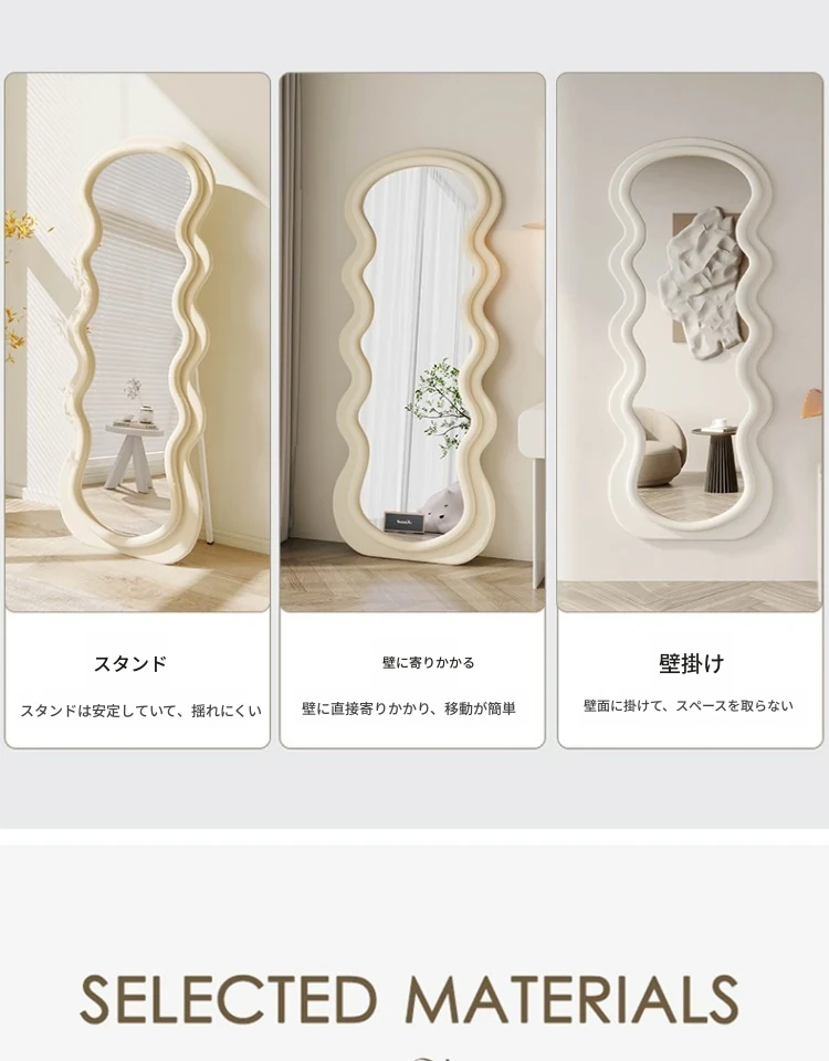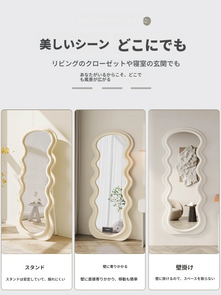 全身用のスタンドミラー|波浪形デザインでおしゃれな試着鏡|女性の寝室や洋服店にぴったり!美しい反射でコーディネートを楽しもう!