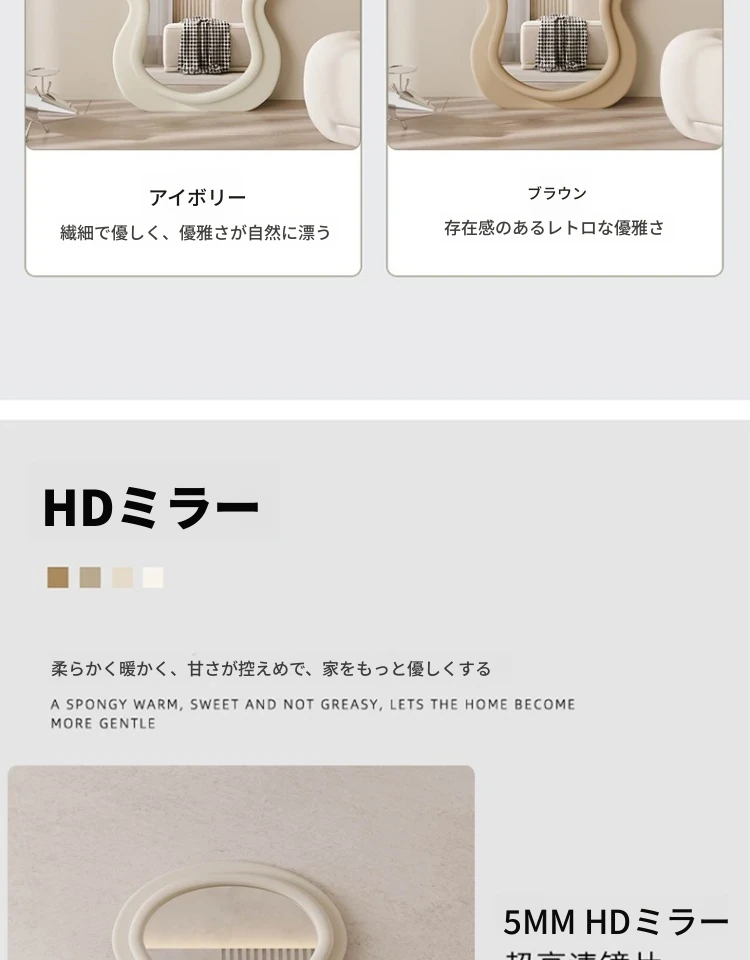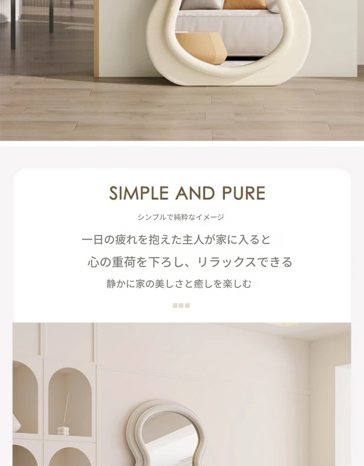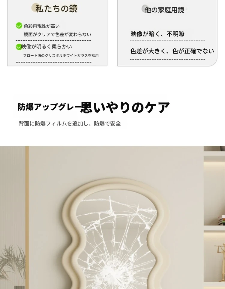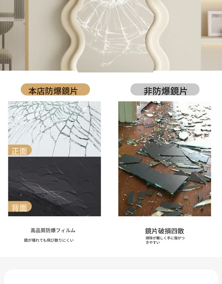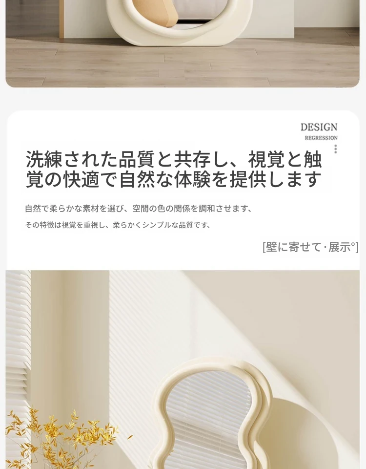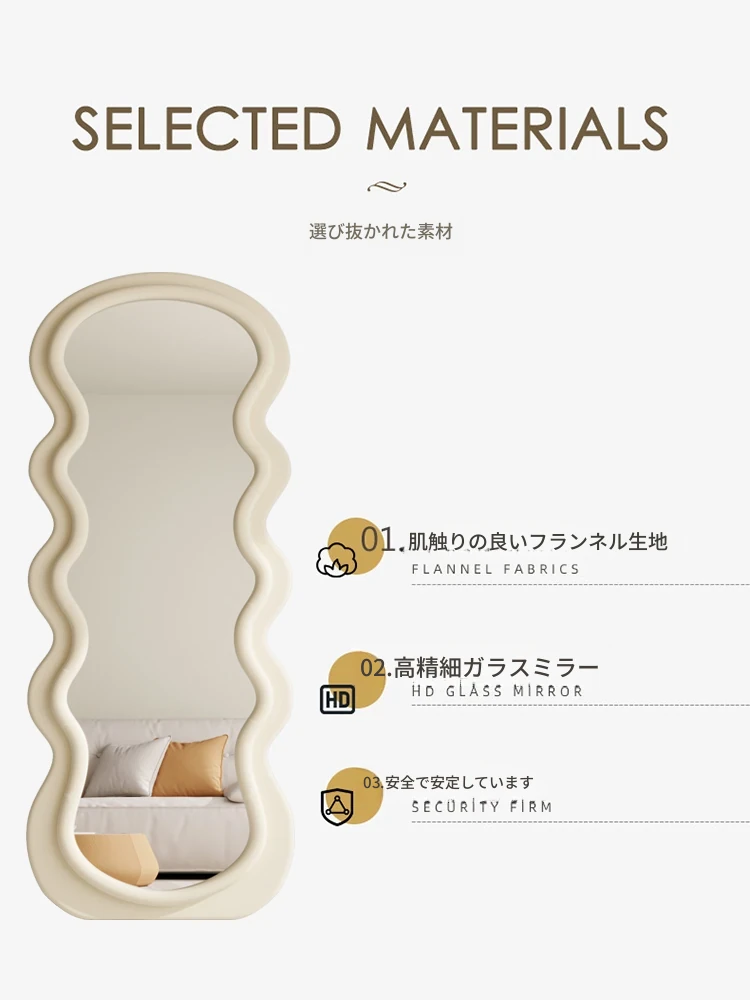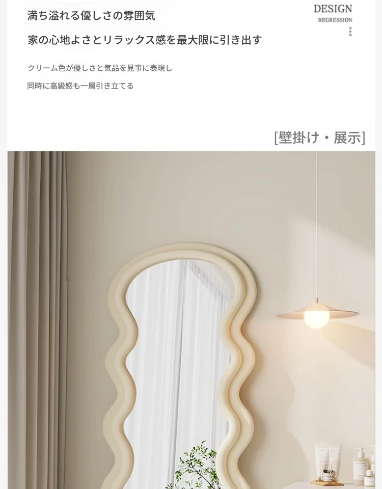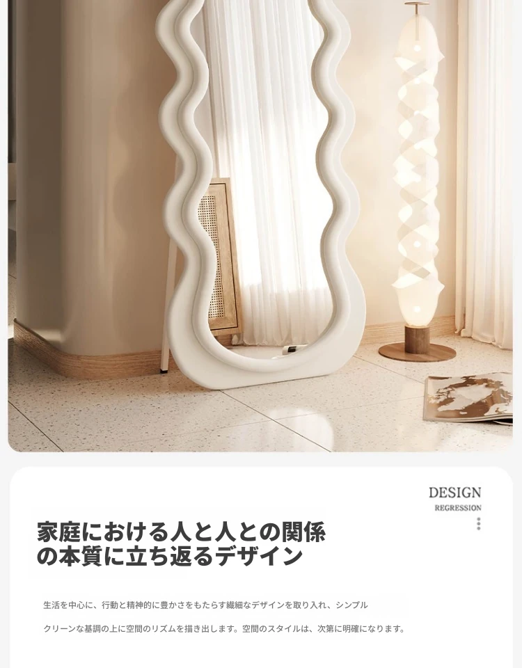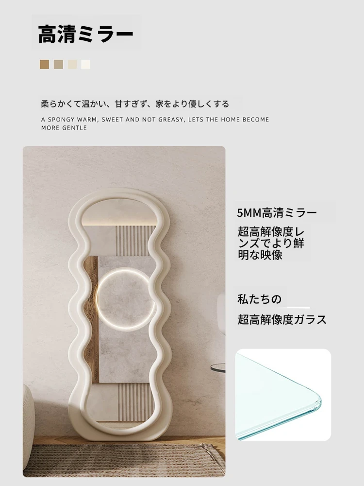 全身用のスタンドミラー|波浪形デザインでおしゃれな試着鏡|女性の寝室や洋服店にぴったり!美しい反射でコーディネートを楽しもう!