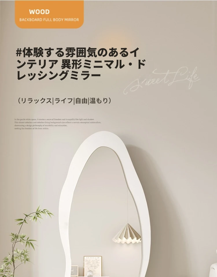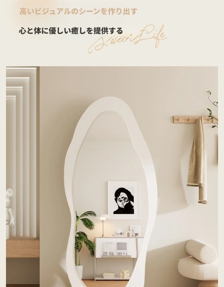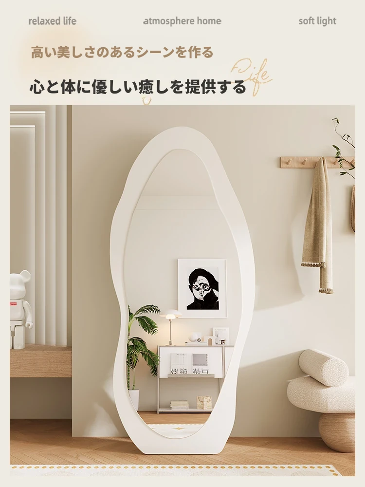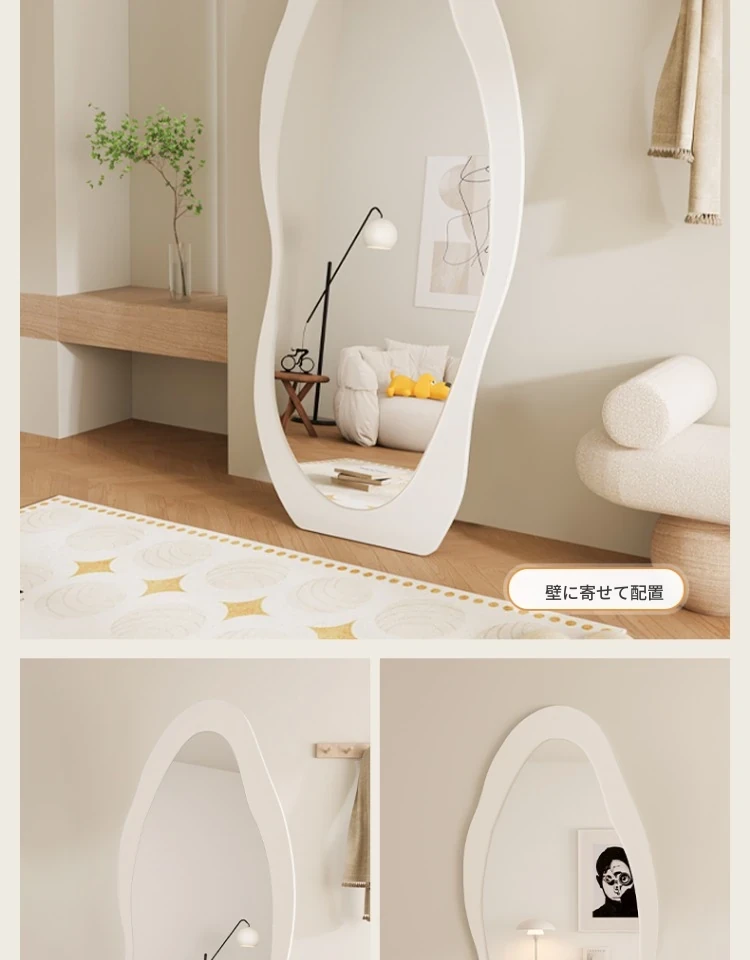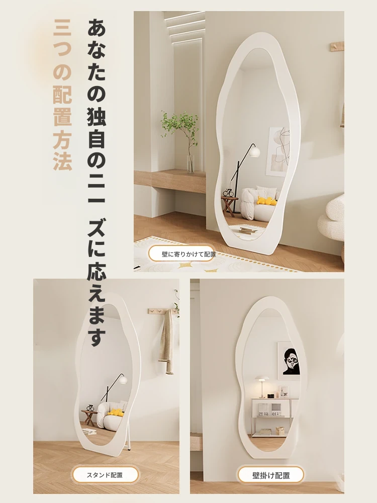 壁掛け・立て掛け両用全身鏡!おしゃれなクリーム風デザインの試着ミラー。高級感漂う軽奢スタイルで、家のインテリアにもぴったり!あなたのコーディネートを引き立てる必須アイテムです。