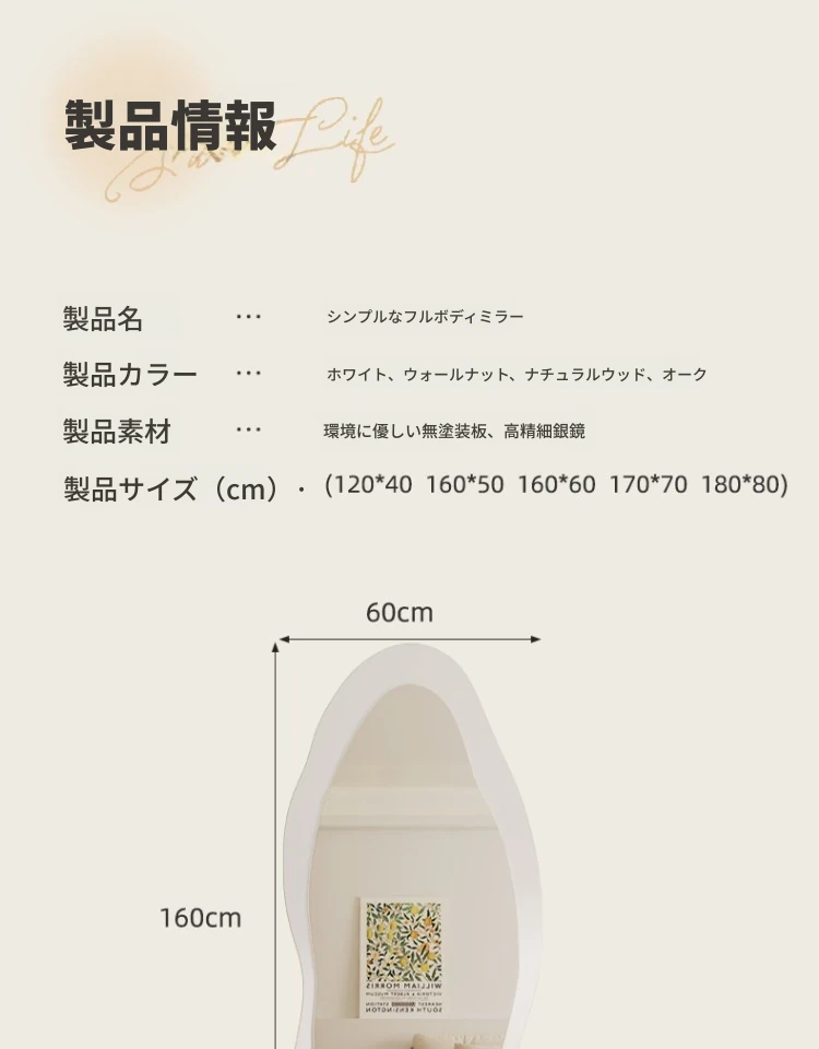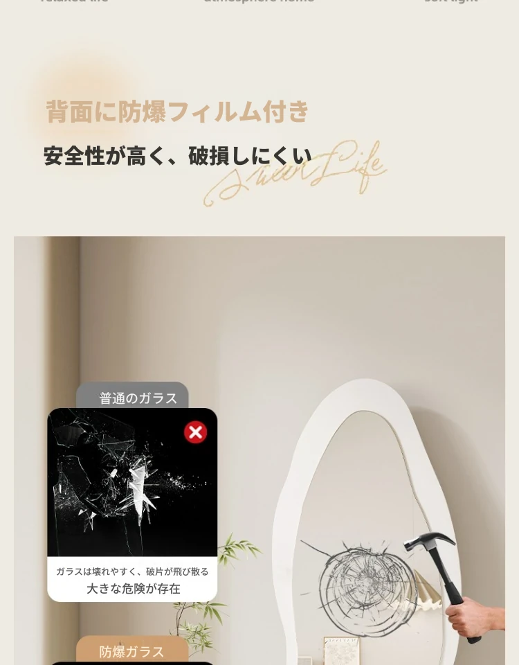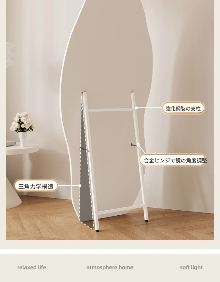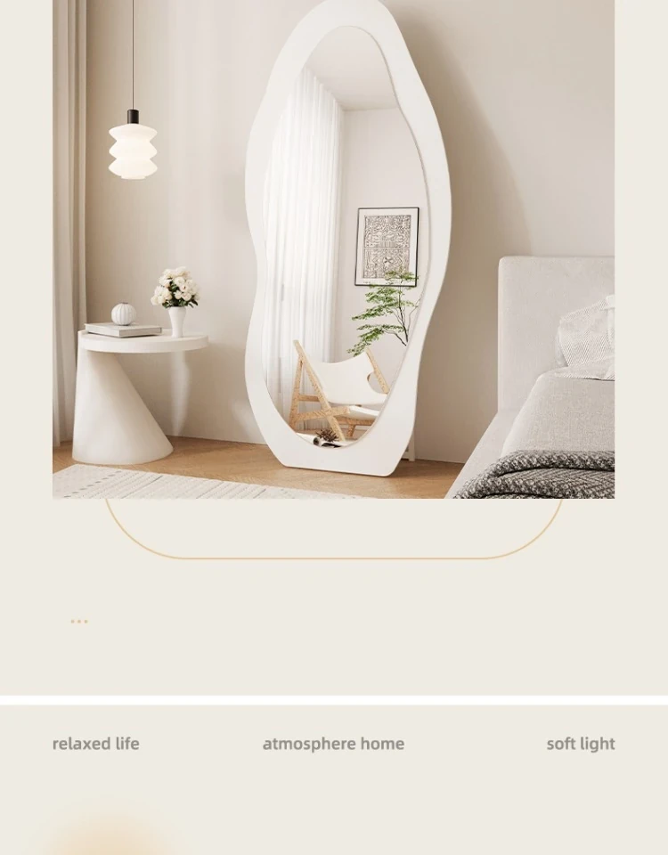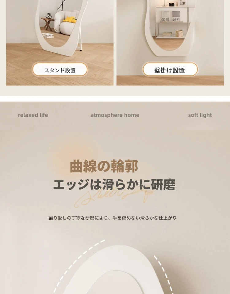壁掛け・立て掛け両用全身鏡!おしゃれなクリーム風デザインの試着ミラー。高級感漂う軽奢スタイルで、家のインテリアにもぴったり!あなたのコーディネートを引き立てる必須アイテムです。