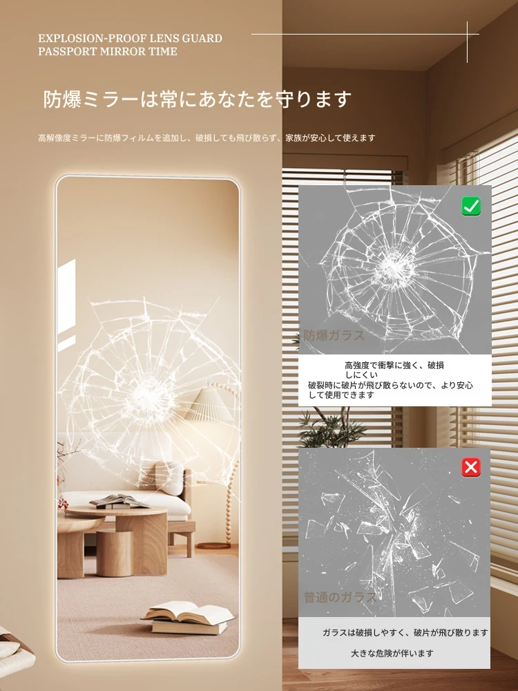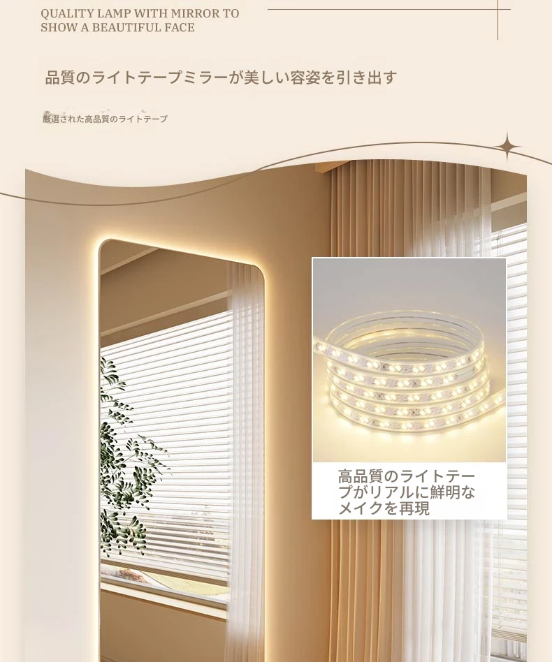光るウォークインクローゼット用タッチスクリーンスマートLED全身鏡 - おしゃれなインスタ風の壁掛けドレッシングミラーで、毎日のコーディネートを楽しもう!