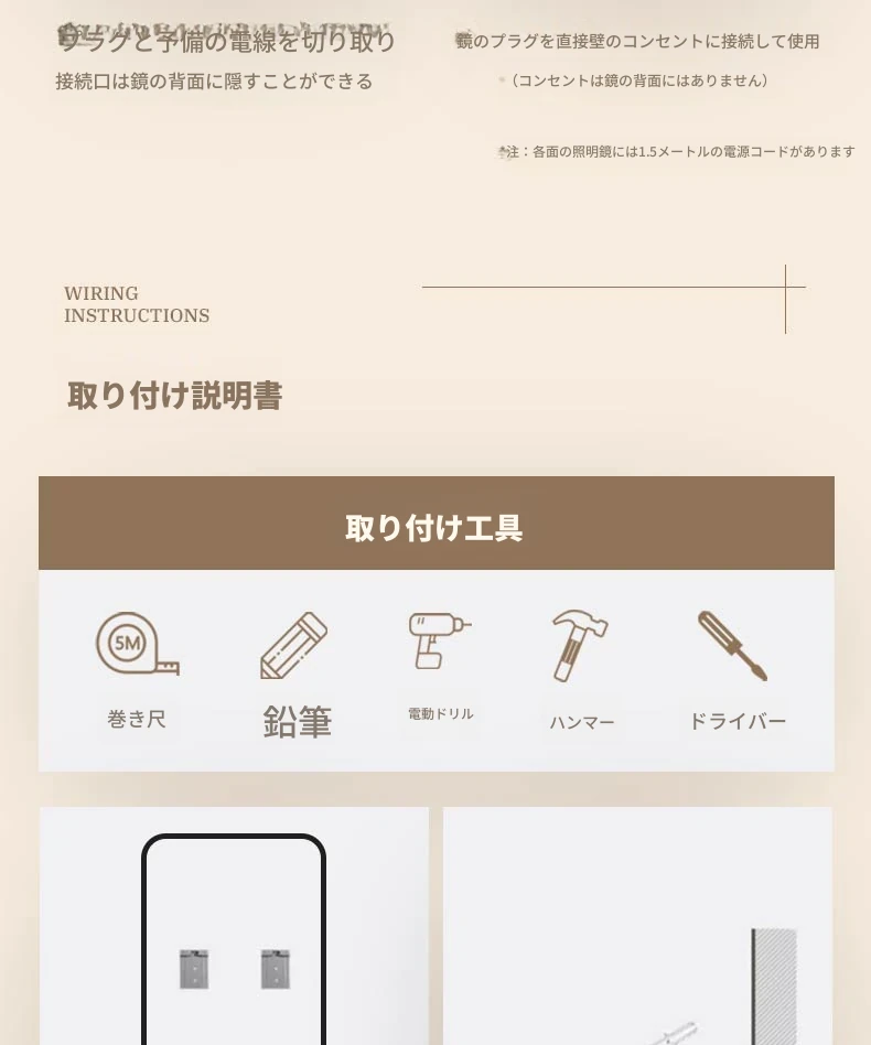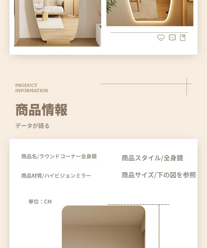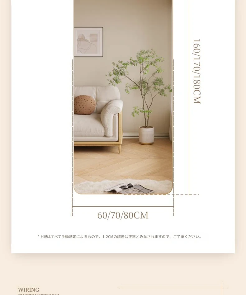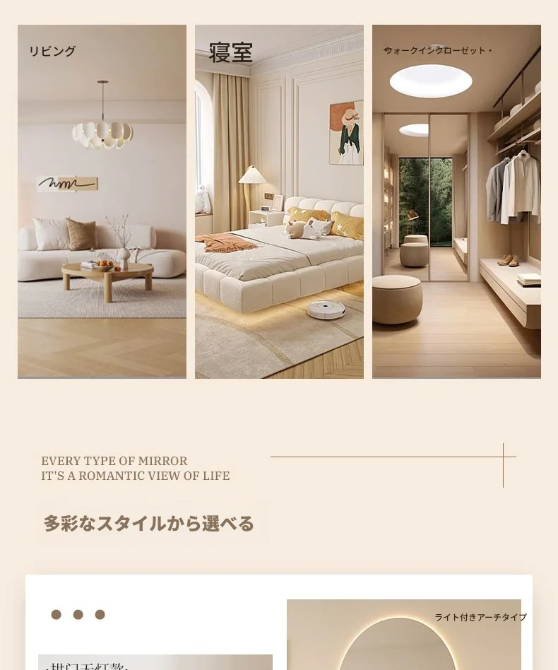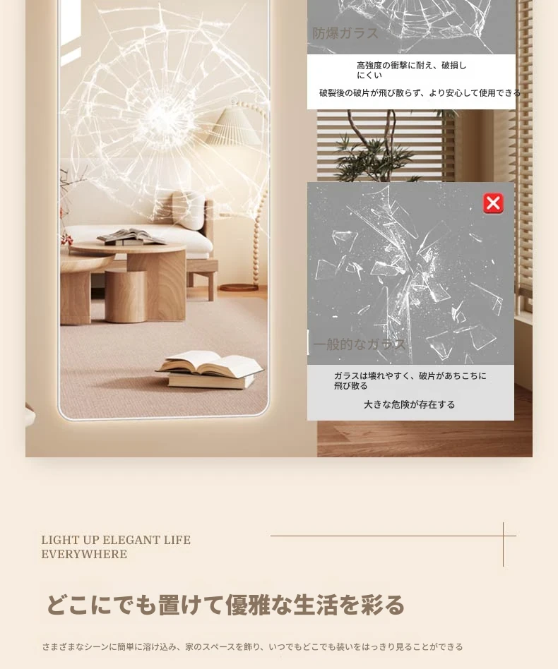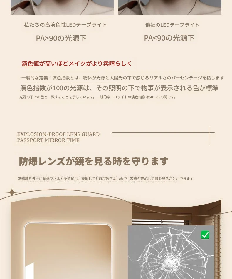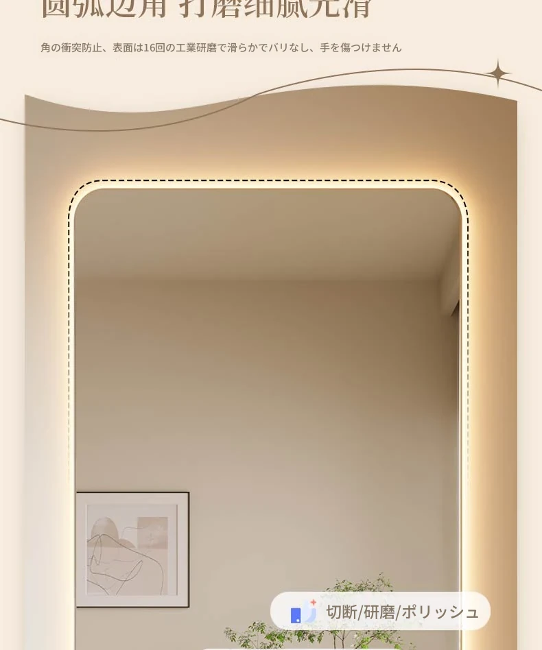 角丸デザイン 180*80 三色光 + センサースイッチ