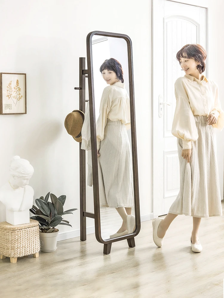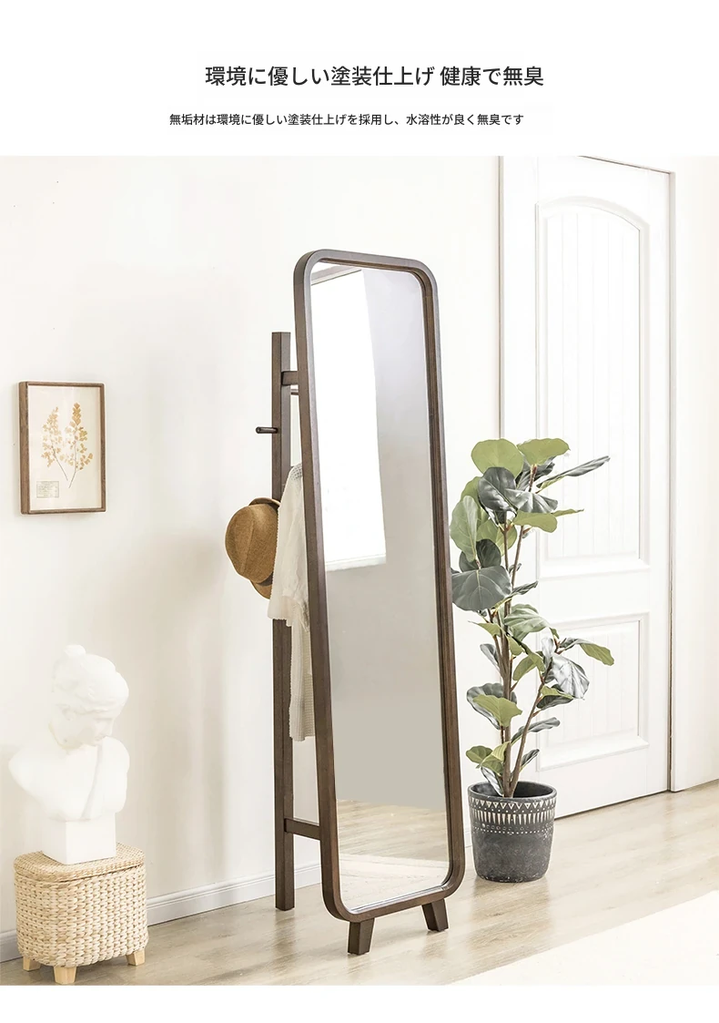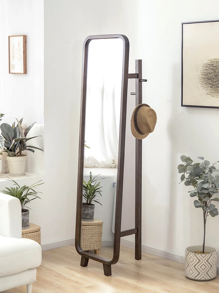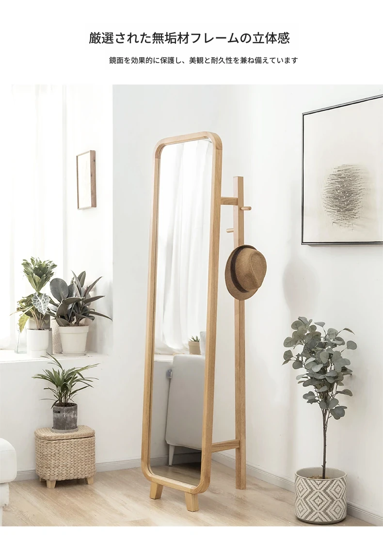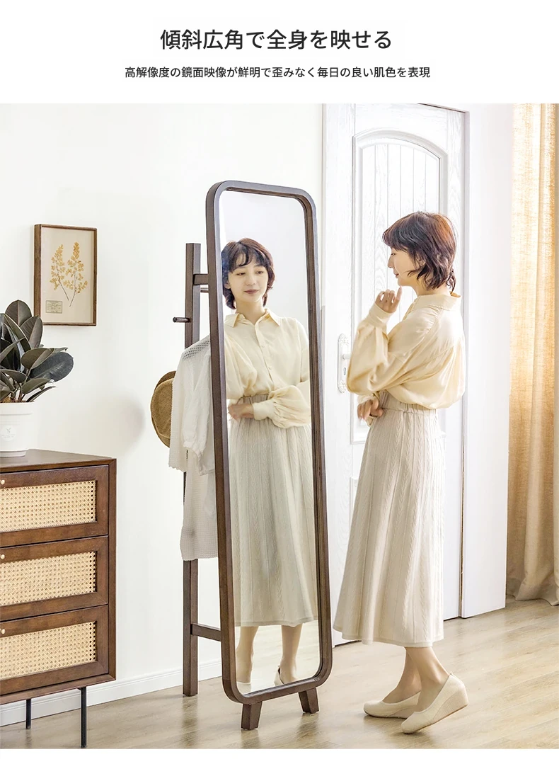 イニスの天然木製全身鏡 - 家庭用寝室の試着鏡!多機能の衣服掛け一体型スタンドミラーで、スタイリッシュな空間を演出。あなたのコーディネートを引き立てる、毎日の必需品!
