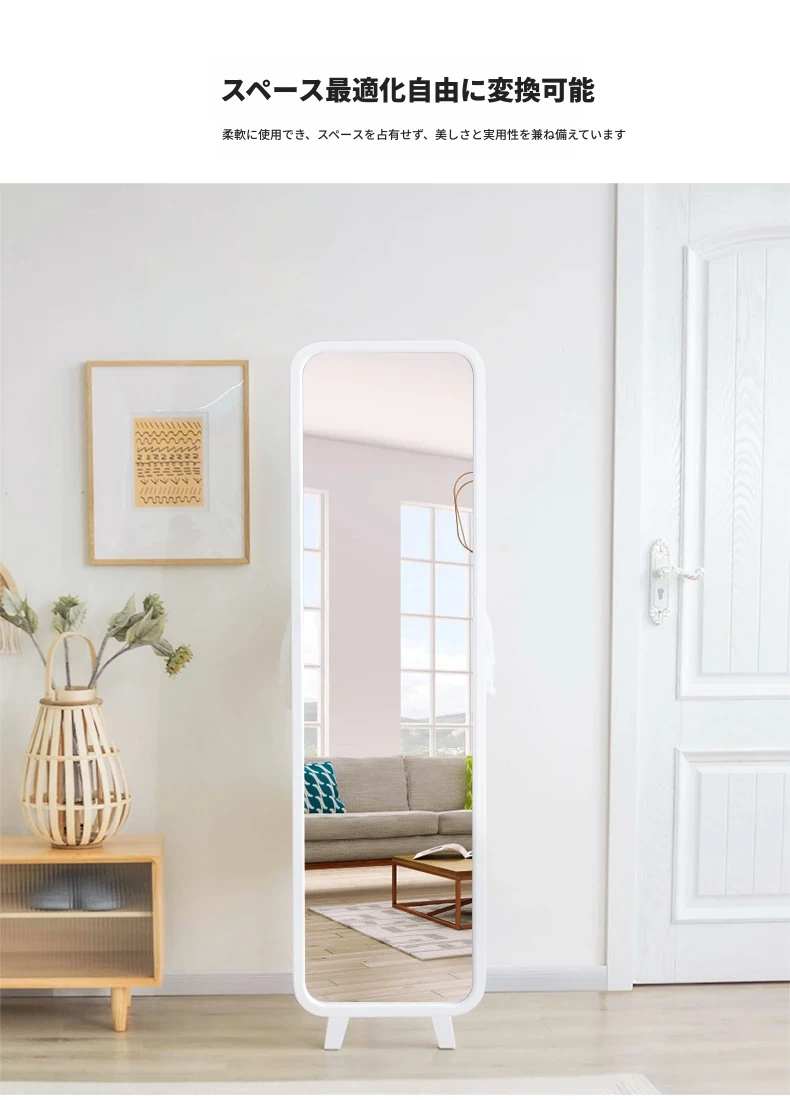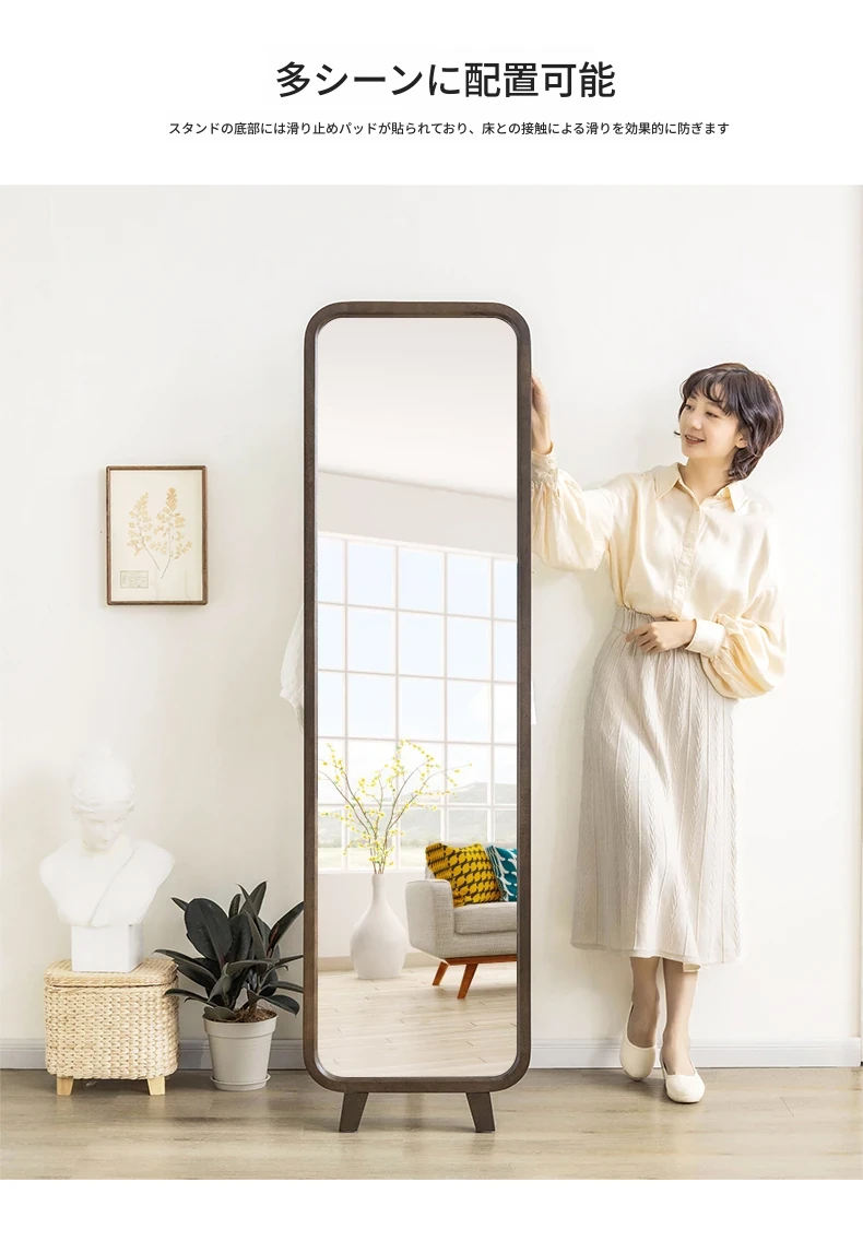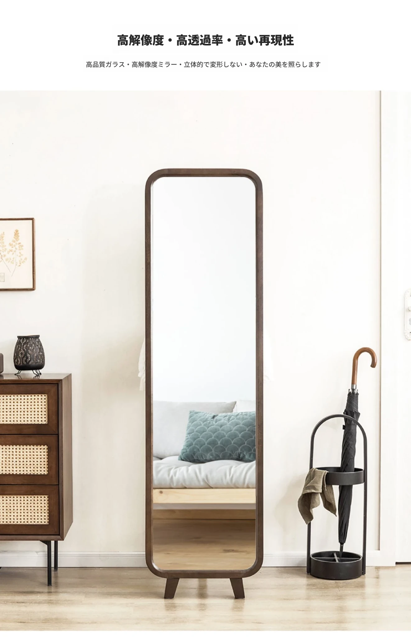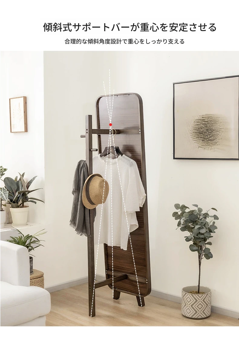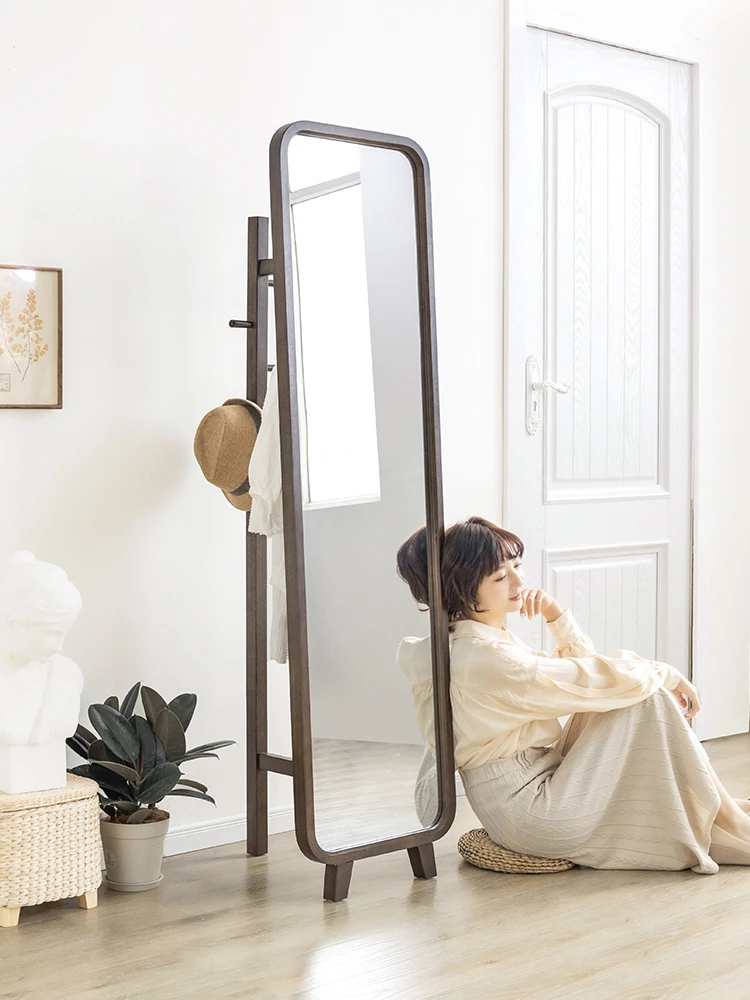 イニスの天然木製全身鏡 - 家庭用寝室の試着鏡!多機能の衣服掛け一体型スタンドミラーで、スタイリッシュな空間を演出。あなたのコーディネートを引き立てる、毎日の必需品!