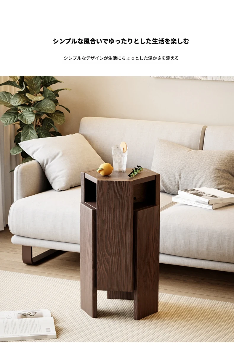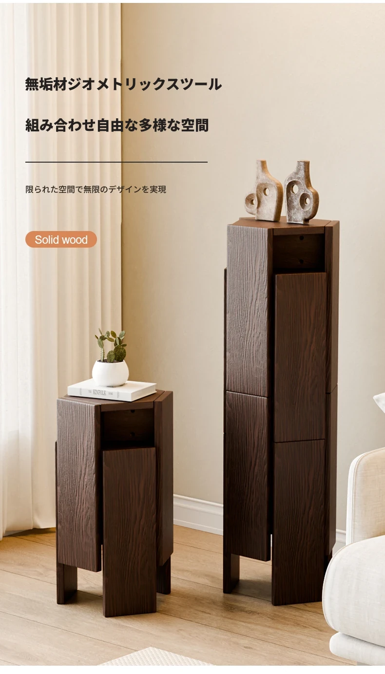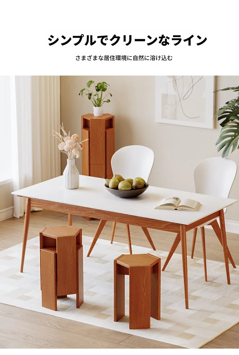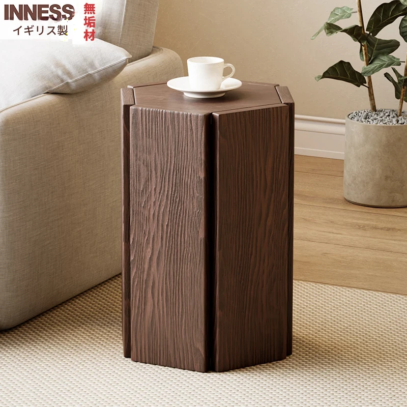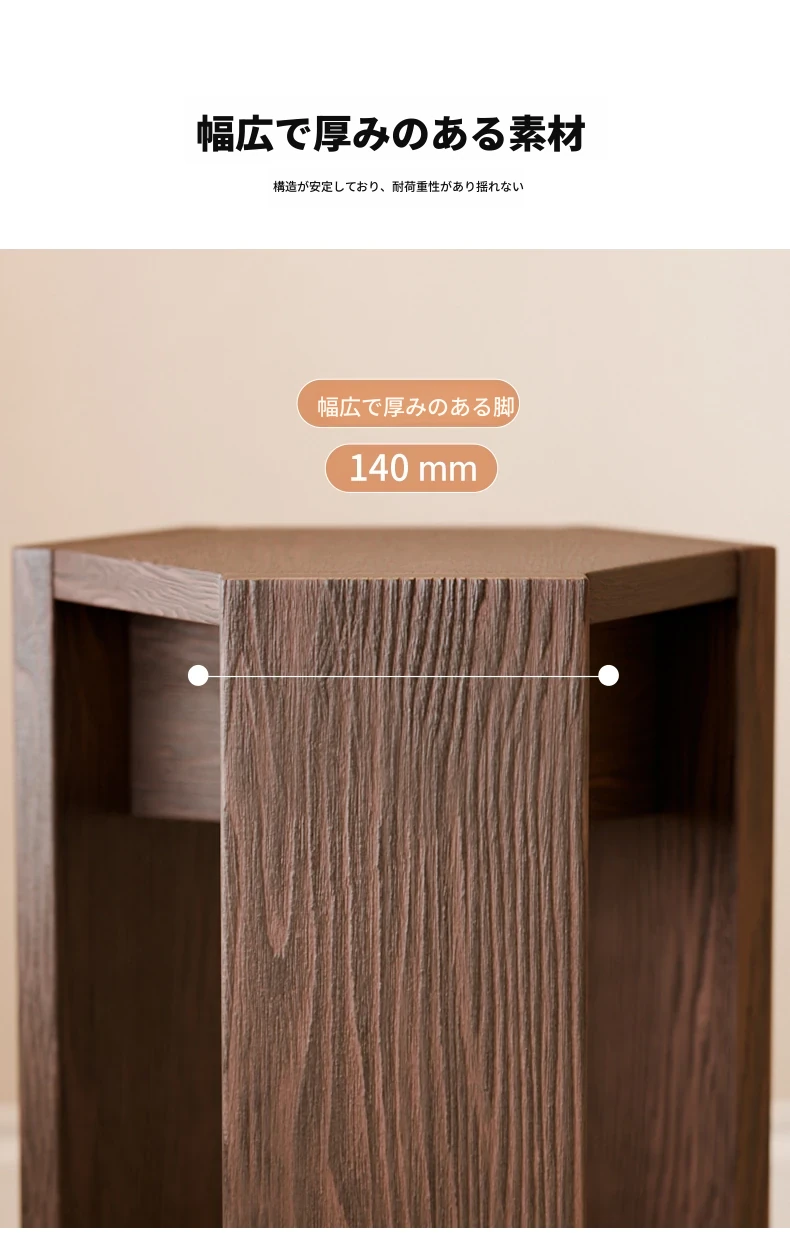 イニス天然木製スツール|厚手六角形デザイン|おしゃれなソファサイドテーブルやダイニング用に最適|スタッキング可能で収納も簡単|リビングやダイニングを彩るアイテム!