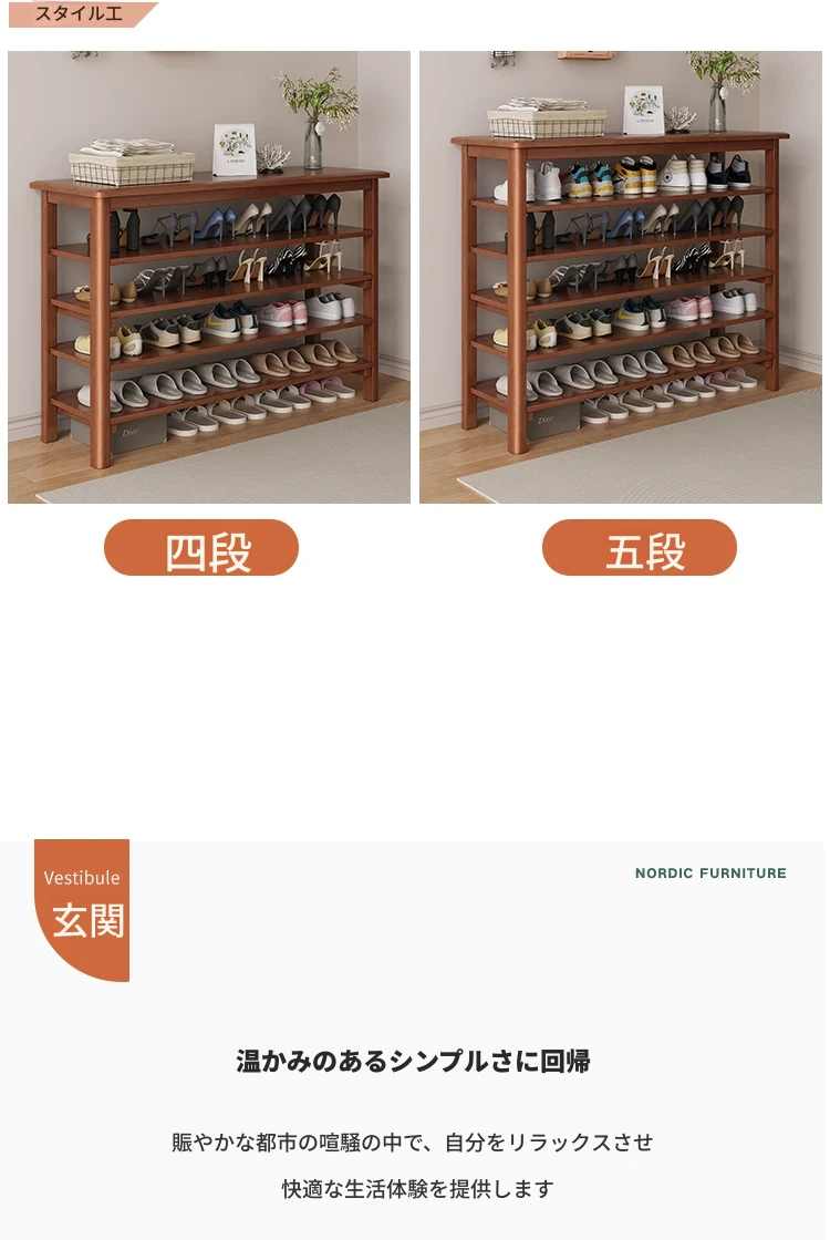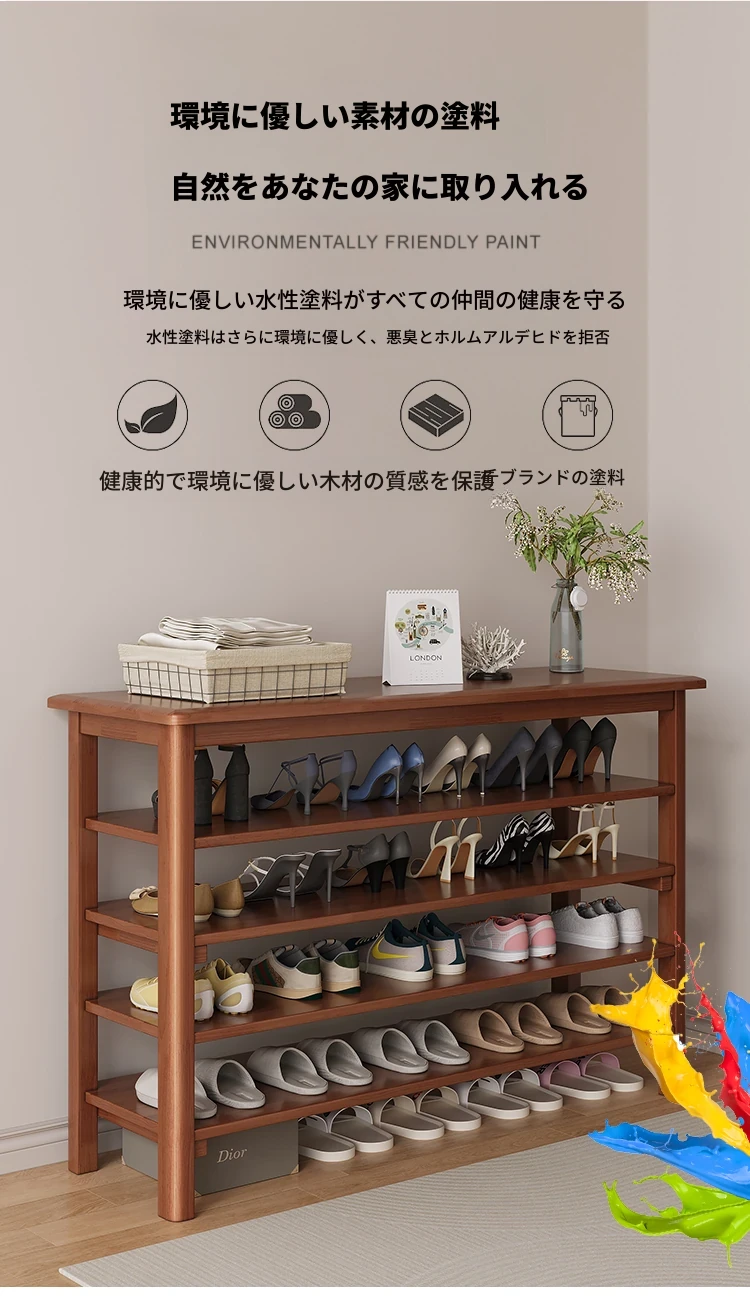 イニス 全木製シューラック 家庭用玄関一体型 多層収納キャビネット シンプルで大容量の物置ラック - 家族の靴をスッキリ整理!