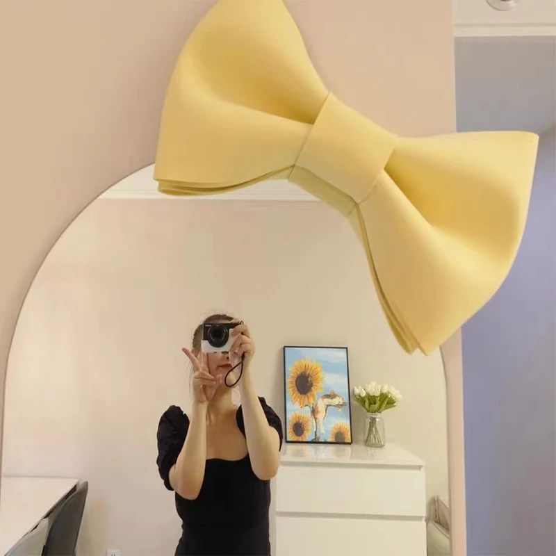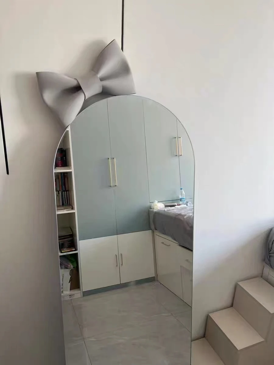 全身鏡 バタフライリボン装飾 おしゃれなインスタ風衣装鏡 壁掛け撮影用ミラー 大サイズでお部屋を華やかに!