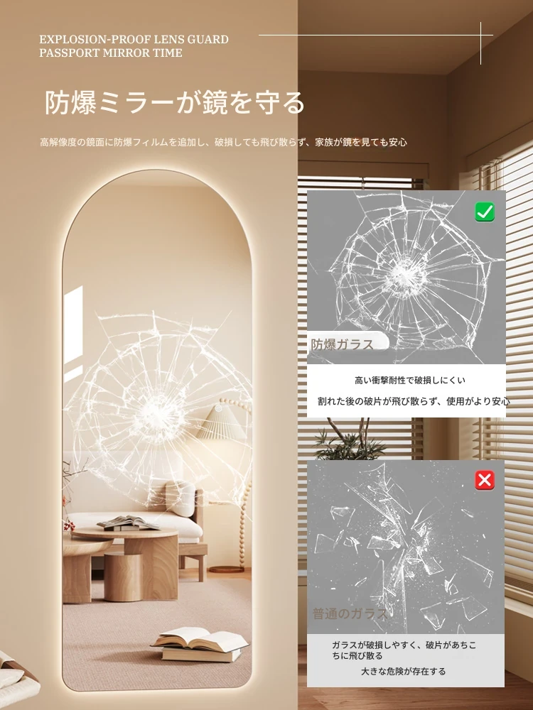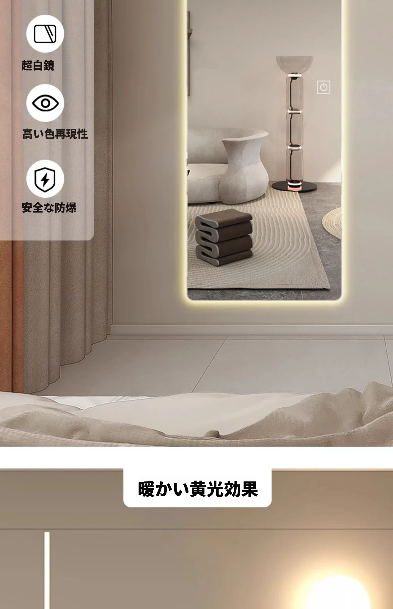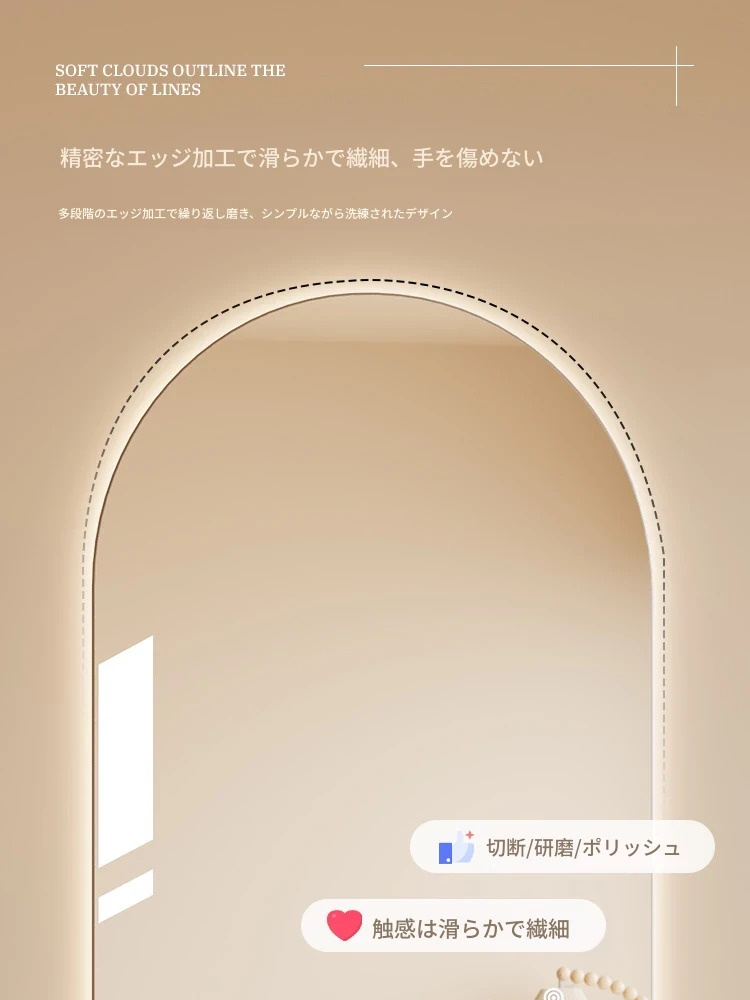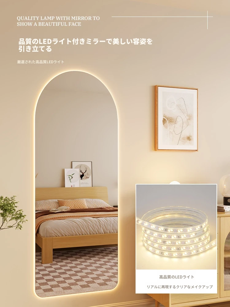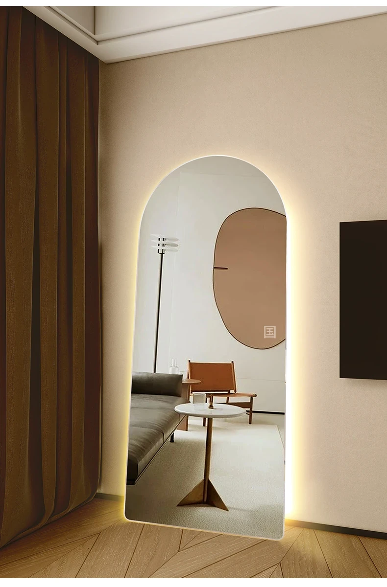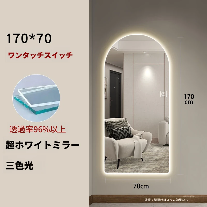 新型スマート衣装ミラー LED照明付き アーチ型全身鏡 壁掛けタイプ 玄関用フレームレス試着ミラー - おしゃれで便利な空間を演出!