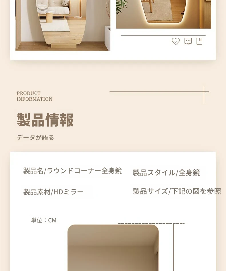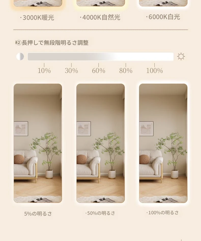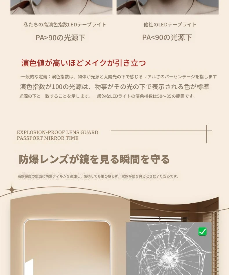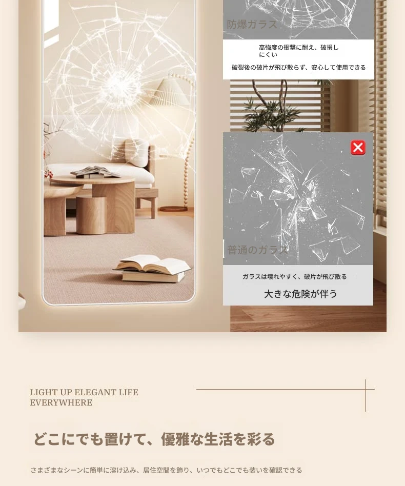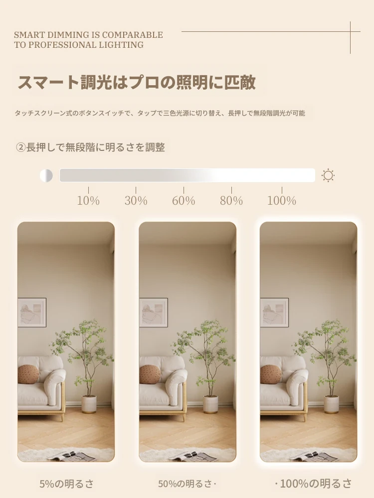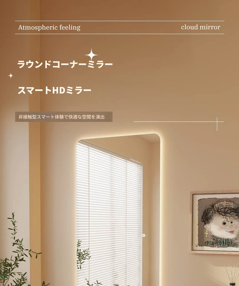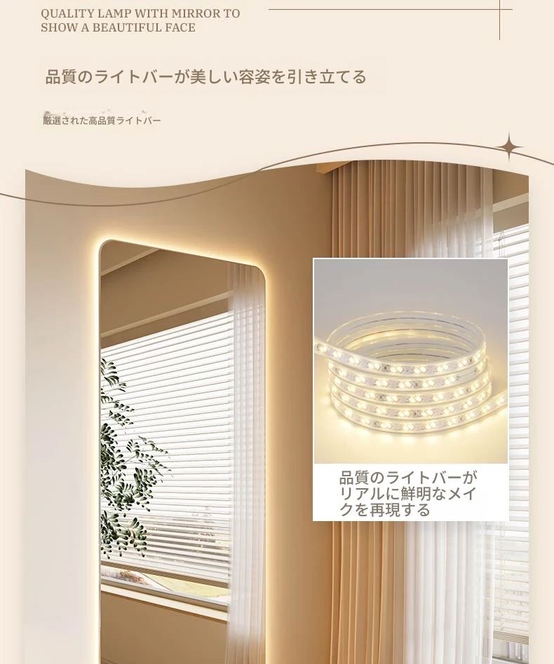高級感あふれるLEDスマートドレッシングミラー|家庭用・リビングルーム用・壁掛け全身鏡|おしゃれなインスタ風の光る試着ミラーで自分をもっと素敵に演出!