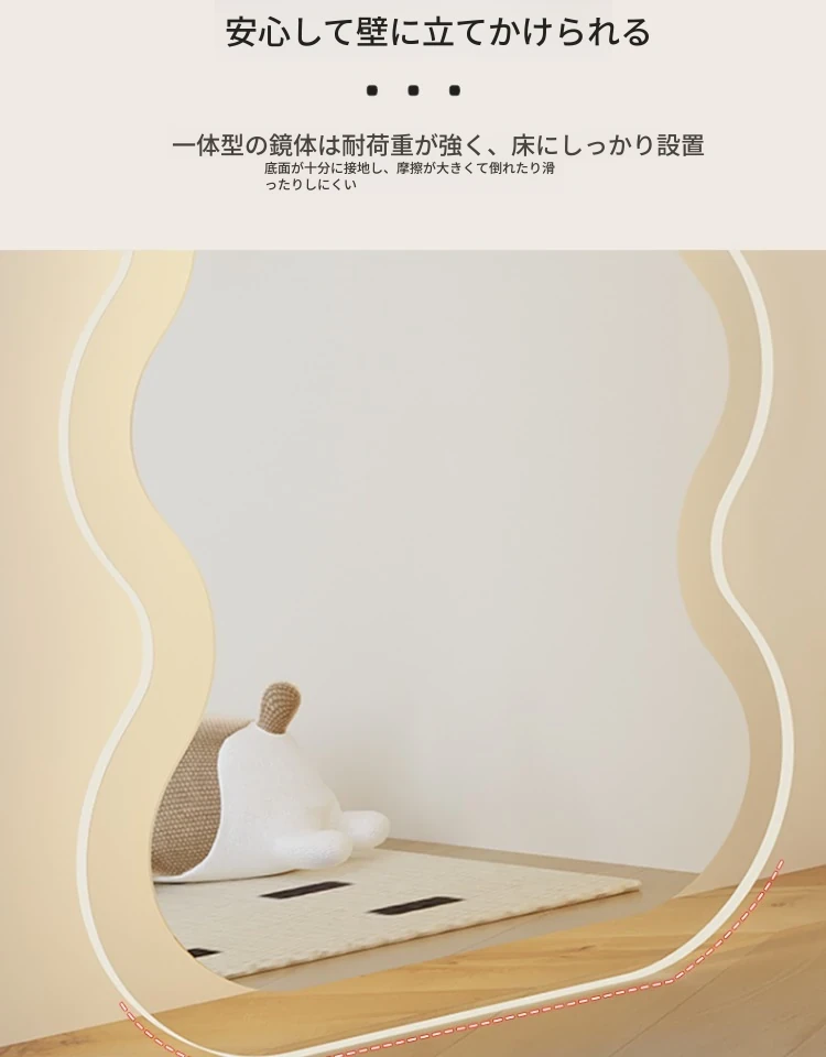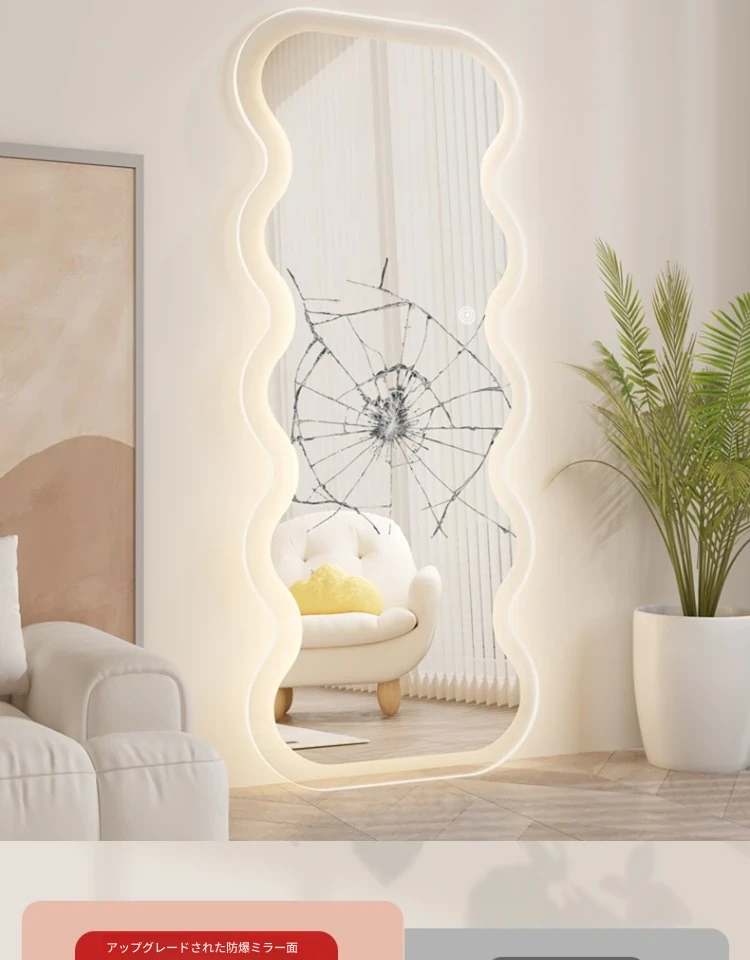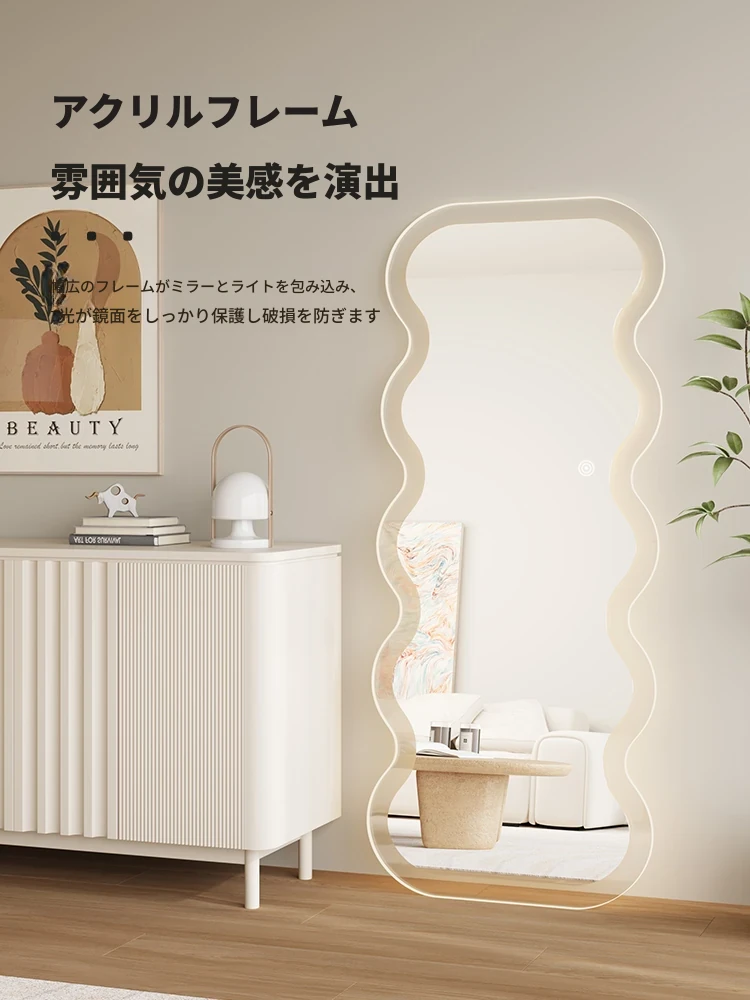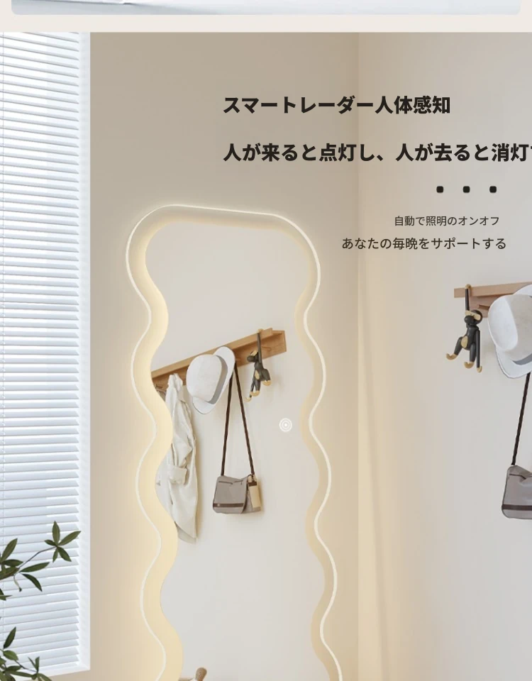 スマートウェーブ全身鏡 家庭用ドレッシングミラー LEDライト付き 壁掛け型クローゼット・エントランス用試着鏡 おしゃれなデザインで、毎日のコーディネートが楽しくなる!