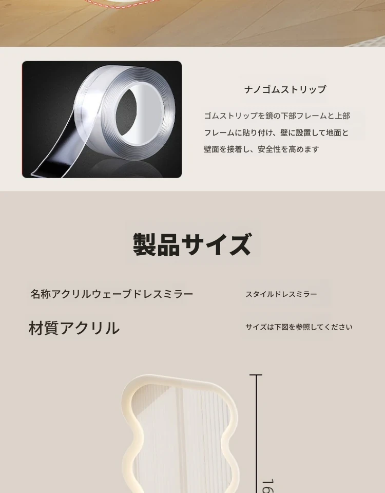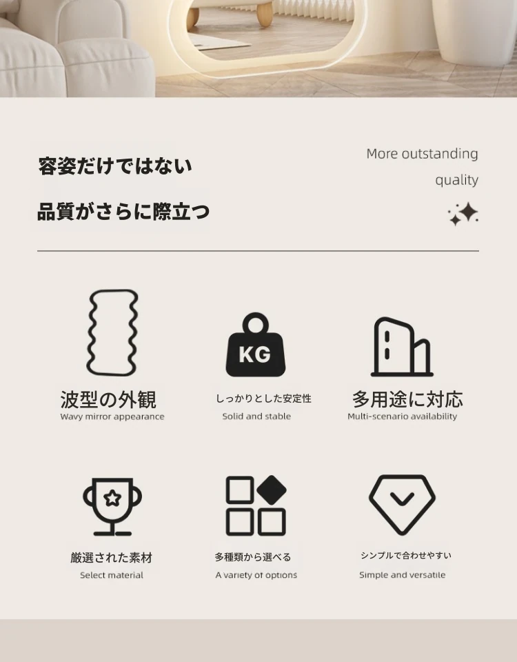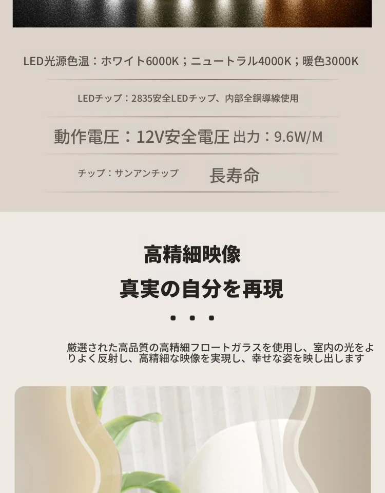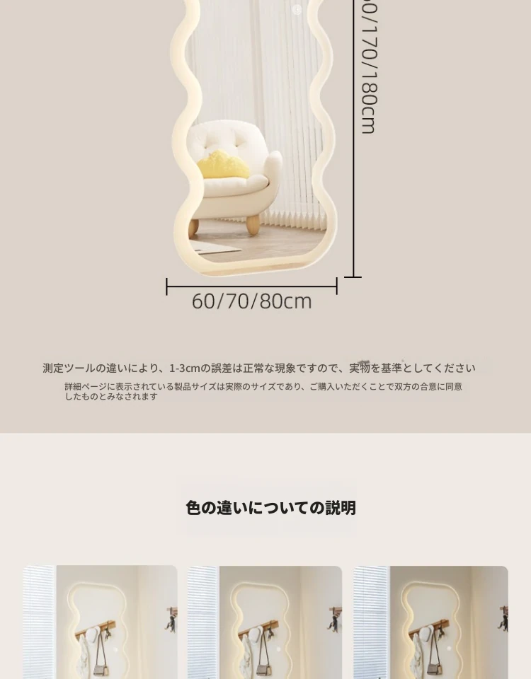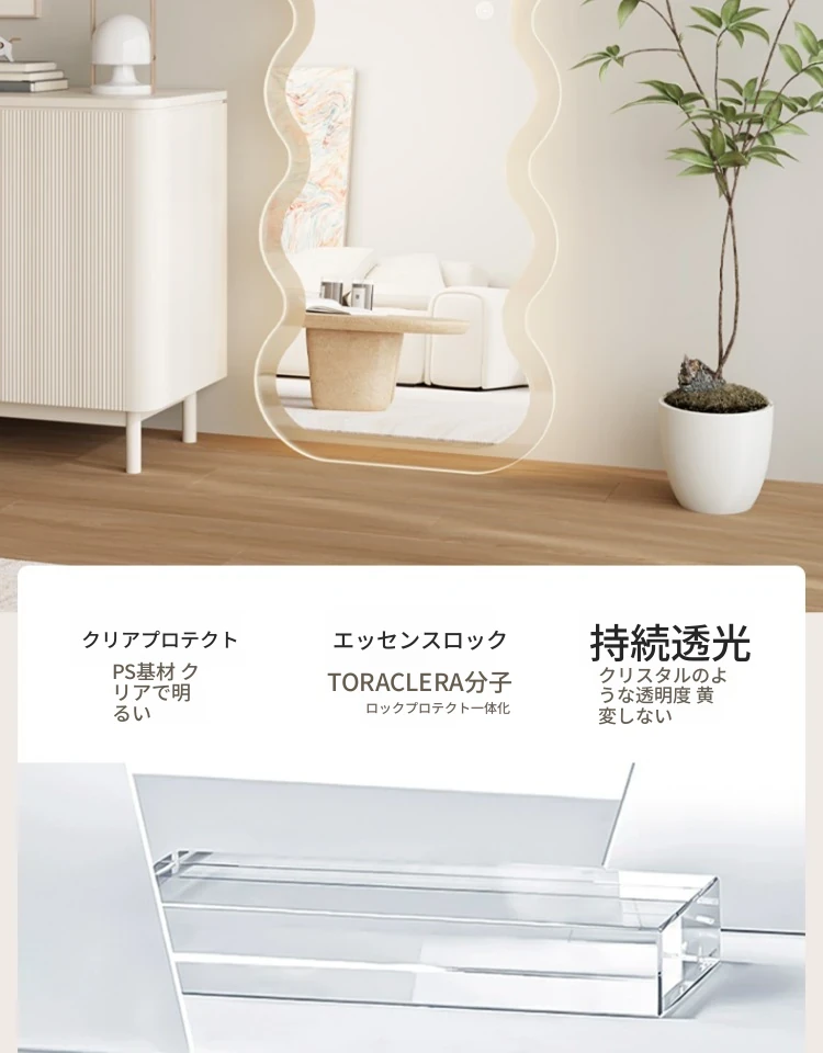 スマートウェーブ全身鏡 家庭用ドレッシングミラー LEDライト付き 壁掛け型クローゼット・エントランス用試着鏡 おしゃれなデザインで、毎日のコーディネートが楽しくなる!