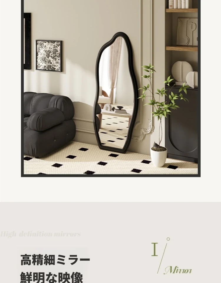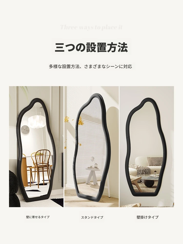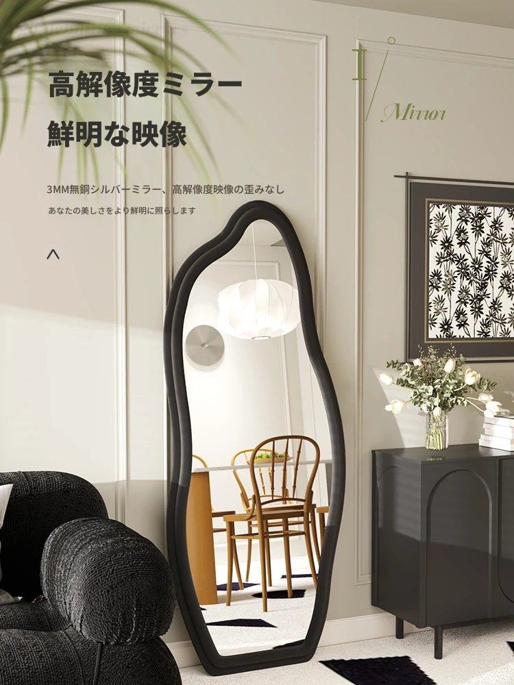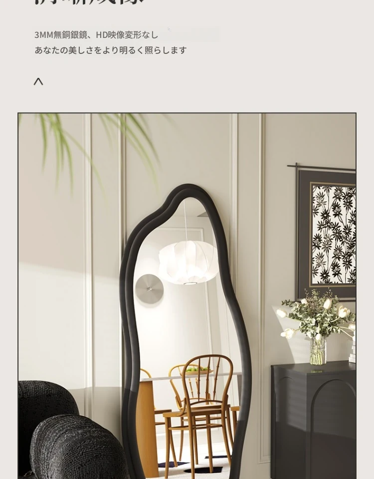 フランス風トレンドの不規則な全身鏡!スタイリッシュな立て掛け式ミラー、軽やかな高級感でおしゃれなコーディネートをサポート。雲のようなデザインの壁掛け試着鏡で、毎日のファッションを楽しもう!