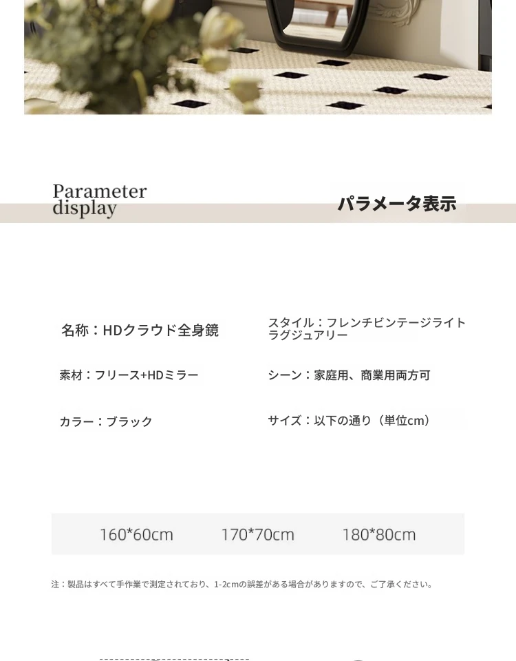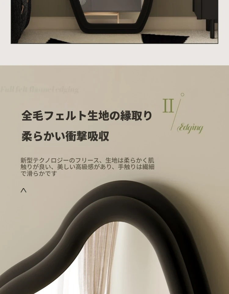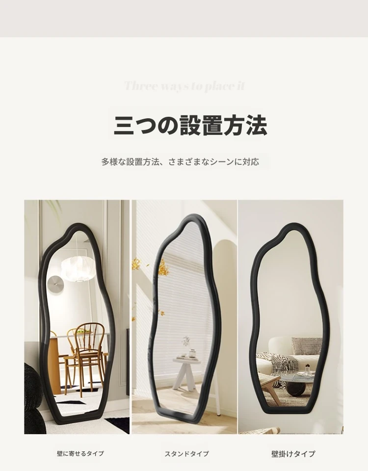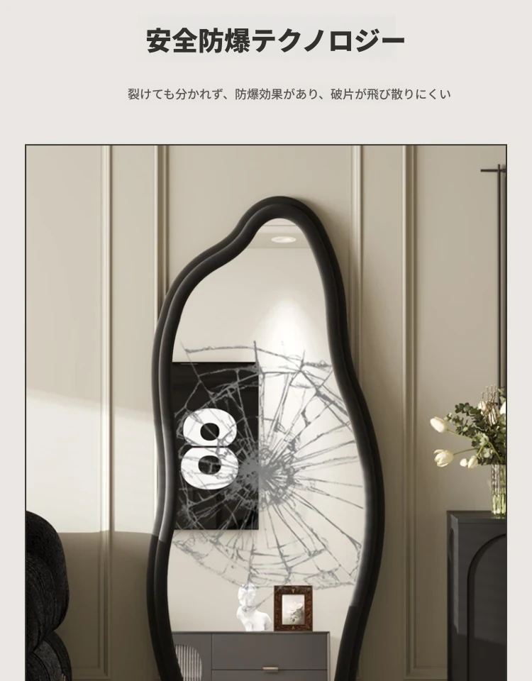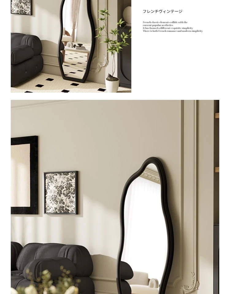 フランス風トレンドの不規則な全身鏡!スタイリッシュな立て掛け式ミラー、軽やかな高級感でおしゃれなコーディネートをサポート。雲のようなデザインの壁掛け試着鏡で、毎日のファッションを楽しもう!