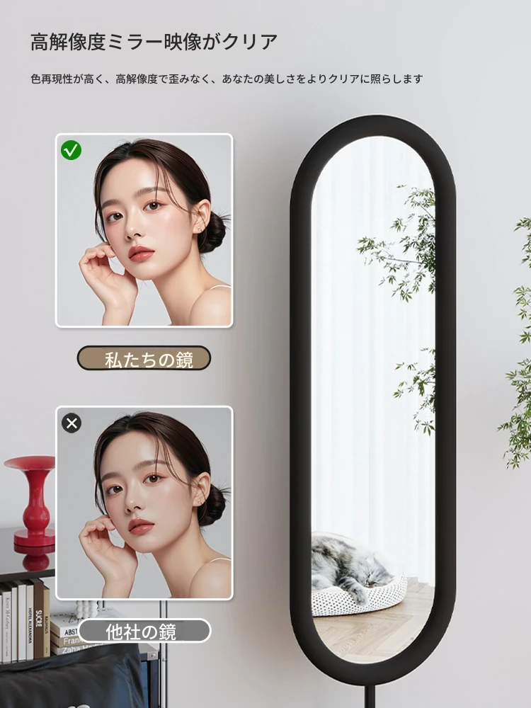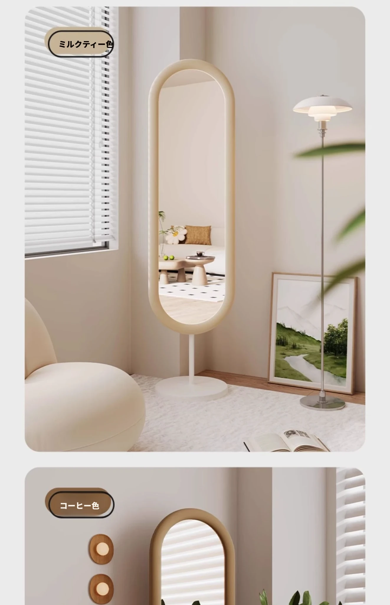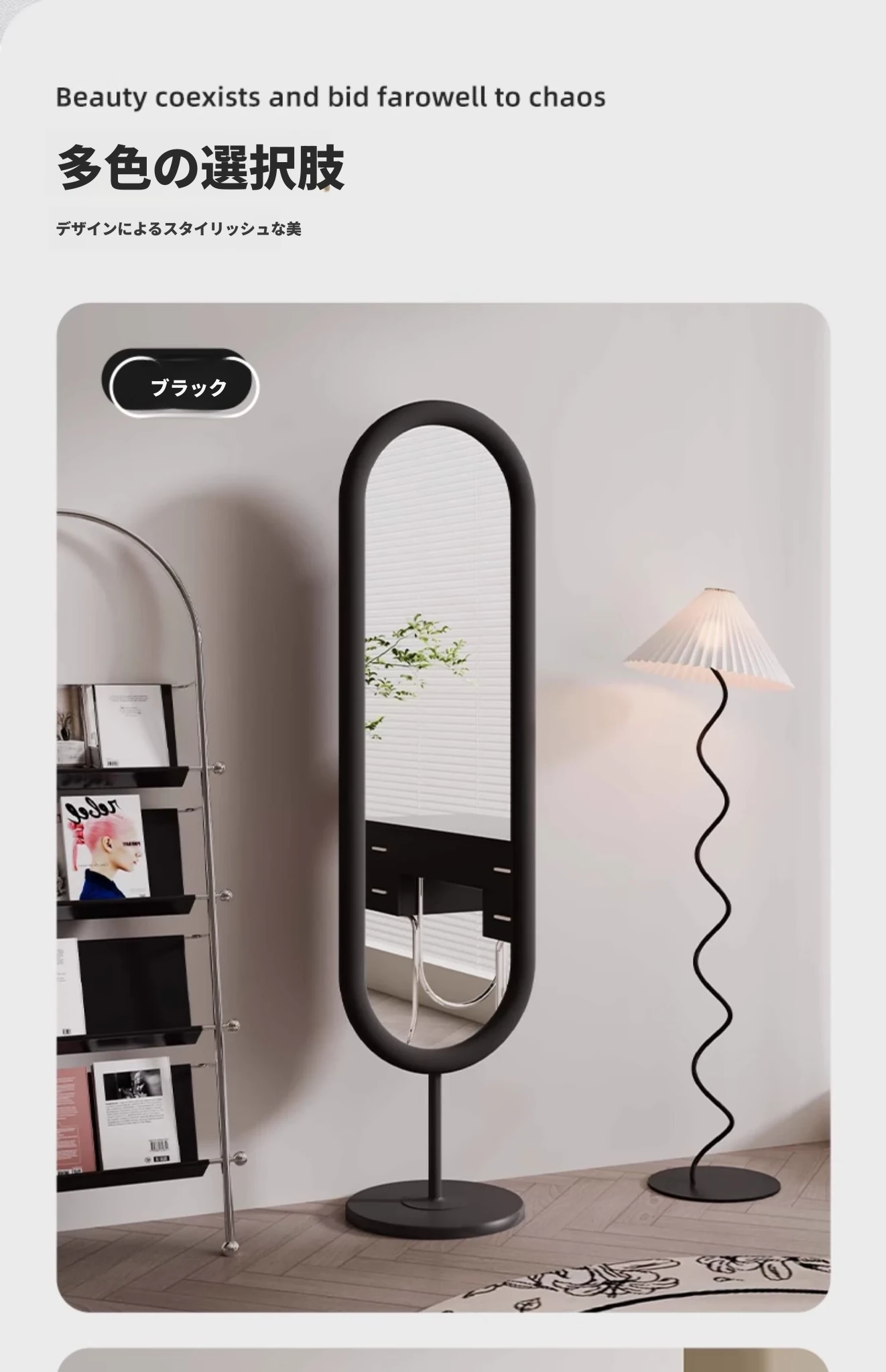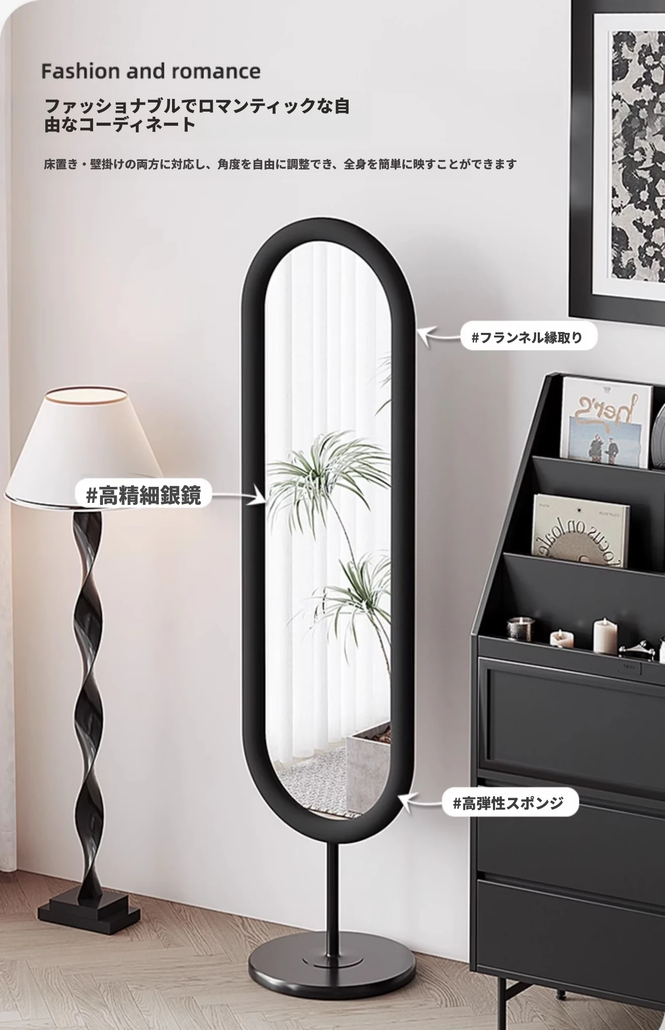 スタイリッシュ全身鏡|おしゃれな家庭用試着鏡|小型スペースにもぴったり|リビングに最適なフロアミラー|高級感あふれるドレッシングミラーで、毎日のコーディネートを楽しもう!