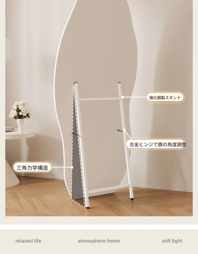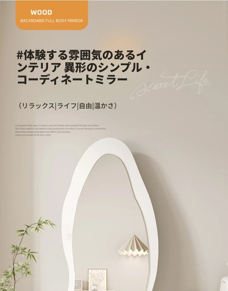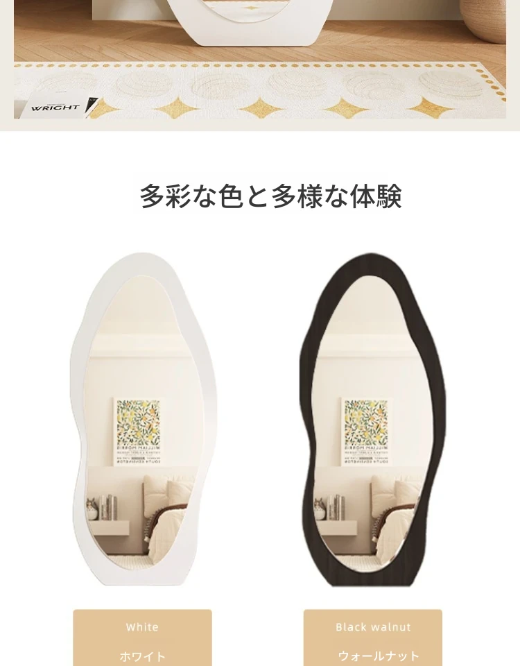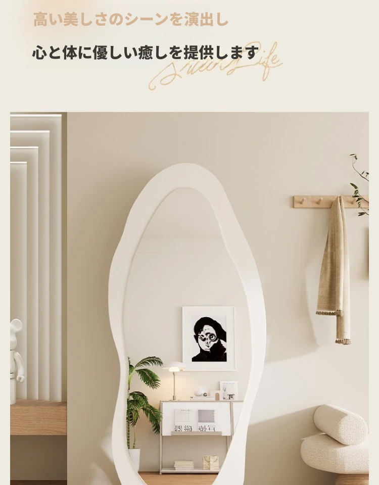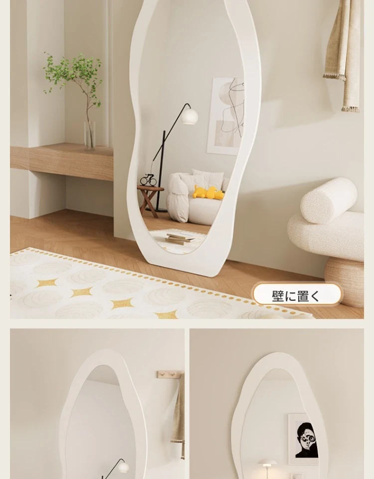 高級感漂う全身鏡!女性の部屋にぴったりなインスタ映えする試着鏡。立体感のあるデザインで、壁掛けとスタンド両方に対応。おしゃれな空間を演出し、毎日のコーディネートを楽しくします!