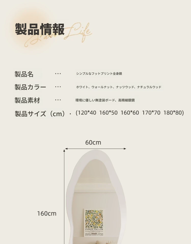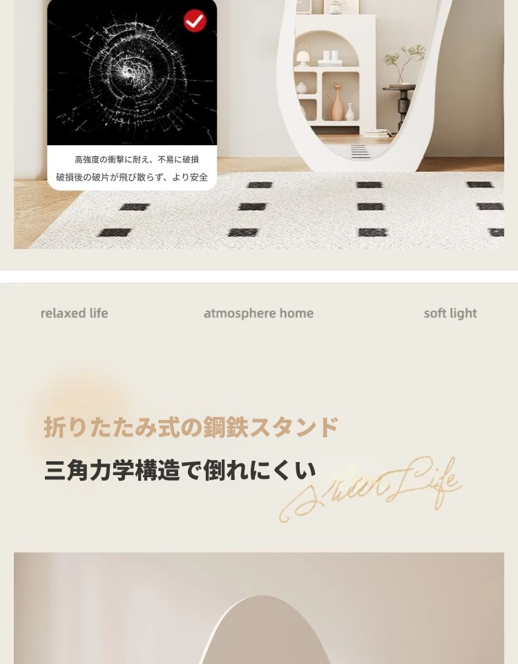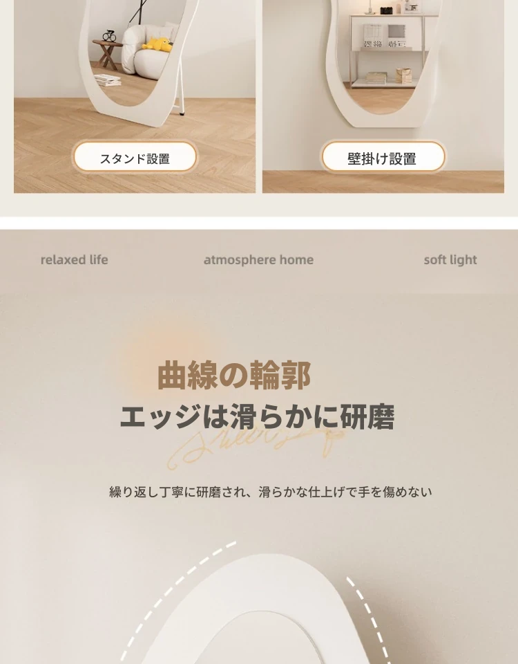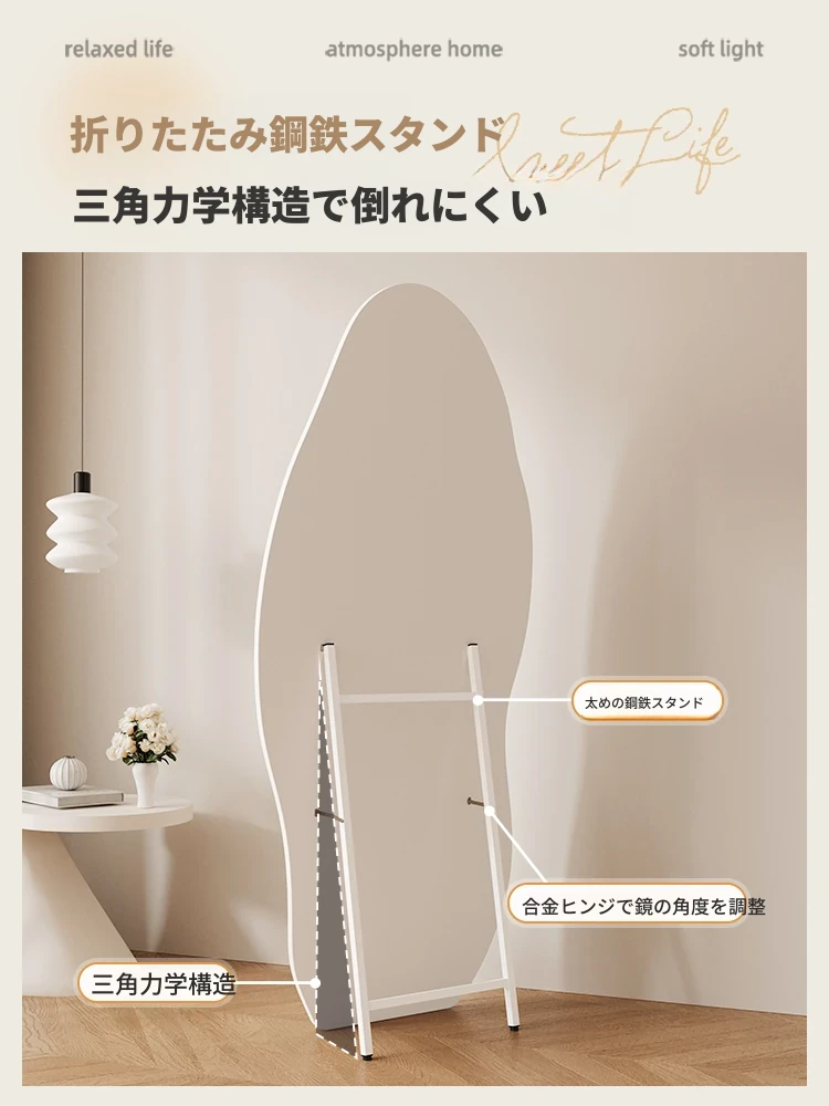 高級感漂う全身鏡!女性の部屋にぴったりなインスタ映えする試着鏡。立体感のあるデザインで、壁掛けとスタンド両方に対応。おしゃれな空間を演出し、毎日のコーディネートを楽しくします!