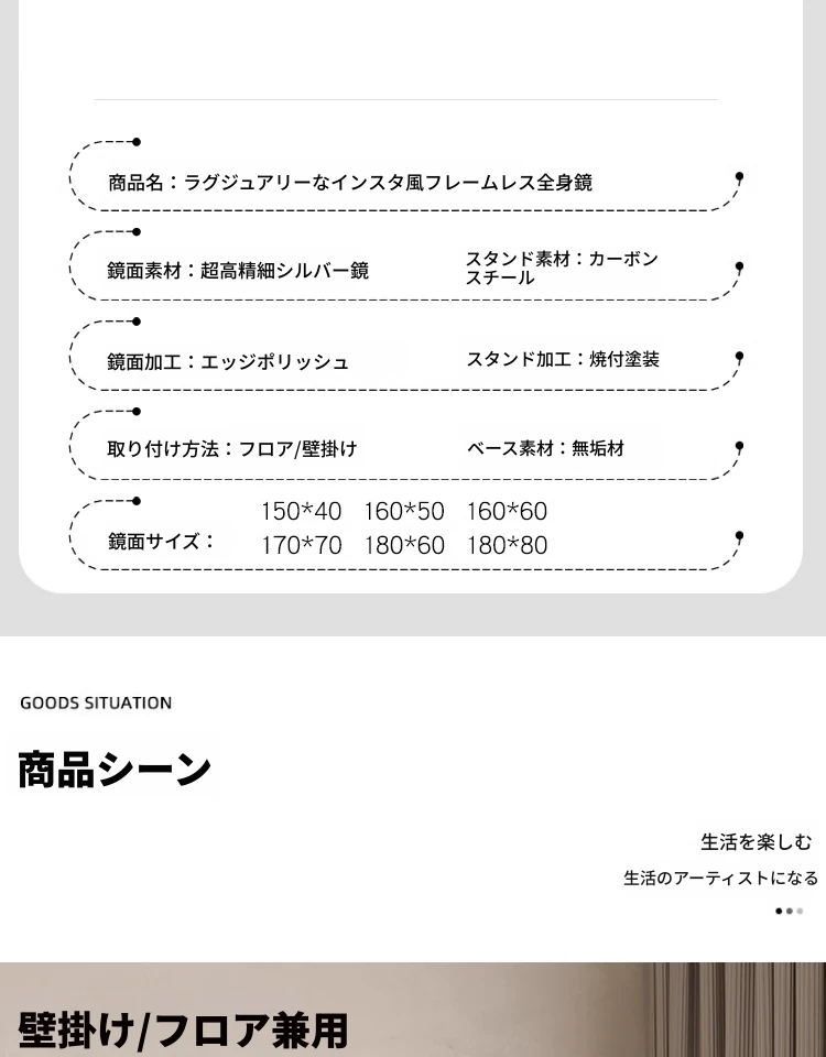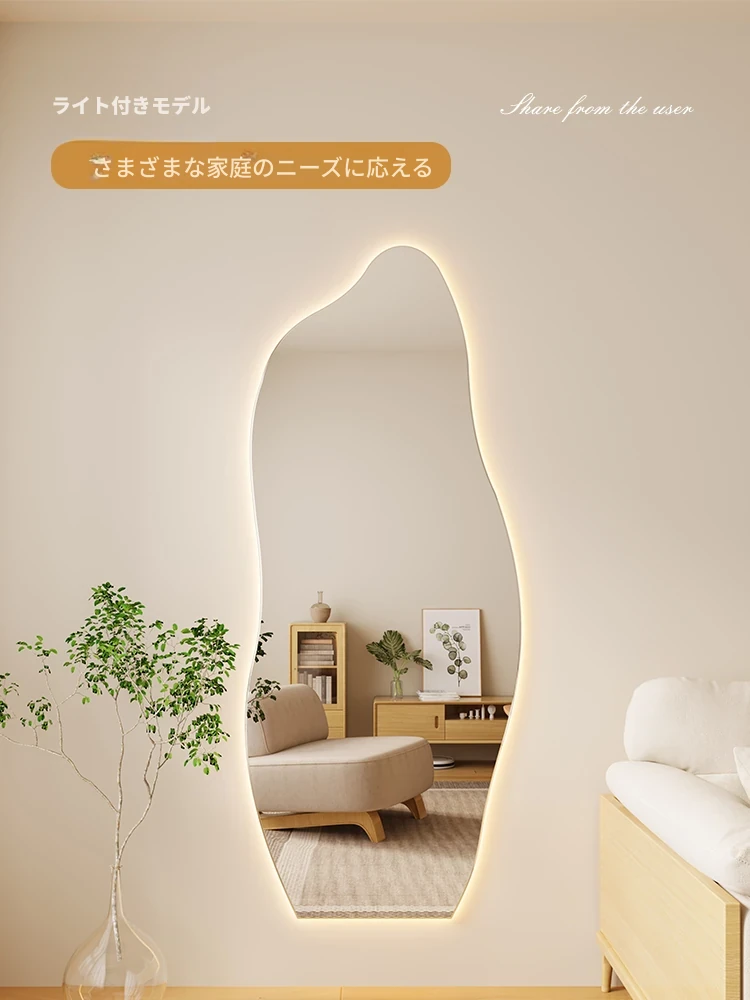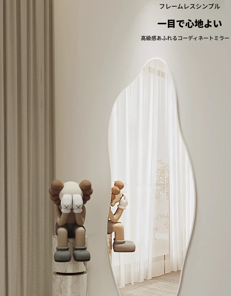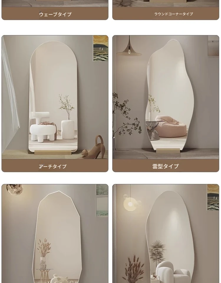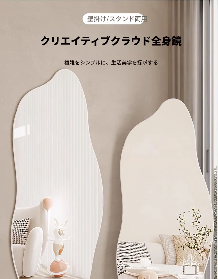 壁掛け・スタンド両用全身鏡!おしゃれなデザインのユニーク形状で、インスタ映え抜群。高級感あふれるアイテムで、お部屋を素敵に演出。お出かけ前のコーディネートチェックにも最適です!