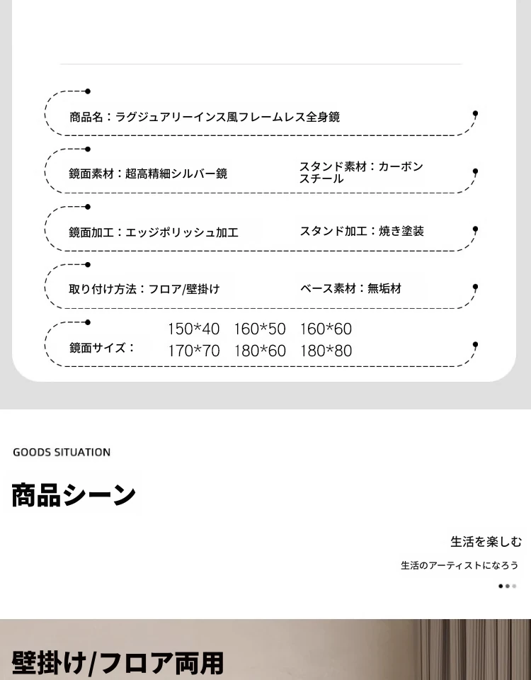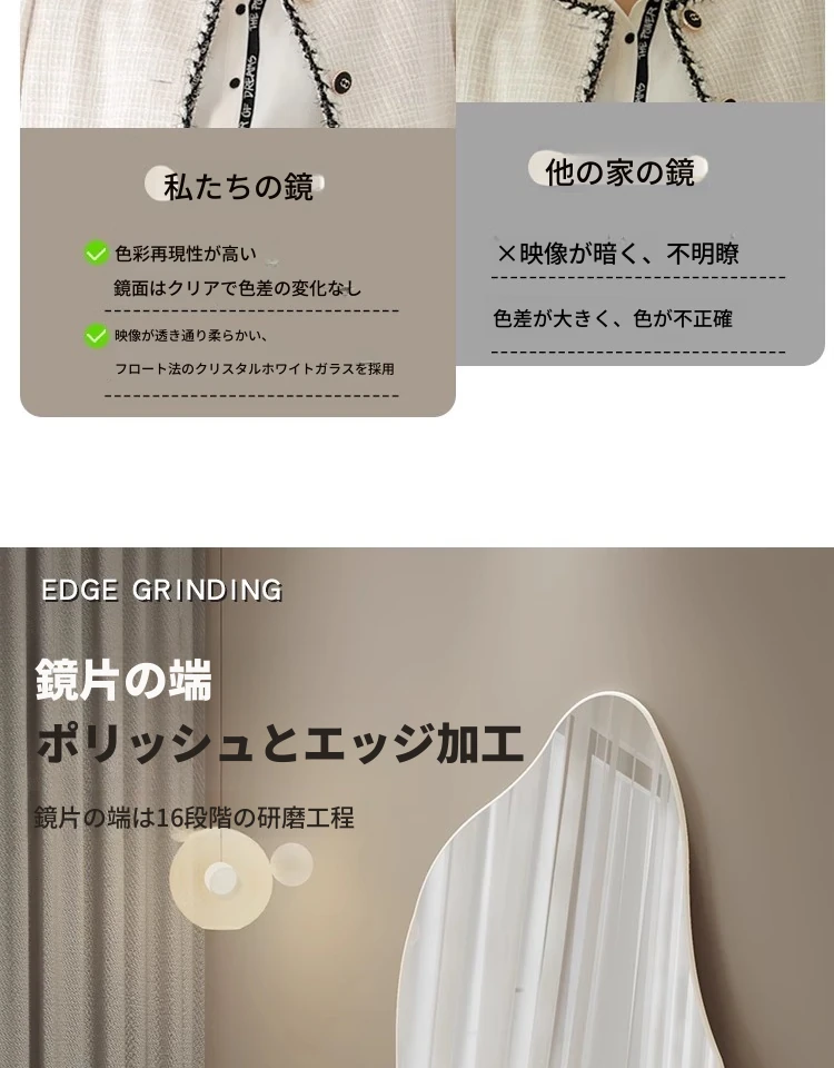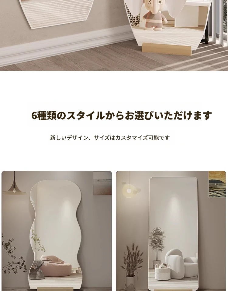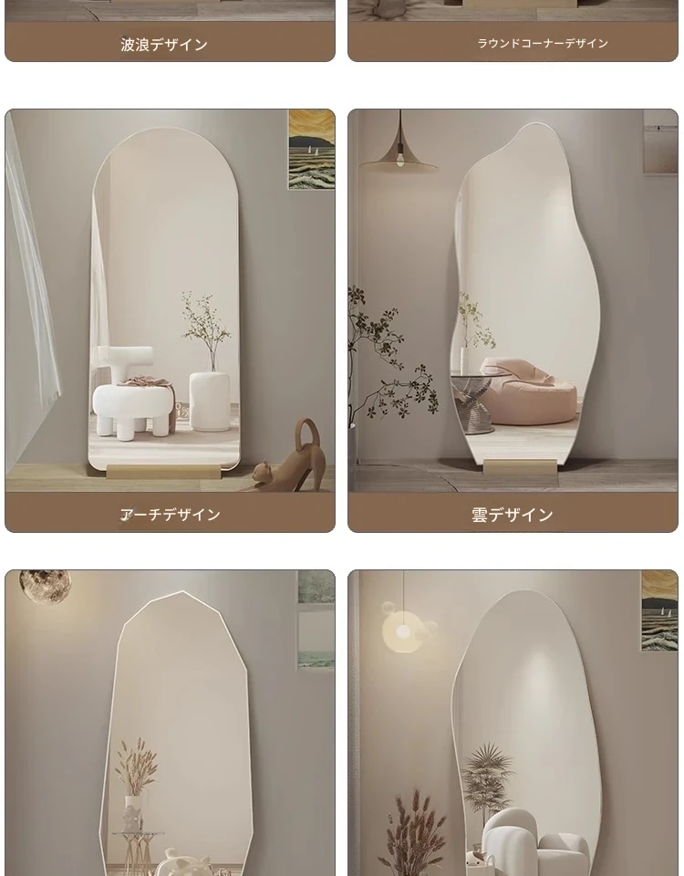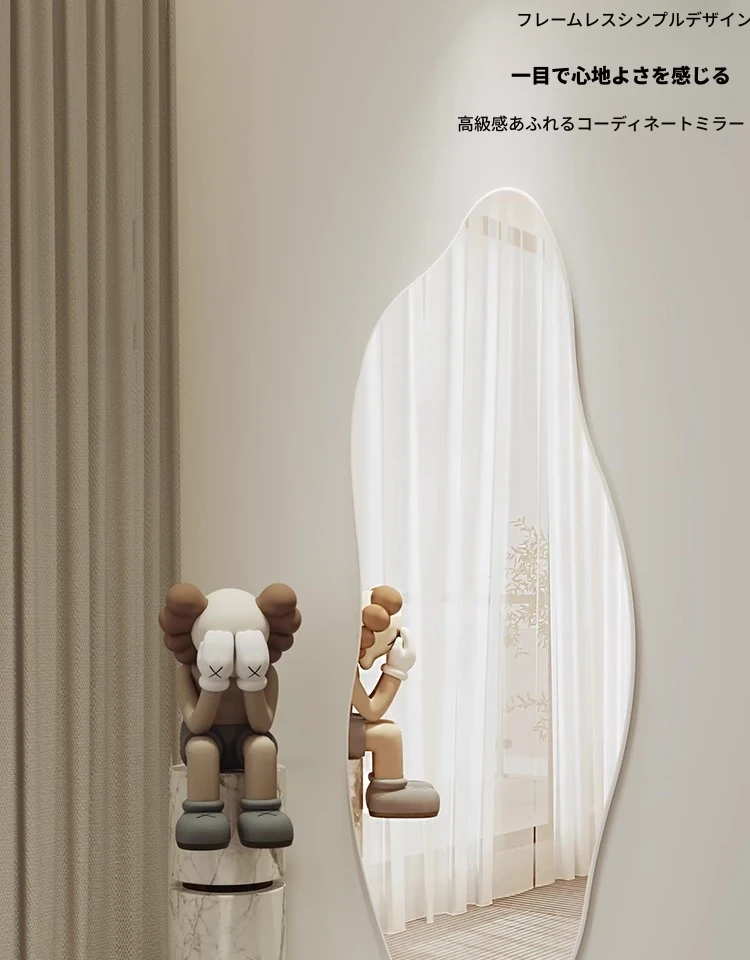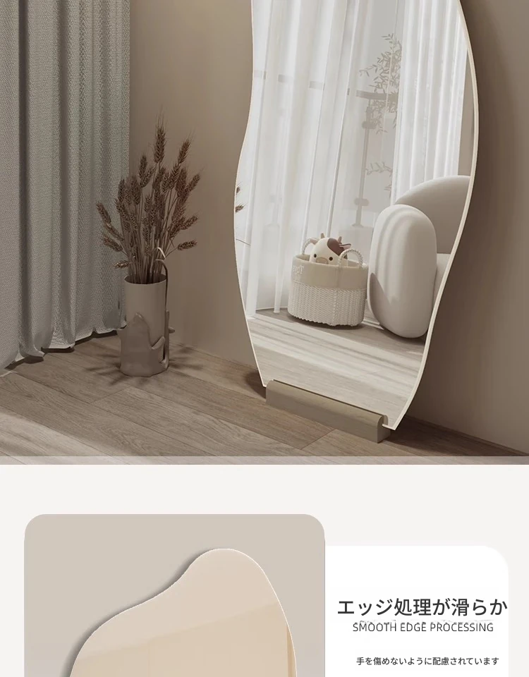 インスタ映え全身鏡 壁掛け・自立両用 おしゃれな不規則デザイン 高級感あふれるリビング用フロアミラー お部屋を引き立てるマストアイテム!