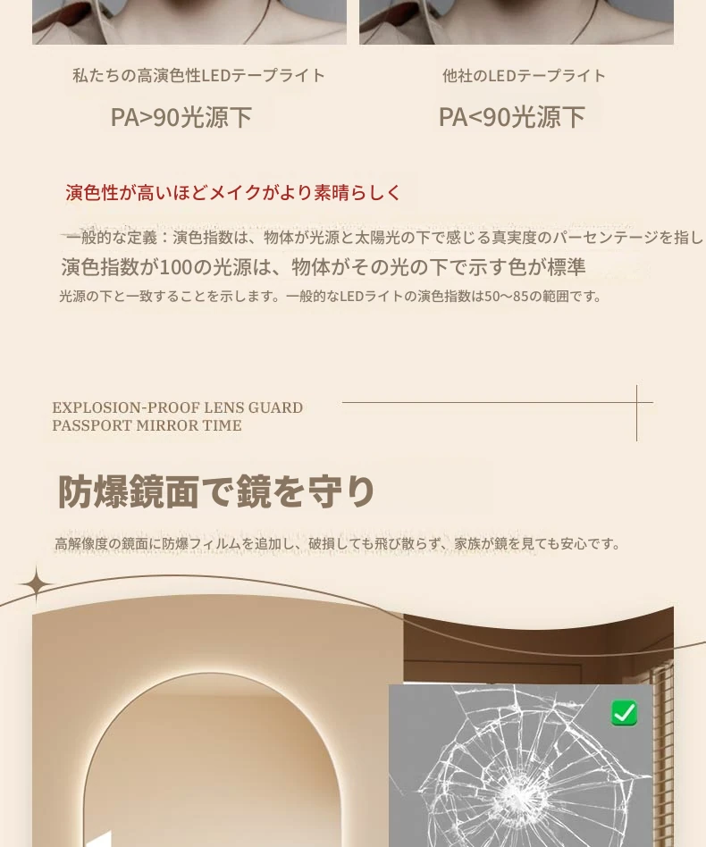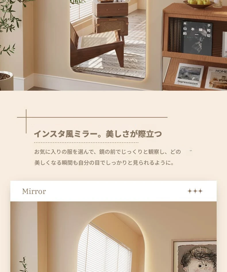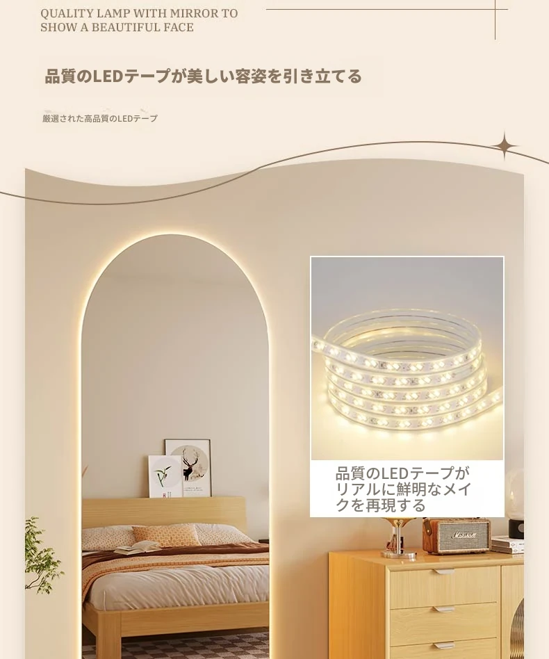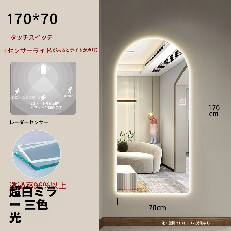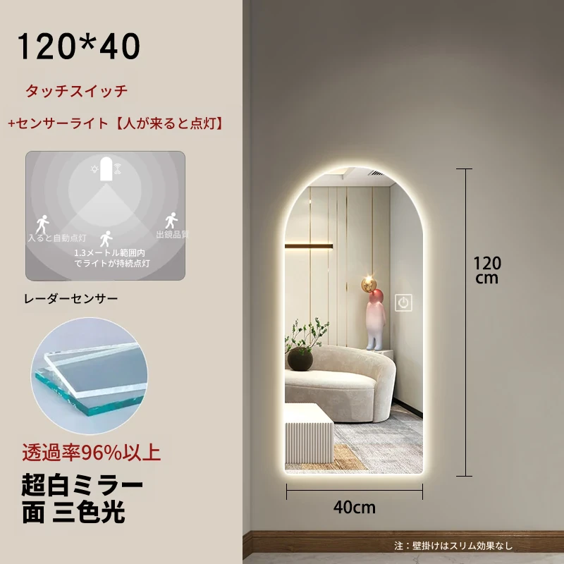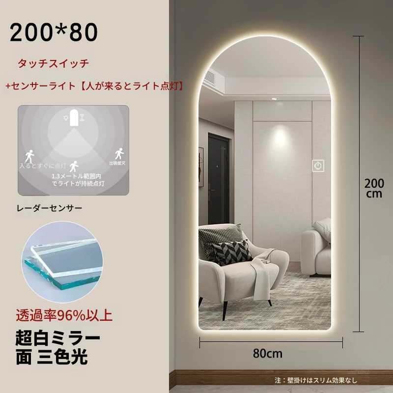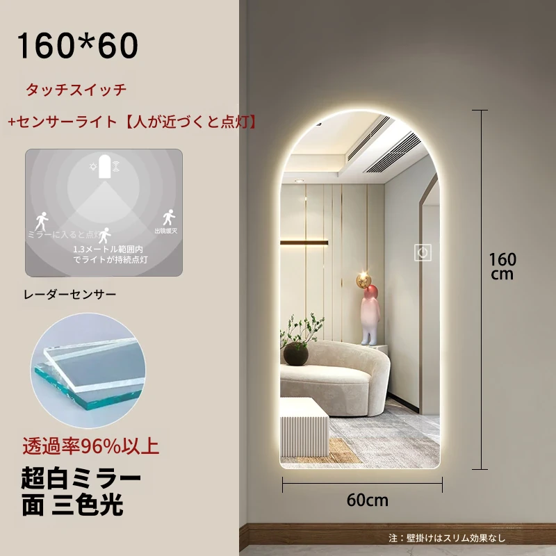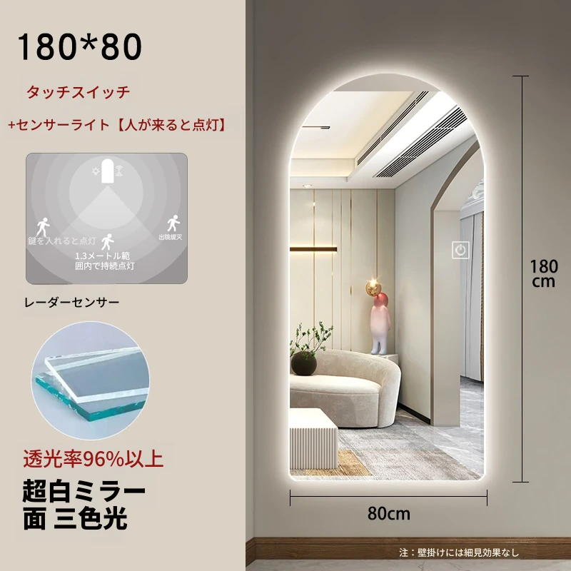 インスタ映えするおしゃれな全身鏡!スマート機能搭載、アーチデザインの壁掛け&スタンド式ミラー。高級感溢れる仕上がりで、あなたの部屋を一層引き立てます。自宅でスタイリッシュな雰囲気を演出しましょう!