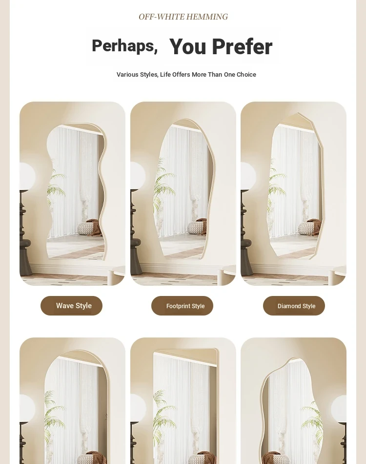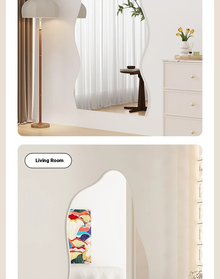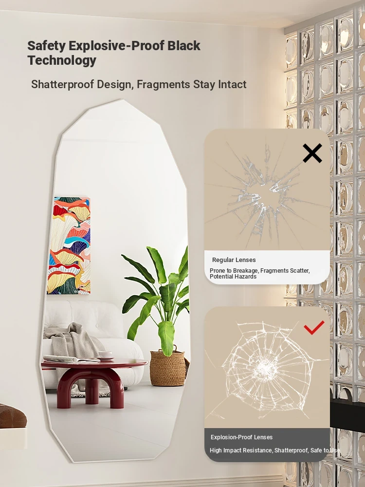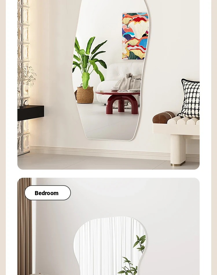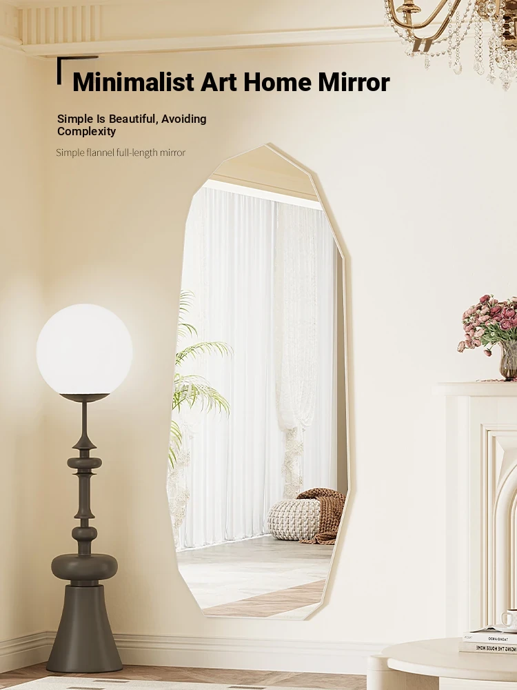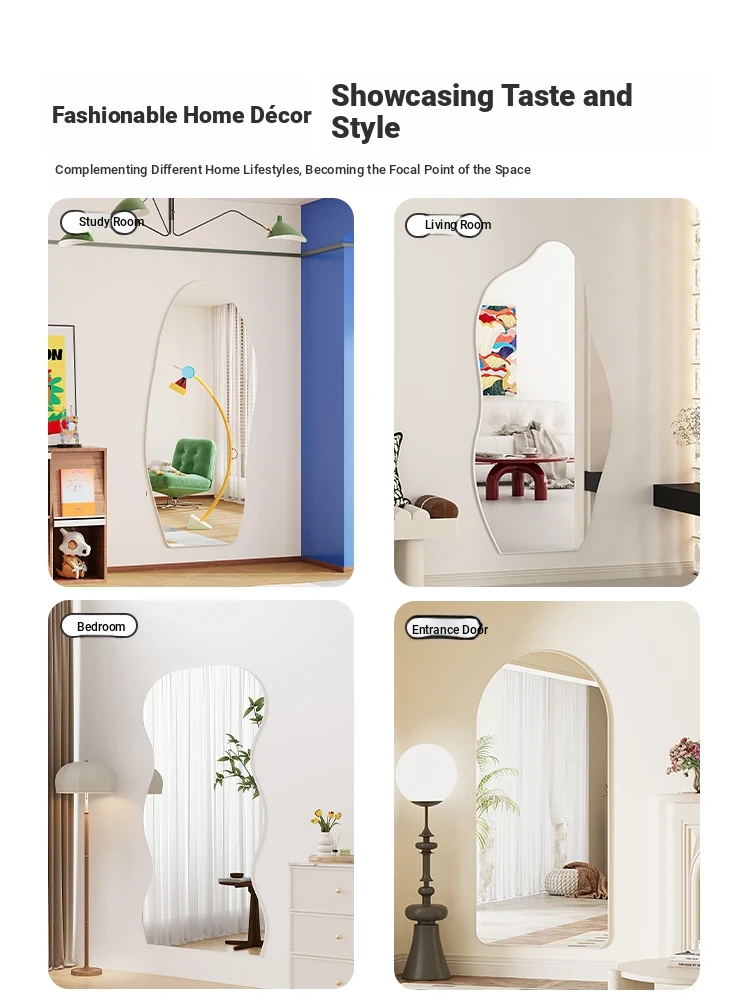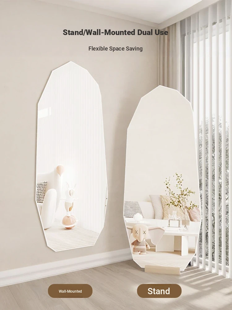 Stylish Wall-Mounted Full-Length Mirror - Self-Adhesive, Irregular Shaped Dressing Mirror for Living Room and Entryway, Perfect for Fashionable Home Decor