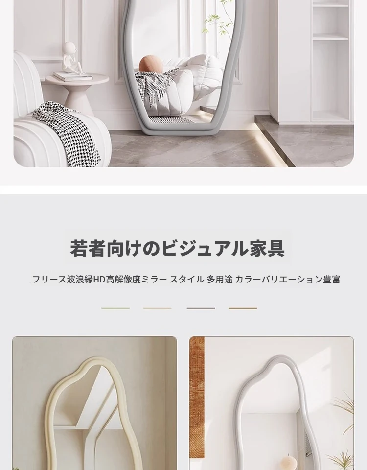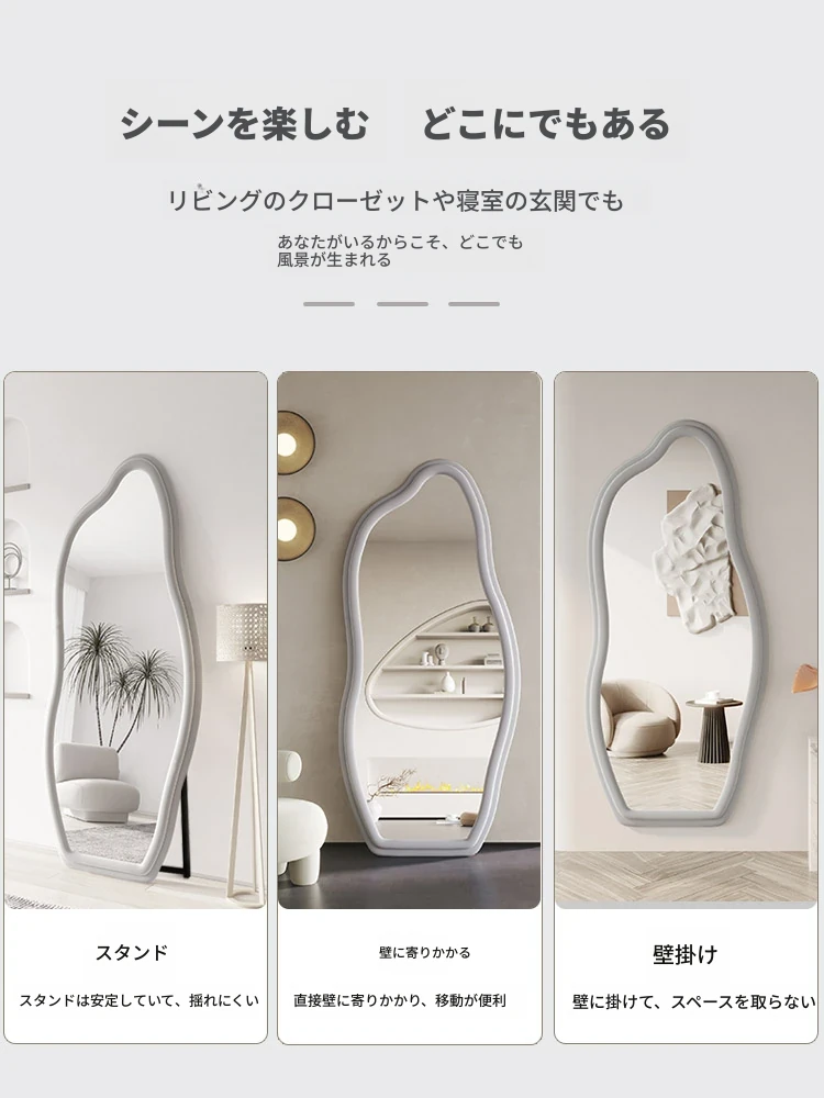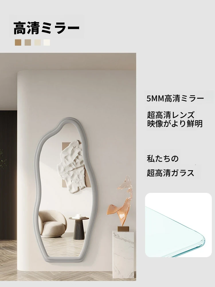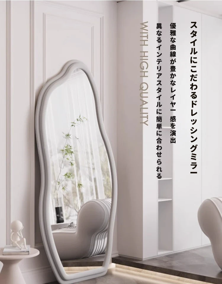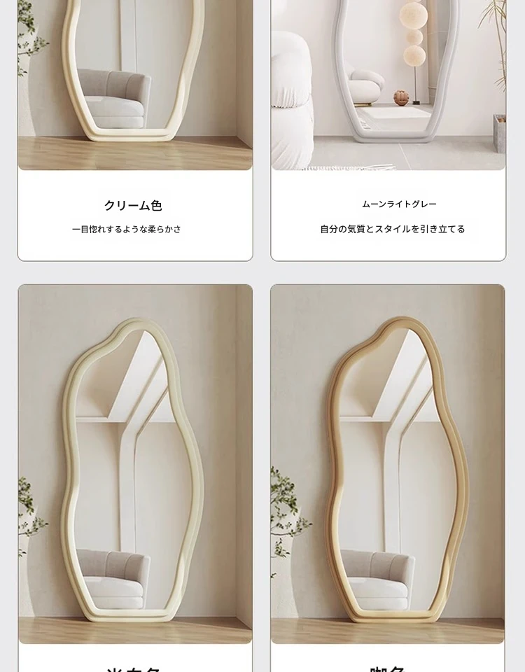 人気インフルエンサー推奨!ふんわりクリーム色の全身鏡、スタイリッシュな試着用ミラー。高級感溢れる寝室にぴったりの立て掛け式・壁掛け式ドレッシングミラーで、毎日のコーディネートを格上げ!