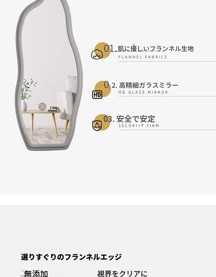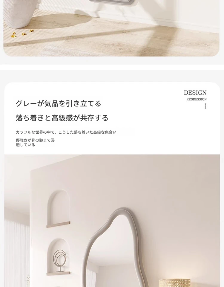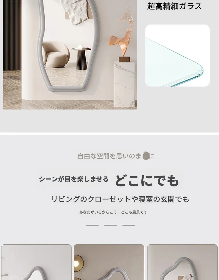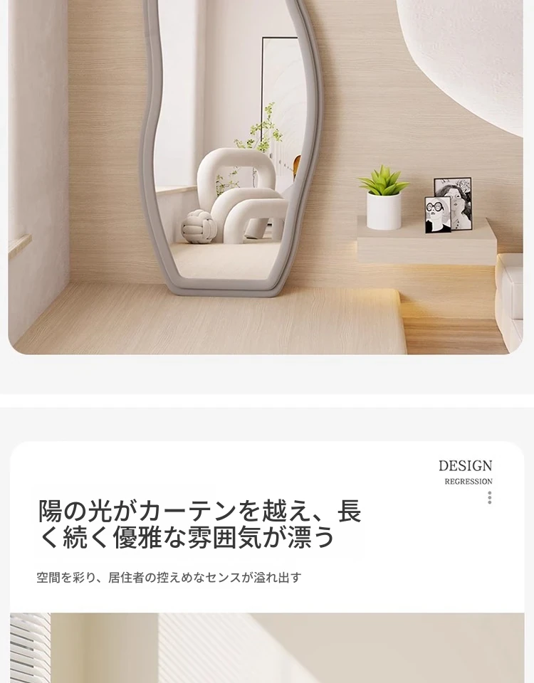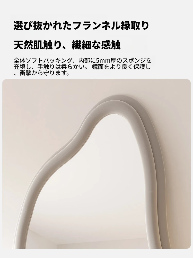 人気インフルエンサー推奨!ふんわりクリーム色の全身鏡、スタイリッシュな試着用ミラー。高級感溢れる寝室にぴったりの立て掛け式・壁掛け式ドレッシングミラーで、毎日のコーディネートを格上げ!