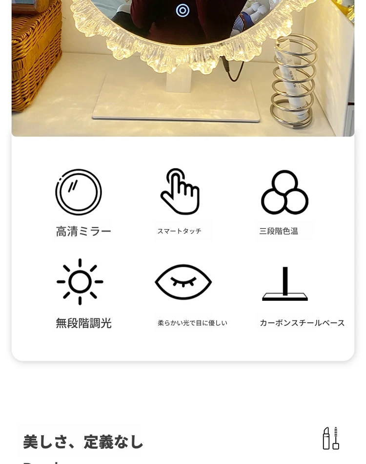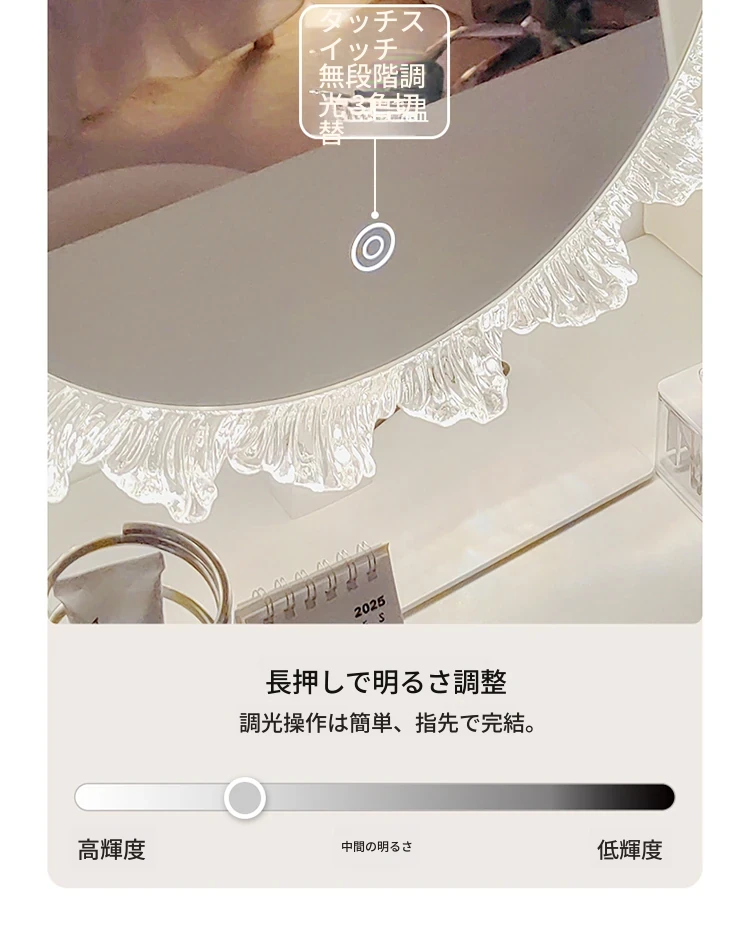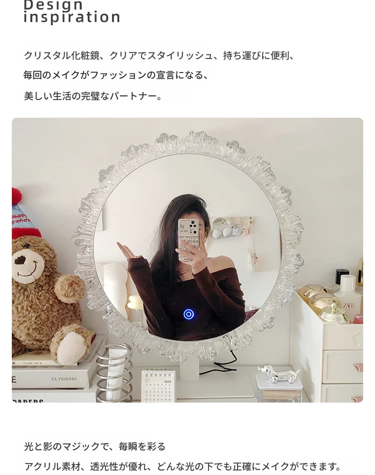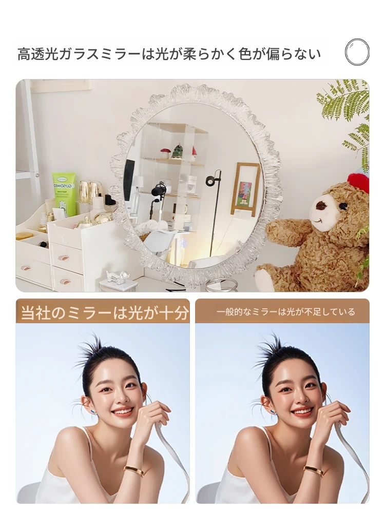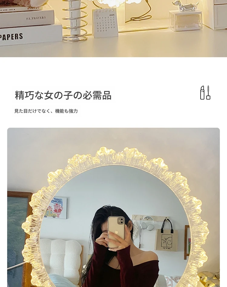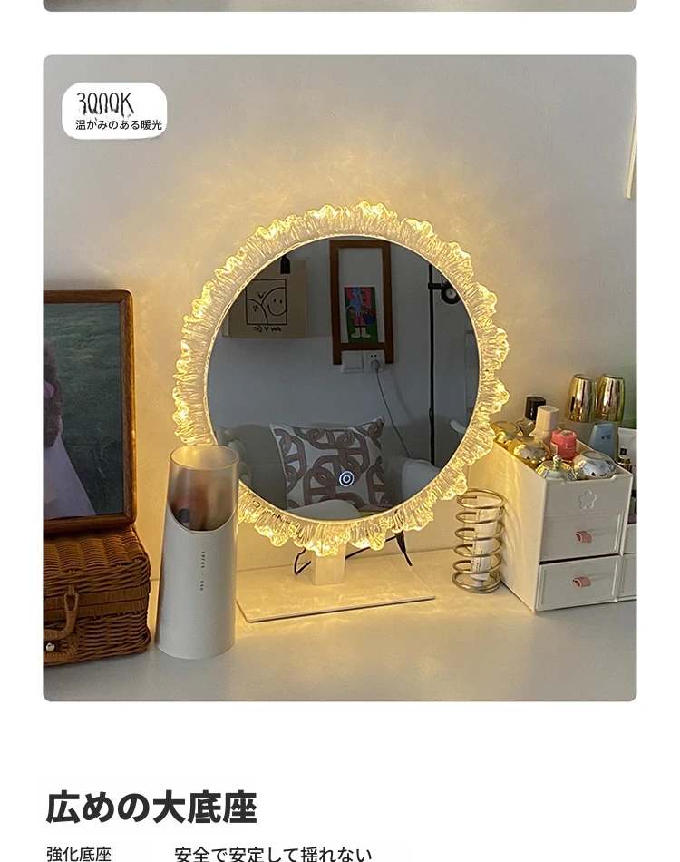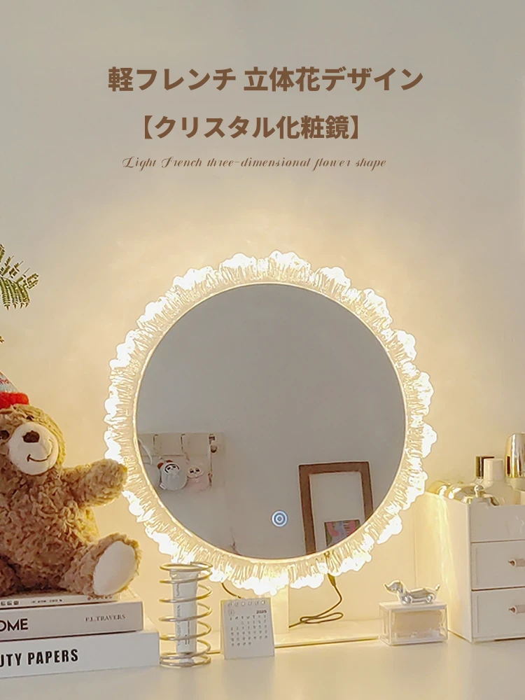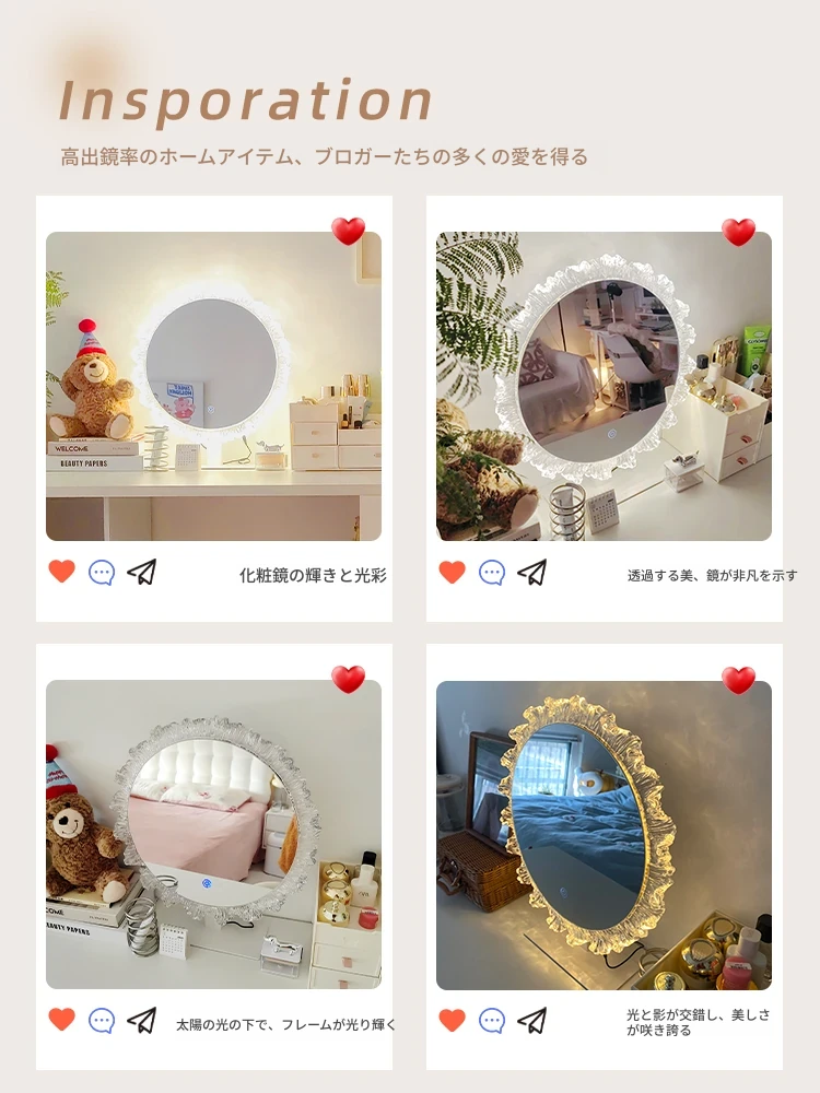 話題のひまわり型LEDスマートメイクミラー!おしゃれな女子の寝室にぴったりな不規則デザイン。あなたのメイクアップをもっと楽しく、便利に。自分だけの特別な鏡で美しさを引き出しましょう!