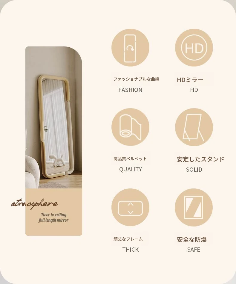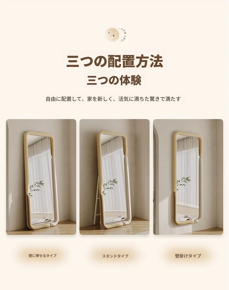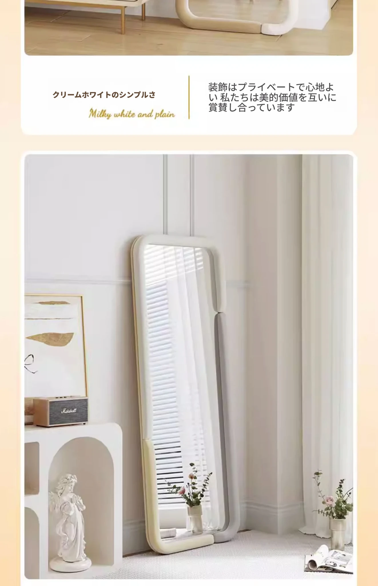 インスタ映えするおしゃれな壁掛け全身鏡!女性の寝室にぴったりなデザイン性抜群の試着鏡です。自宅で楽しくコーディネートを楽しんで、毎日のスタイルをアップグレードしましょう!