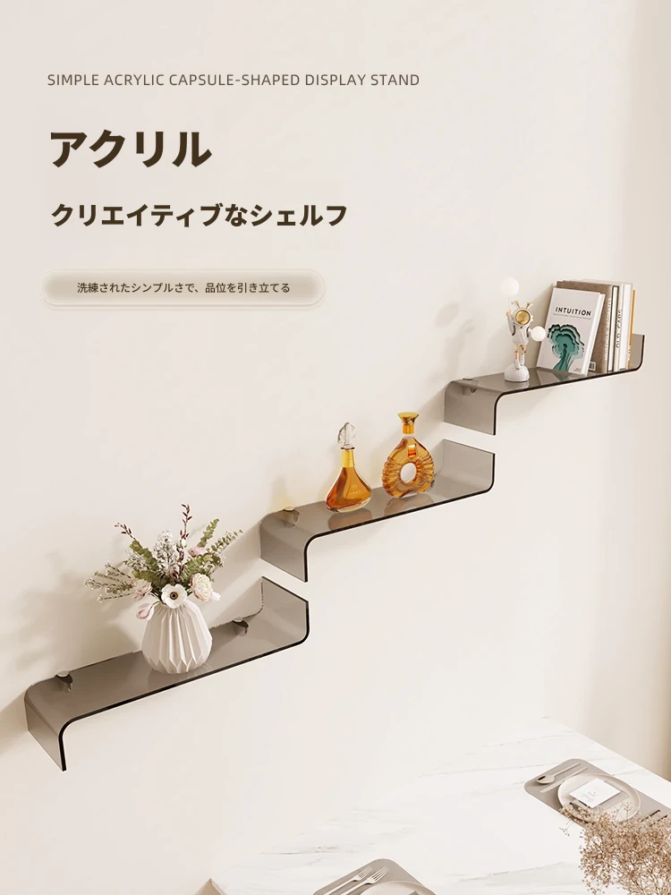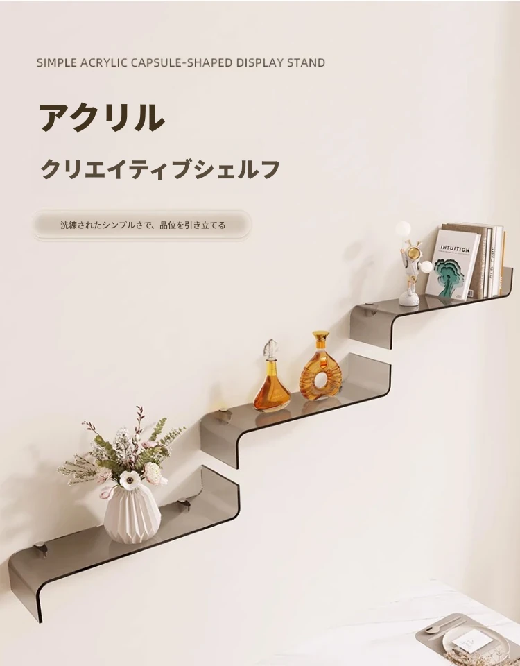 インフルエンサー必見!おしゃれな壁掛け収納シェルフ - 創造的な一字型ディスプレイボードで、お部屋をスタイリッシュに演出!空間を有効活用し、アートとしても楽しめる飾り棚です。