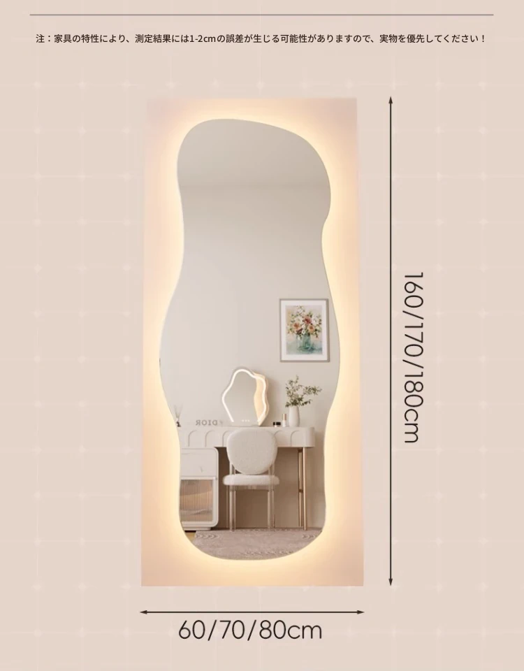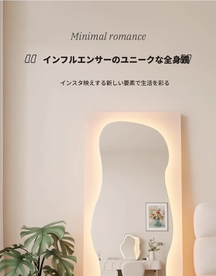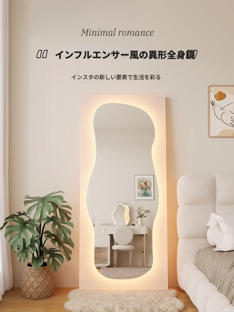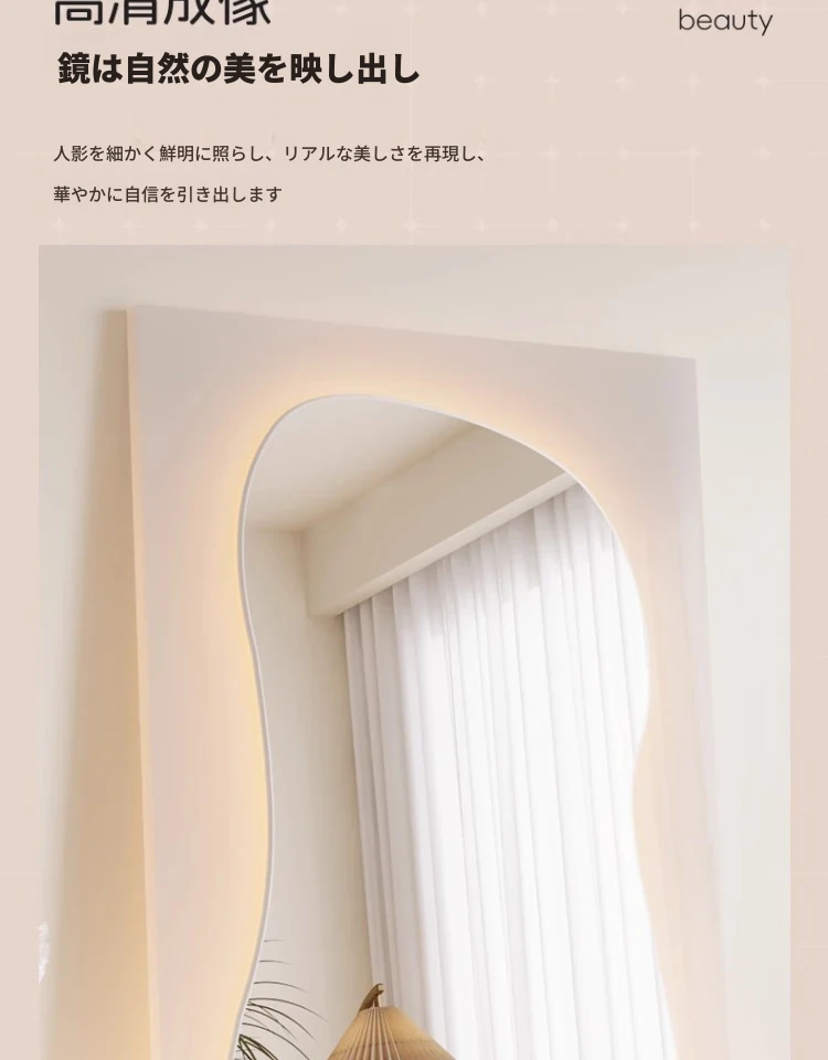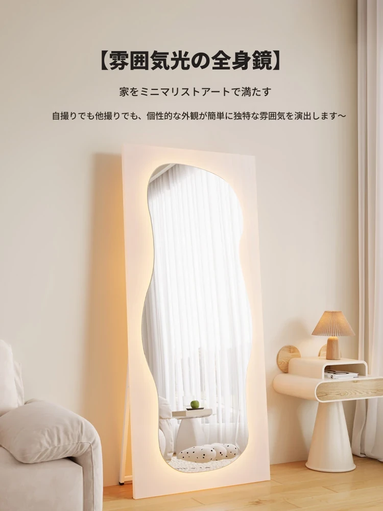 個性的全身鏡!おしゃれな壁掛け&立て掛け可能なドレッシングミラー。寝室やリビングにぴったり!可愛い不規則デザインで、自分だけのスタイルを楽しめる試着鏡。お部屋を彩る必須アイテム!