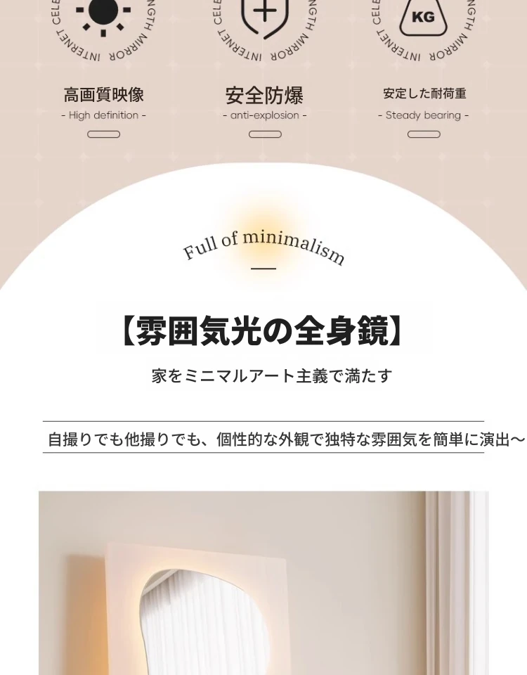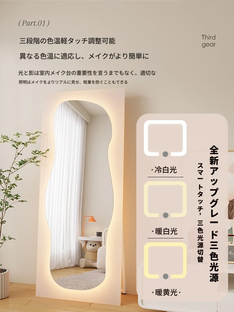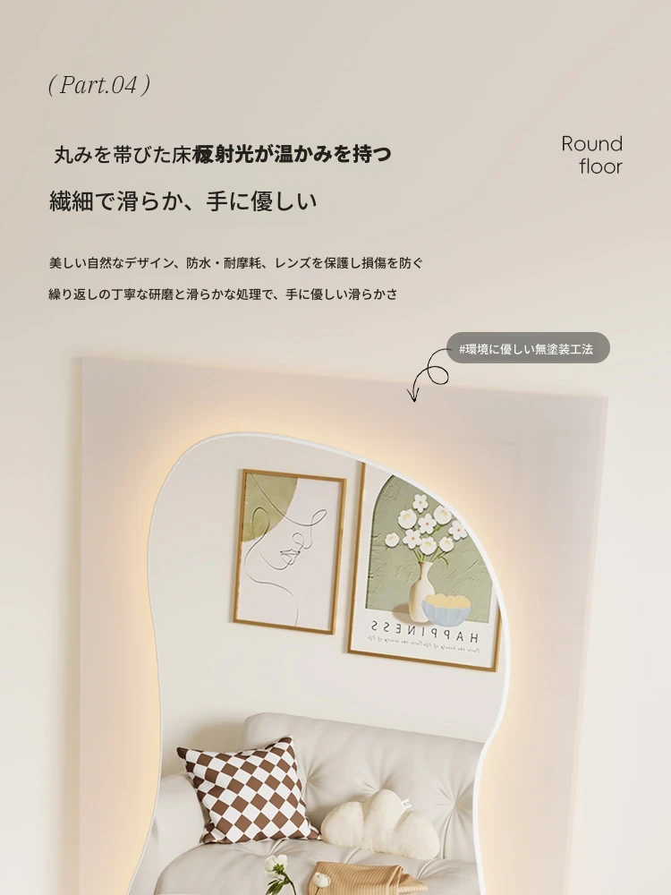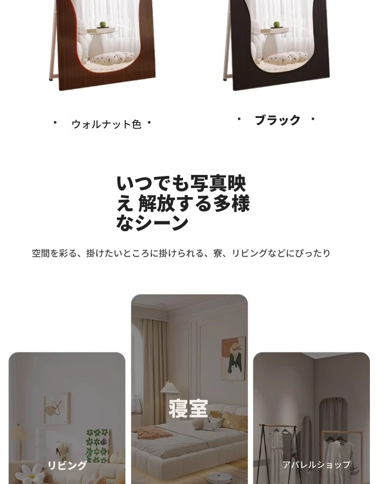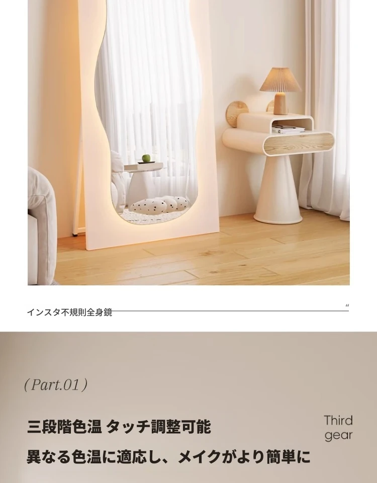 個性的全身鏡!おしゃれな壁掛け&立て掛け可能なドレッシングミラー。寝室やリビングにぴったり!可愛い不規則デザインで、自分だけのスタイルを楽しめる試着鏡。お部屋を彩る必須アイテム!