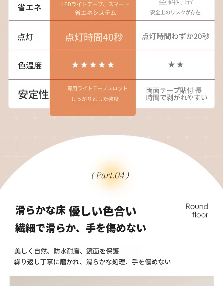 異形アイボリー180*80cmライト付き【フロアタイプ】スタンド付き