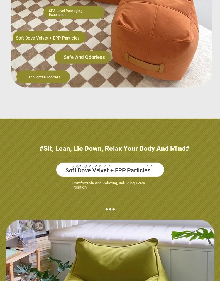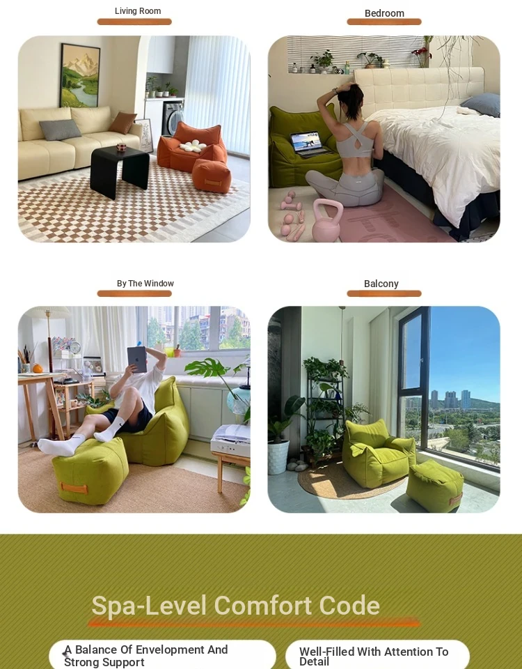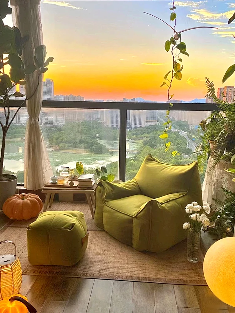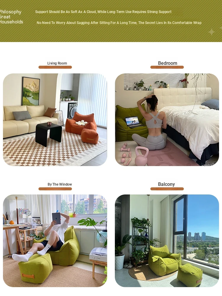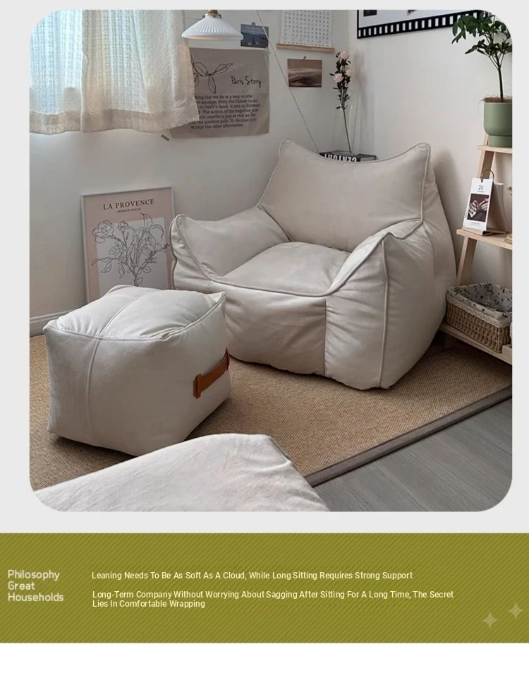 家庭用の豆袋タタミデザイン、リラックスできる小さなソファ。寝転んだり、寝たりできる一人用の陽台用リクライニングソファ。シンプルでありながら贅沢なスタイルのリビングに最適!