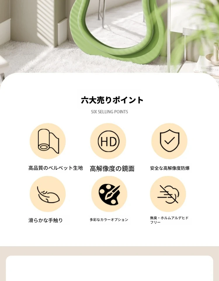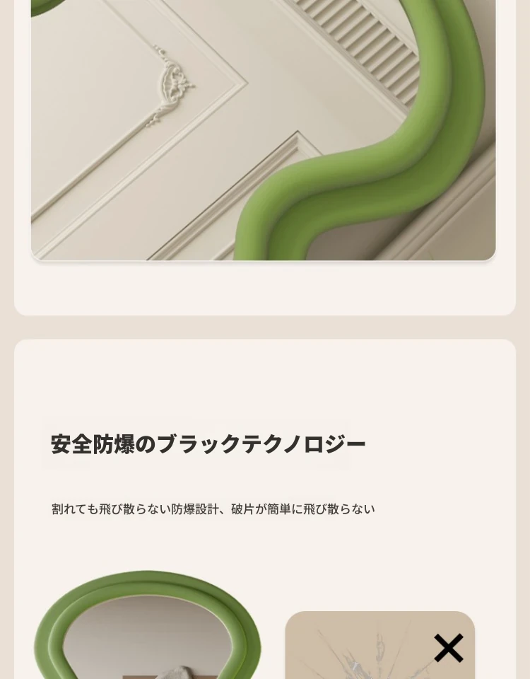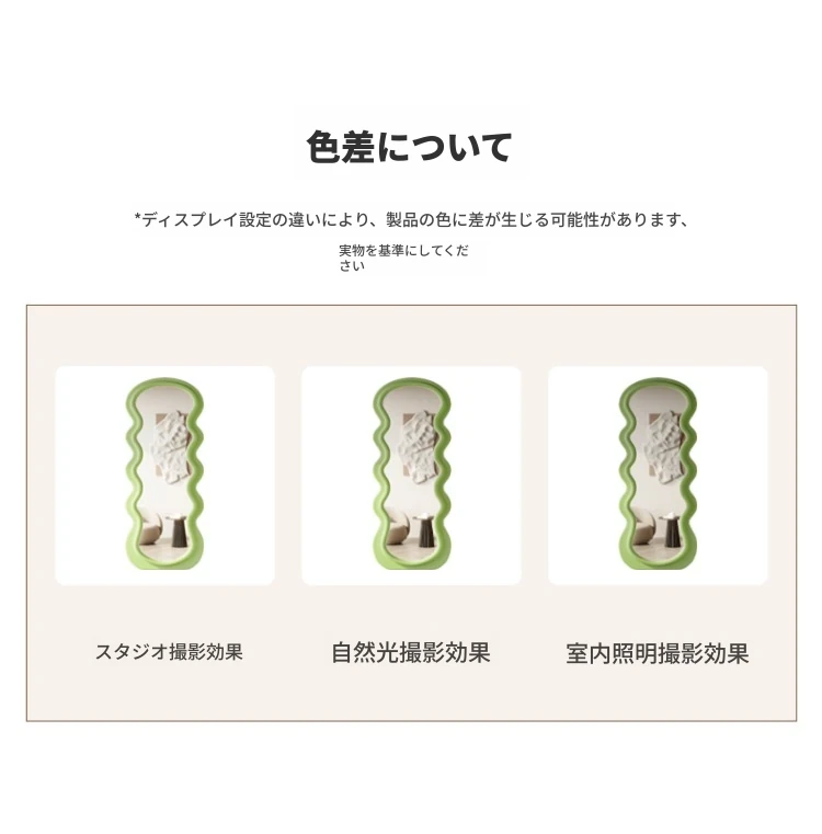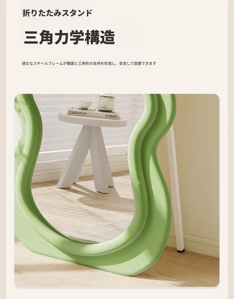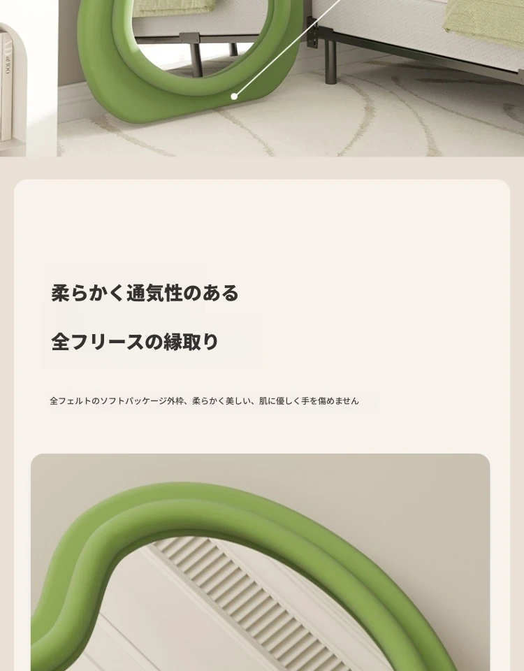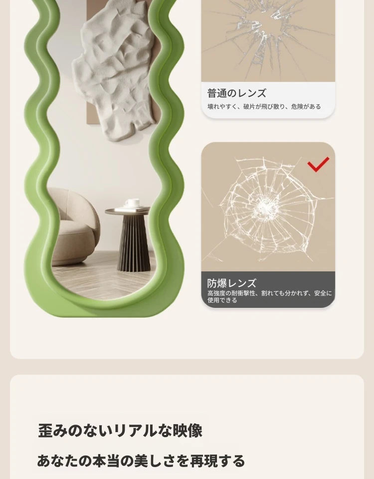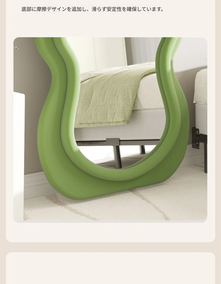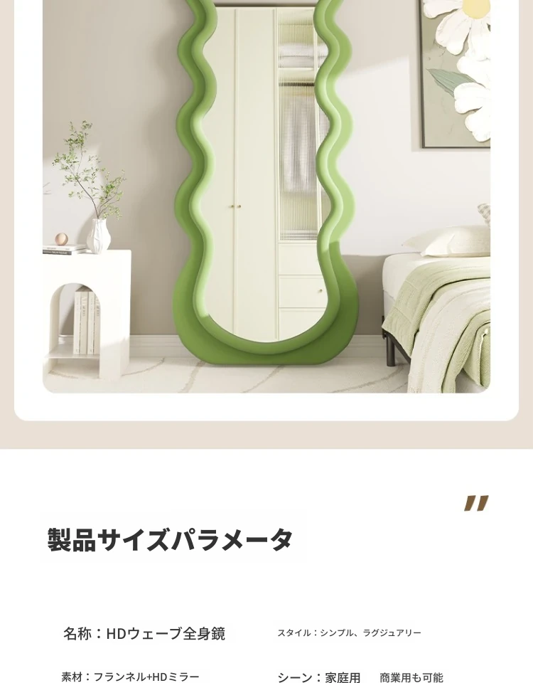 波浪デザインのクリーム風全身鏡|おしゃれなウォールミラー|自宅用のスタイリッシュなドレッシングミラー|トレンド感満載のユニークな形状で、寝室やエントランスに最適!