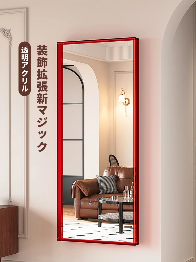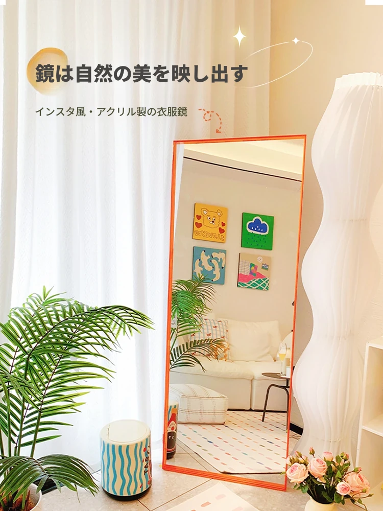 高級感溢れるアクリル全身鏡|スタイリッシュなルームミラー|寝室にぴったりなインスタ映え試着鏡|シンプルで洗練されたデザインの大鏡