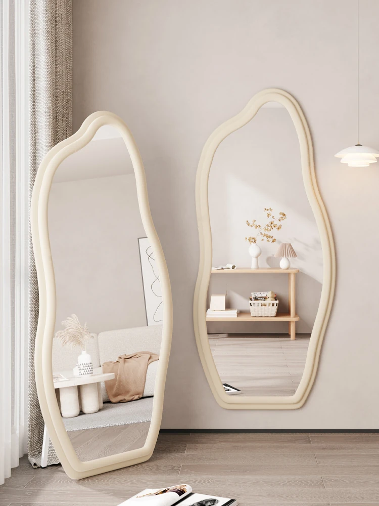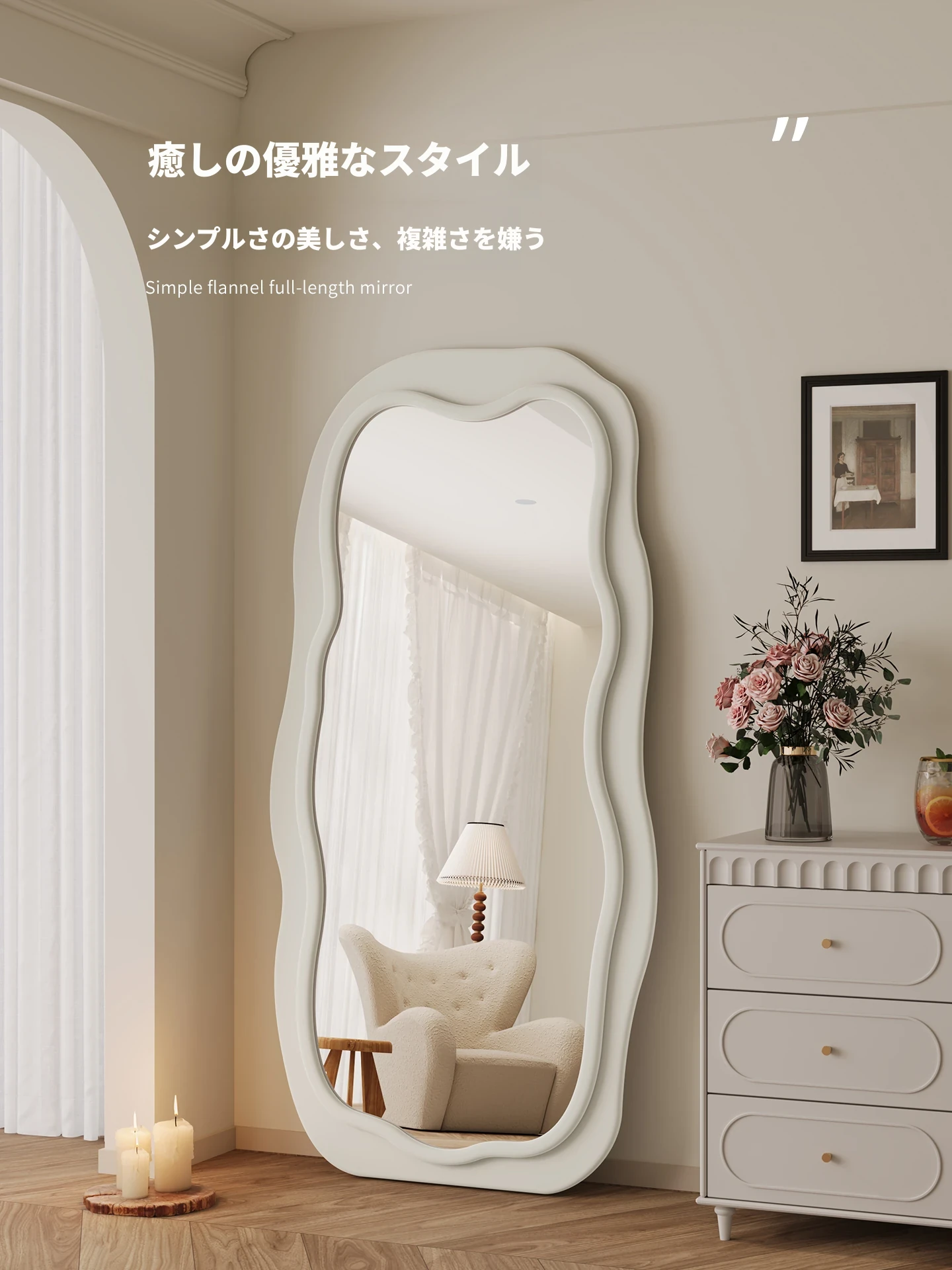 クリーム風試着鏡 全身用フロアミラー 家庭用 寝室用 フランス風 高級感溢れるラグジュアリー 鏡 波浪型デザインの洋服試着鏡