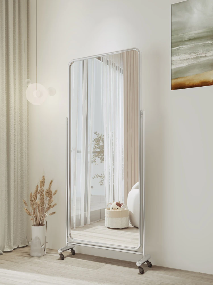ステンレス製の移動式全身鏡 - 家庭用スリム効果あり!おしゃれなファッションストアや人気インフルエンサー必見のスタンドミラー。自宅で簡単にスタイリングを楽しもう!