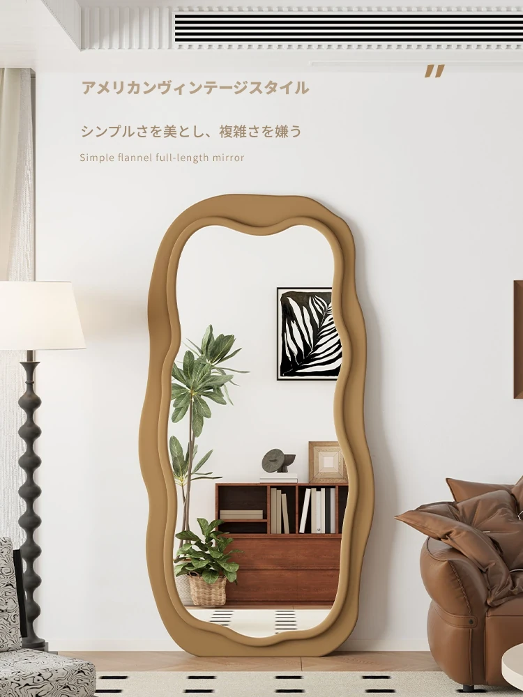レトロな波型全身鏡!トレンドの異形デザインで、おしゃれな試着が楽しめる!高級感あふれる軽やかなインテリアアイテム、壁掛けも可能な便利な鏡です。お家で手軽にスタイリングをアップデート!