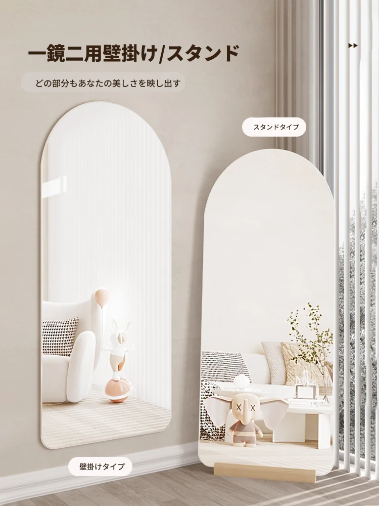 高級感あふれる全身用スタンドミラー|おしゃれなアクリル製・壁掛け可能なドレッシングミラー|自宅でのコーディネートを格上げする美しい鏡!