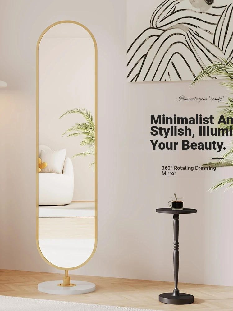 Minimalist Oval Full-Length Standing Mirror - Versatile Rotating Dressing Mirror for Home Use with Storage Function, Ideal for Makeup and Try-On【Narrow Design】
