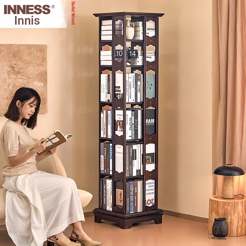 Innis Solid Wood 360° Rotating Bookshelf - Versatile Home Storage Solution for Living Room, Perfect for Kids and Students, Floor Standing Organizer