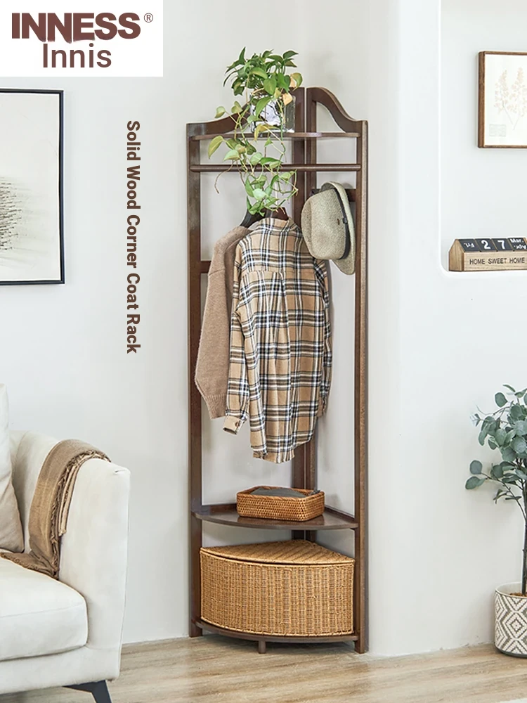 Innis Solid Wood Corner Coat Rack – Freestanding Bedroom Hanger, No Drilling Required, Easy Storage Solution for Entryway and Clothes Organization