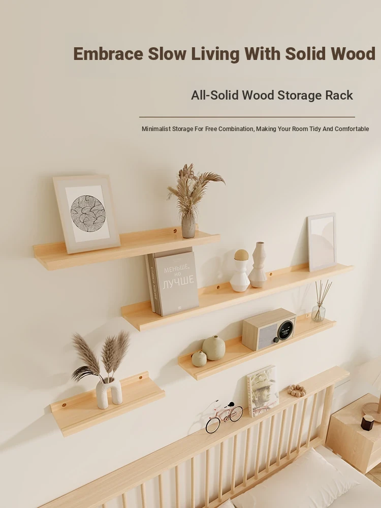 Creative Wall-Mounted Floating Shelf for Living Room - Multi-Layer Solid Wood Decorative Storage Rack and Shelf System