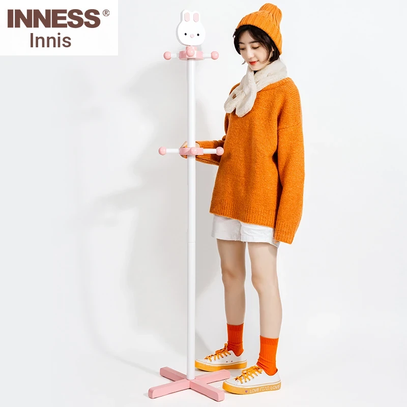 Cute Solid Wood Kids' Coat Rack - Modern Cartoon Design, Creative Floor Standing Hanger for Bedroom, Perfect for Hanging Clothes and Accessories!